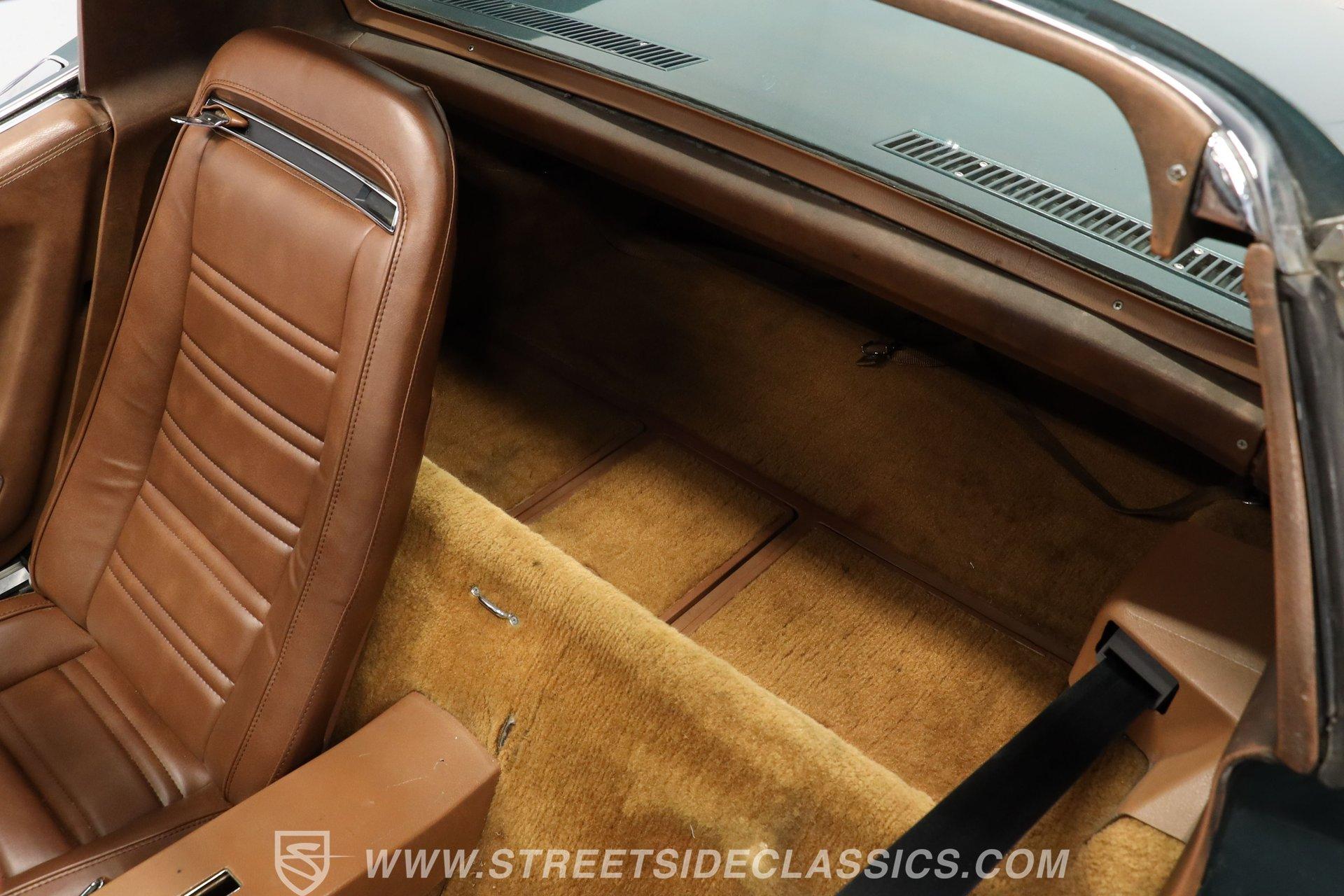 Pop off those nifty T-tops, and inside we find a correct Dark Saddle vinyl interior. Two big gauges sit front and center of the driver, just beyond a power-assisted three-spoke steering wheel with a 7,000-rpm tach on the right and a 160-mph speedometer on the left. A five-pod gauge cluster sits atop the center stack, while an AM/FM stereo handles the soundtrack. Though its compressor will need servicing, this Corvette comes from the factory with air conditioning as an option on its dial-based HVAC setup.
