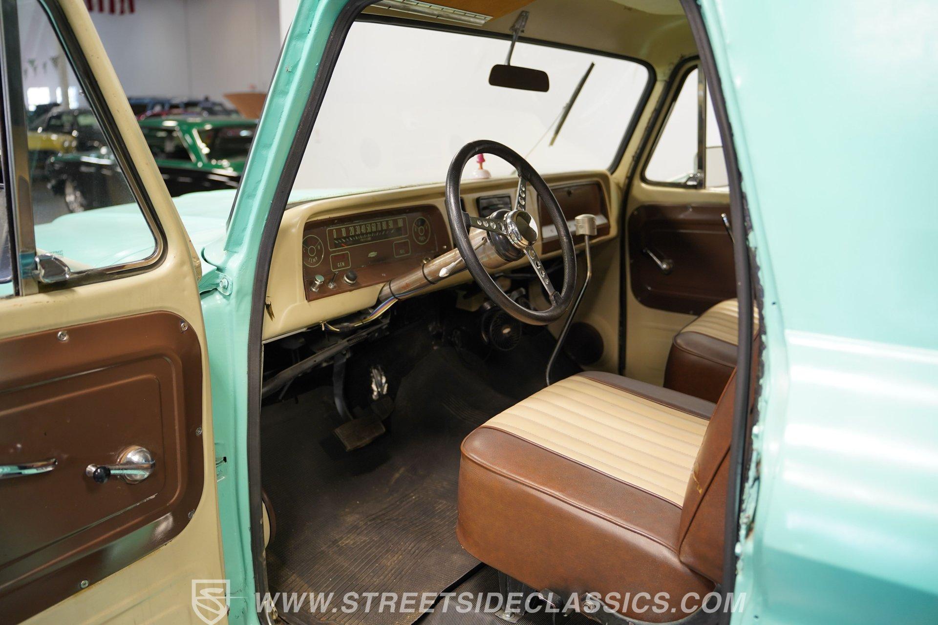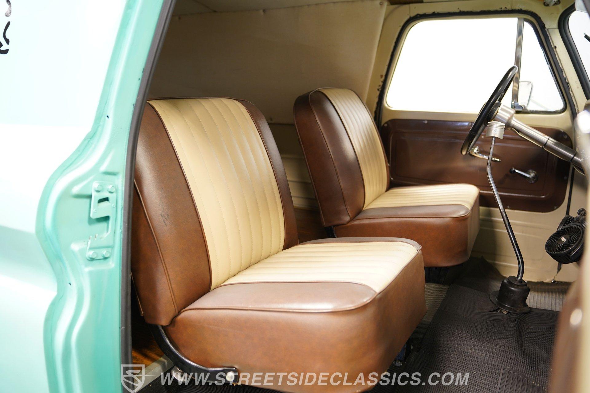 Under the hood, this Panel Delivery packs a punch with a strong 350 V8 engine paired with an Edelbrock 4-barrel carburetor and intake. The TH400 3-speed automatic transmission offers smooth shifts, while long-tube headers and a dual exhaust give it a satisfying rumble. The Ford 9-inch rear end and Mustang II front suspension with KYB shocks deliver a confident ride, and upgrades like four-wheel power disc brakes and power steering ensure a modern driving experience. The engine bay is clean and color-matched for extra curb appeal, making this restomod as enjoyable to show as it is to drive.