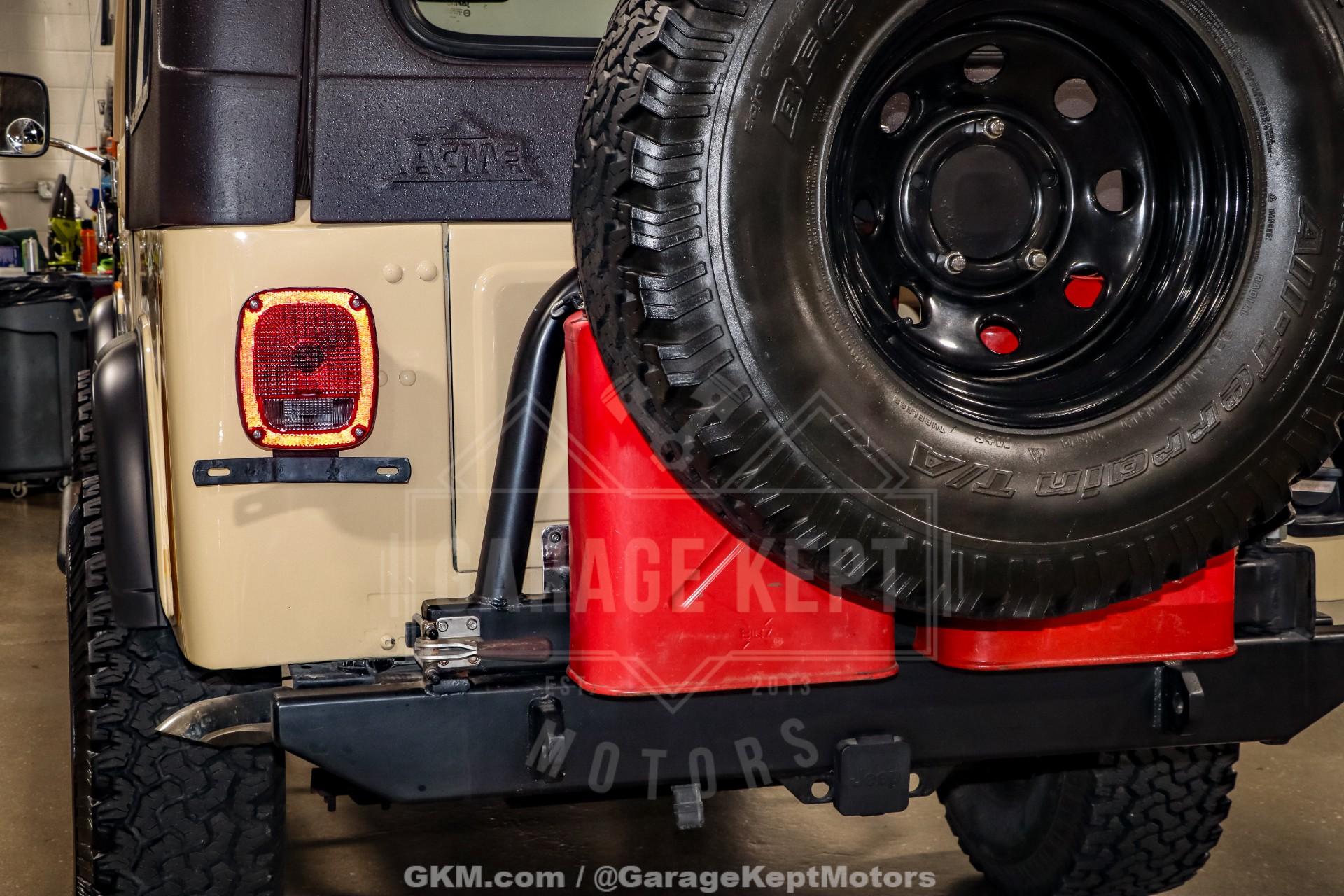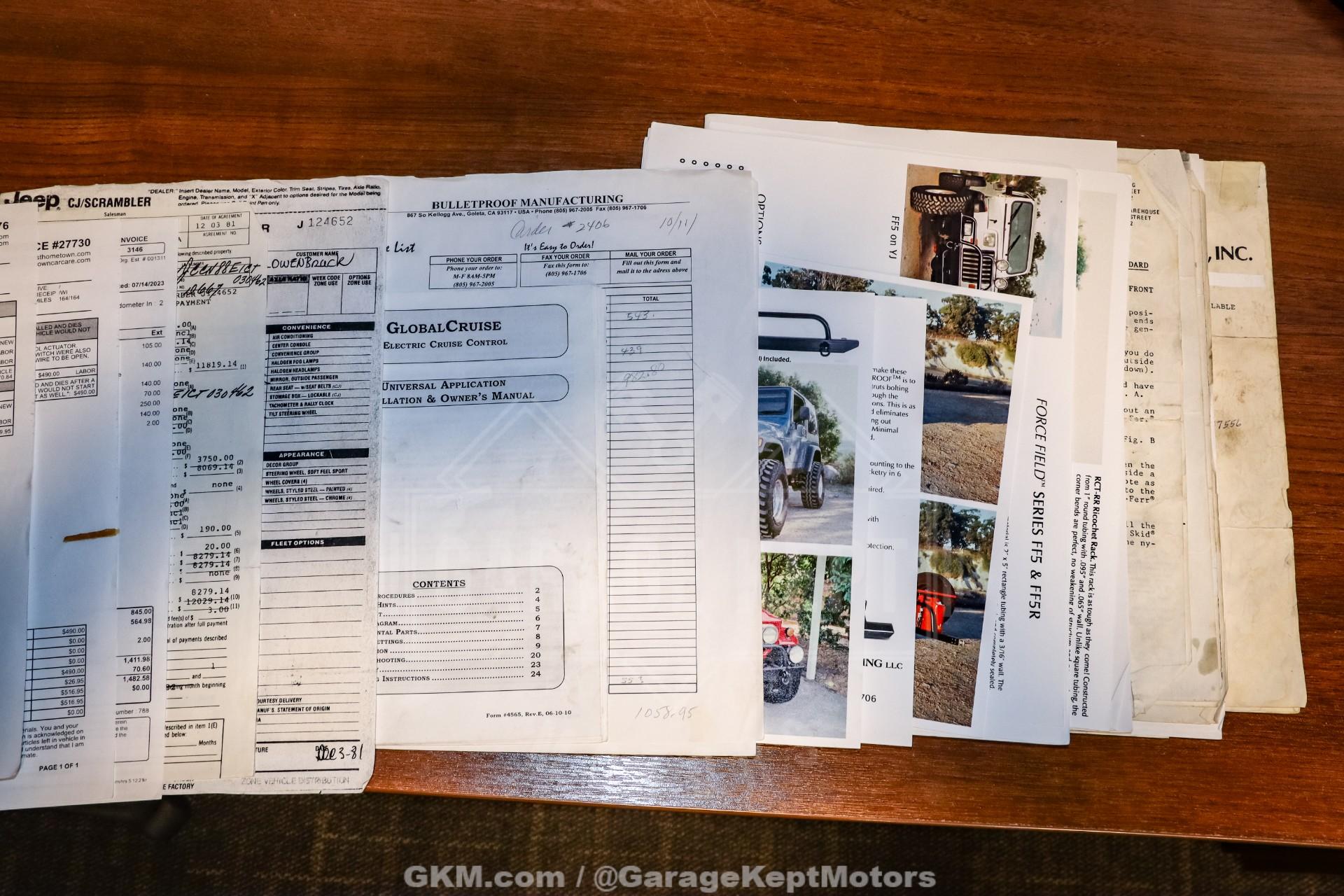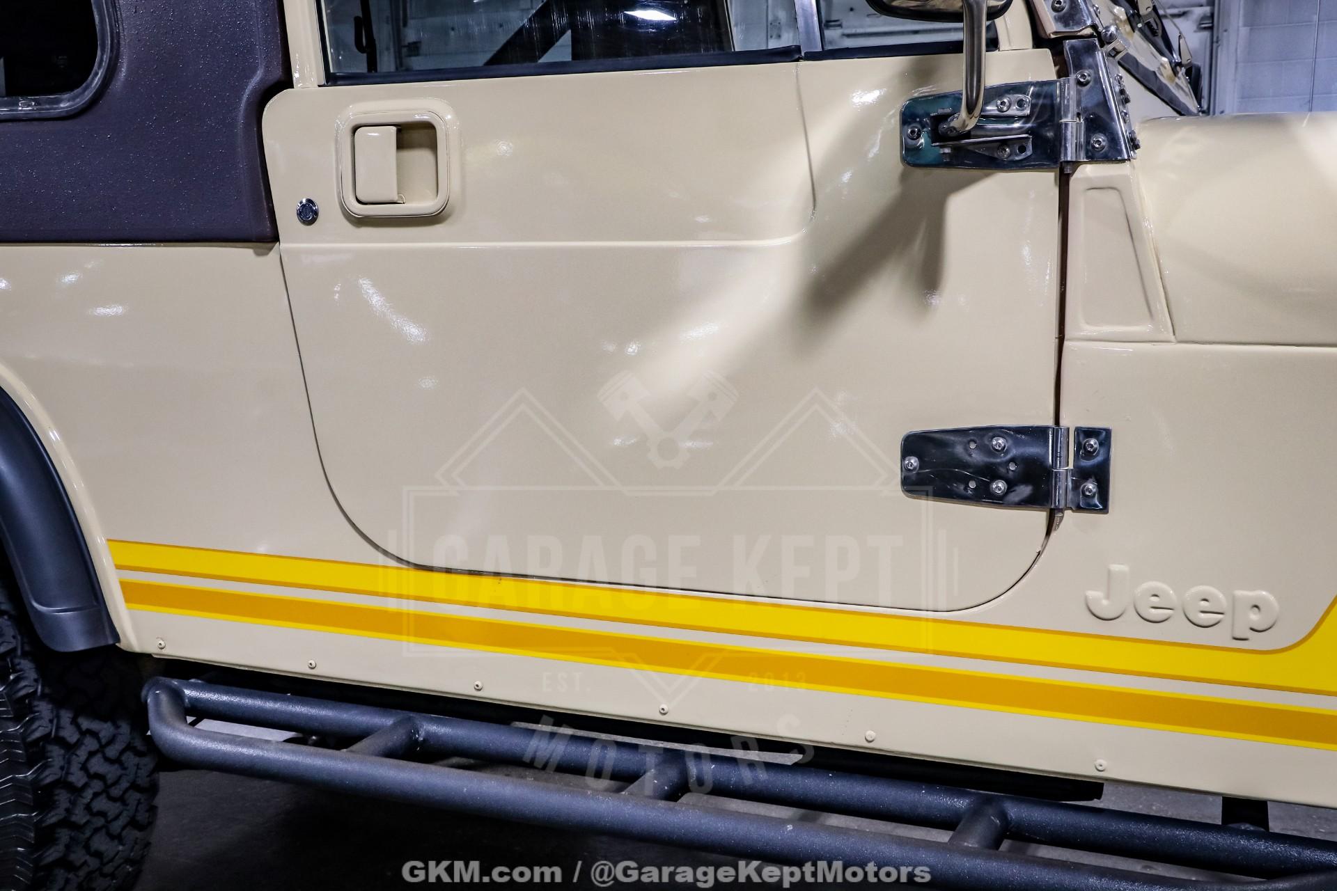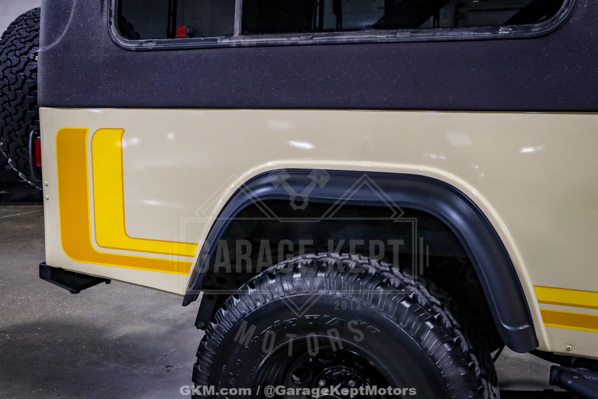 1982 Jeep CJ8 Scrambler- California 4x4- Sold New at County Wide Chrysler of Garden Grove, CA- Jamaican Beige Exterior with Scrambler Graphics over Nutmeg Denim Interior Upholstery- 350ci V8 with Fuel-injected TBI System- California BAR-Certified Engine Conversion (full emissions compliant)- 5-Speed NV4500 Manual Transmission- Bushard Clutch and Dana Axles- Full-Float Rear End with ARB Rear Air Locker- Onboard ARB air compressor- Magnaflow Exhaust and Lifted Suspension- Conn-Ferr Springs and Shackles with Rancho shocks- Baja Rockcrawler Wheels- 32x11.50x15 BFGoodrich All-Terrain Rires- Super-rare Full-size Hardtop- Factory Roll Bar and RCT Front and Rear Bumpers- Swing-Away Rear Tire Carrier with Full Size Matching Spare- Dual Rear-Mounted Jerry Cans- Full Stainless Hardware Package (hinges, latches, etc.)- Upgraded LED Headlight Kit- Bestop Low-Back Seats- Tilt Steering Wheel and Full Gauge Package- In-Dash Tachometer and Billet Dash Knobs- Kenwood CD Player with Bluetooth- Convenience Group- Original Bill of Sale, Window Sticker, and Promotional Brochures- 686 Miles Recorded Since Restored This 1982 Jeep CJ8 Scrambler represents a rare and exceptionally well-executed example of Jeep's long-wheelbase classic, combining California provenance, period-correct style, and thoughtfully engineered upgrades. Sold new at County Wide Chrysler of Garden Grove, California, this lifelong 4x4 benefits from a dry-climate history and remains accompanied by its original bill of sale, window sticker, and promotional brochures, documentation seldom seen with Scramblers today. Showing just 686 miles recorded since its restoration, this CJ8 presents as a collector-grade example that is equally capable on the road or trail.Finished in striking Jamaican Beige with factory-style Scrambler graphics, the exterior captures the unmistakable character that made the CJ8 iconic. A super-rare full-size hardtop adds both desirability and year-round usability, while factory roll bar, RCT front and rear bumpers, and a swing-away rear tire carrier with a full-size matching spare reinforce its rugged, purposeful stance. Dual rear-mounted jerry cans, upgraded LED headlight kit, Baja Rockcrawler wheels, and 32x11.50x15 BFGoodrich All-Terrain tires complete the look, blending classic Jeep aesthetics with modern functionality.Under the hood lies a powerful 350ci V8 equipped with a fuel-injected TBI system, delivering reliable performance with improved drivability. Importantly, this engine conversion is California BAR-certified, meaning it is fully emissions compliant, an extremely rare and valuable feature for a V8-swapped CJ in today's regulatory environment. Power is routed through a stout 5-speed NV4500 manual transmission, paired with a Bushard clutch and durable Dana axles, making this Scrambler as robust as it is enjoyable to drive.The drivetrain is further enhanced by a full-float rear end with an ARB rear air locker, offering exceptional traction when conditions demand it. An onboard ARB air compressor allows for quick locker engagement and tire adjustments on the fly. A lifted suspension featuring Conn-Ferr springs and shackles, combined with Rancho shocks, provides confident off-road capability while maintaining stable road manners. A Magnaflow exhaust adds a refined yet authoritative V8 tone befitting this classic Jeep.Inside, the cabin blends classic CJ simplicity with tasteful upgrades. Nutmeg denim upholstery is complemented by Bestop low-back seats, a tilt steering wheel, and a full gauge package with an in-dash tachometer and billet dash knobs. A Kenwood CD player with Bluetooth adds modern convenience, while the factory Convenience Group enhances everyday usability without detracting from the Scrambler's authentic feel.Finished with a full stainless hardware package throughoutcovering hinges, latches, and exterior details, this CJ8 Scrambler stands out for both its attention to detail and its rarity. With low post-restoration mileage, exceptional documentation, and a carefully engineered, emissions-compliant V8 conversion, this 1982 Jeep CJ8 Scrambler is a standout example that appeals equally to collectors, enthusiasts, and those seeking one of the most versatile and desirable classic Jeeps ever produced.