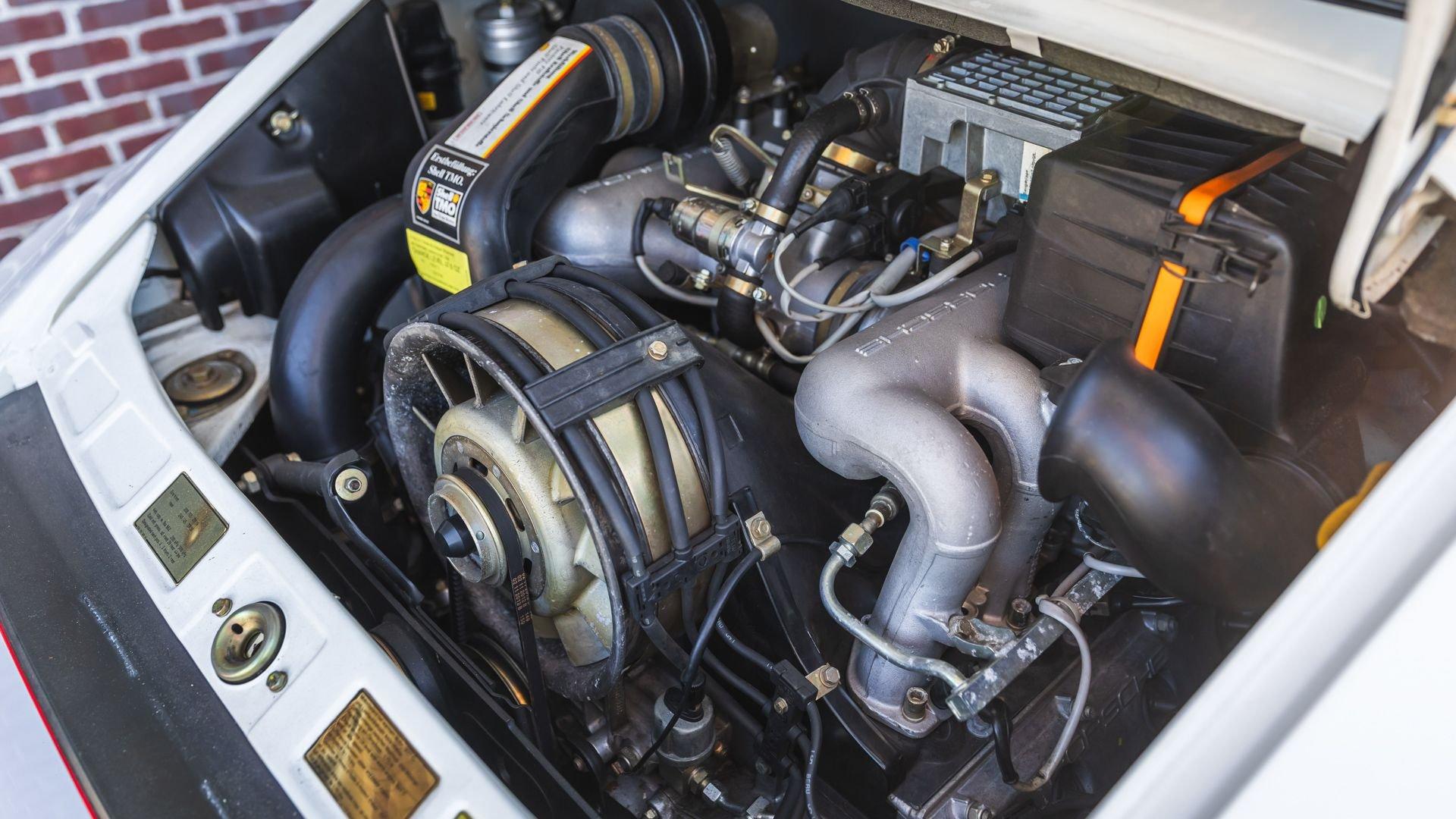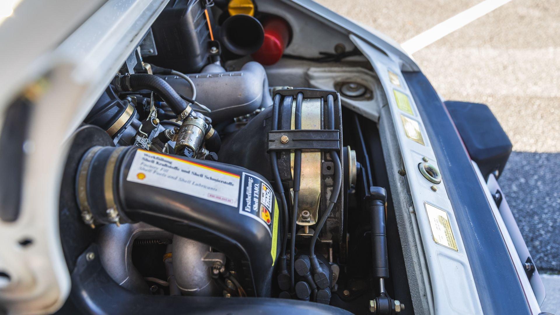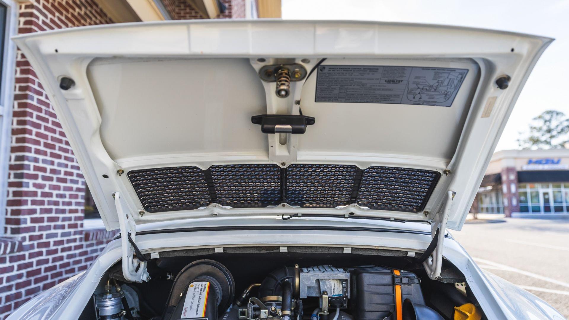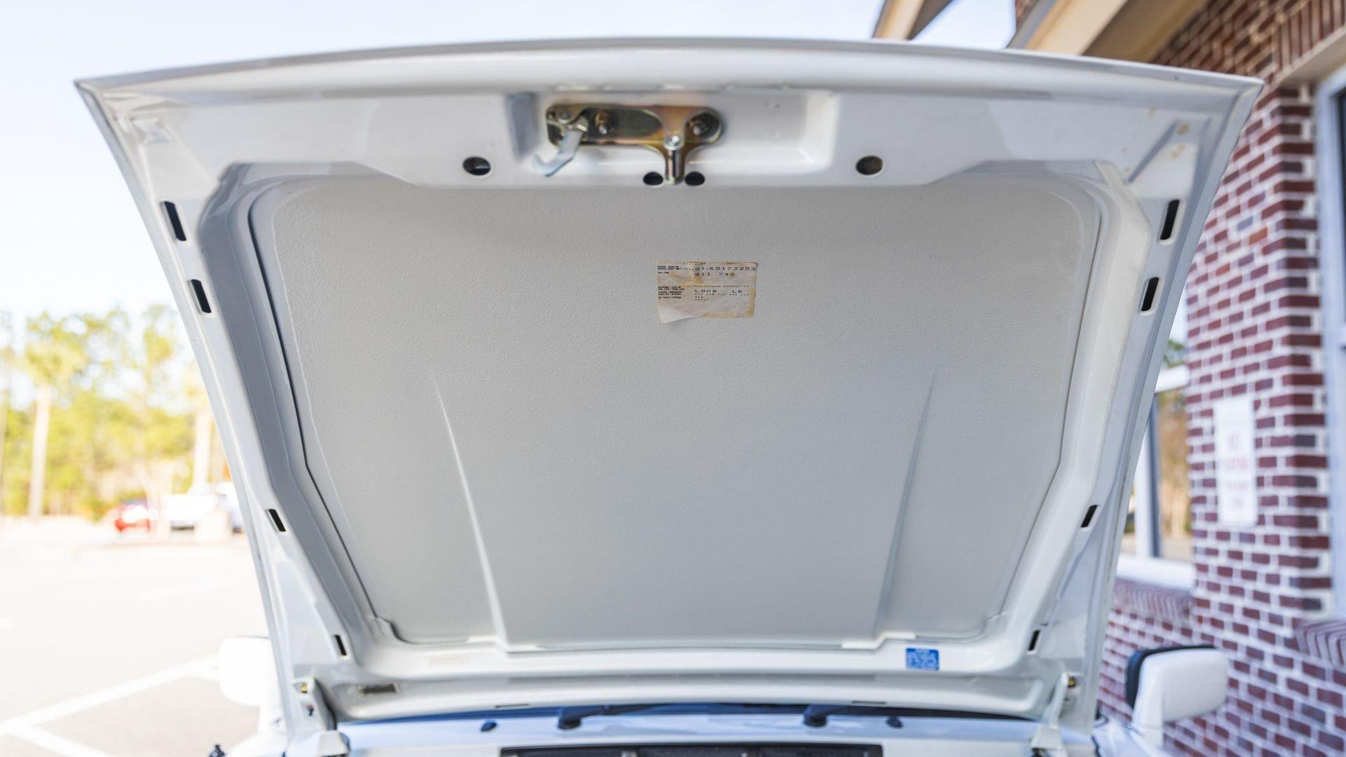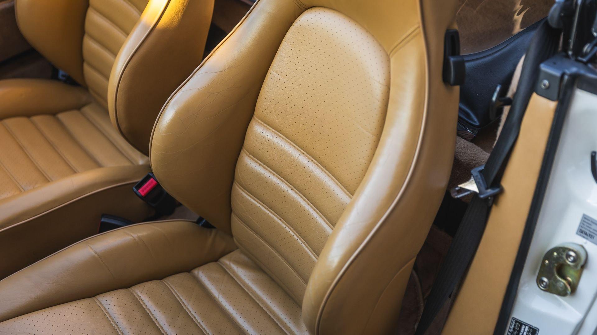Completed in June 1989, this 911 Speedster dates from the closing months of production. The under-hood options sticker specifies “908” Grand Prix White, a color originally reserved only for the 1973 911 Carrera RS and a “LE” Black leather interior. The car is presently upholstered in tan leather with a matching tan top, a color combination it appears to have carried since new. Optional equipment includes a Blaupunkt Reno radio, short shifter, and Grand Prix White–painted Fuchs wheels, along with the rear storage compartment fitted in place of rear seats to accommodate the Speedster's distinctive clamshell cover.