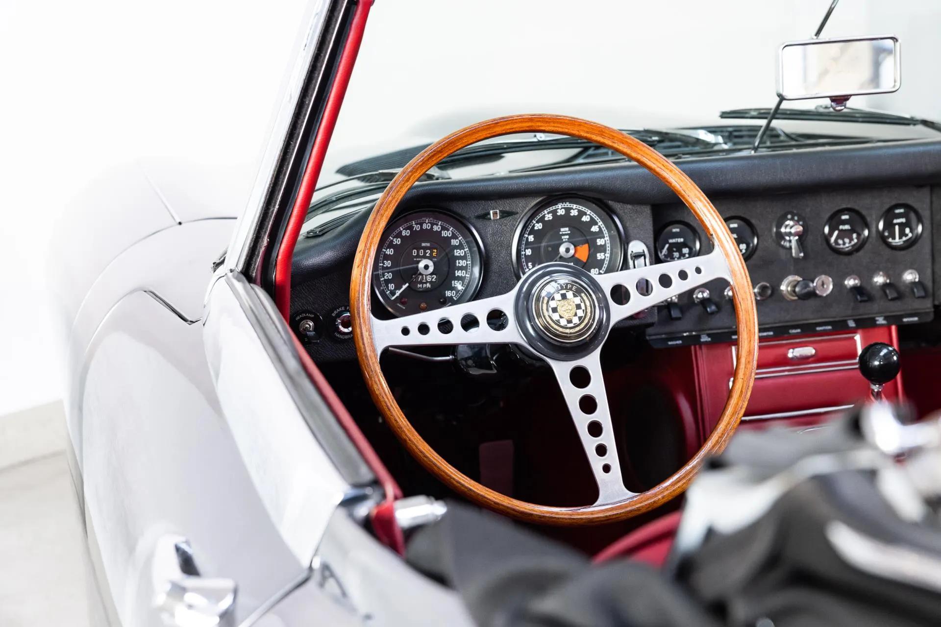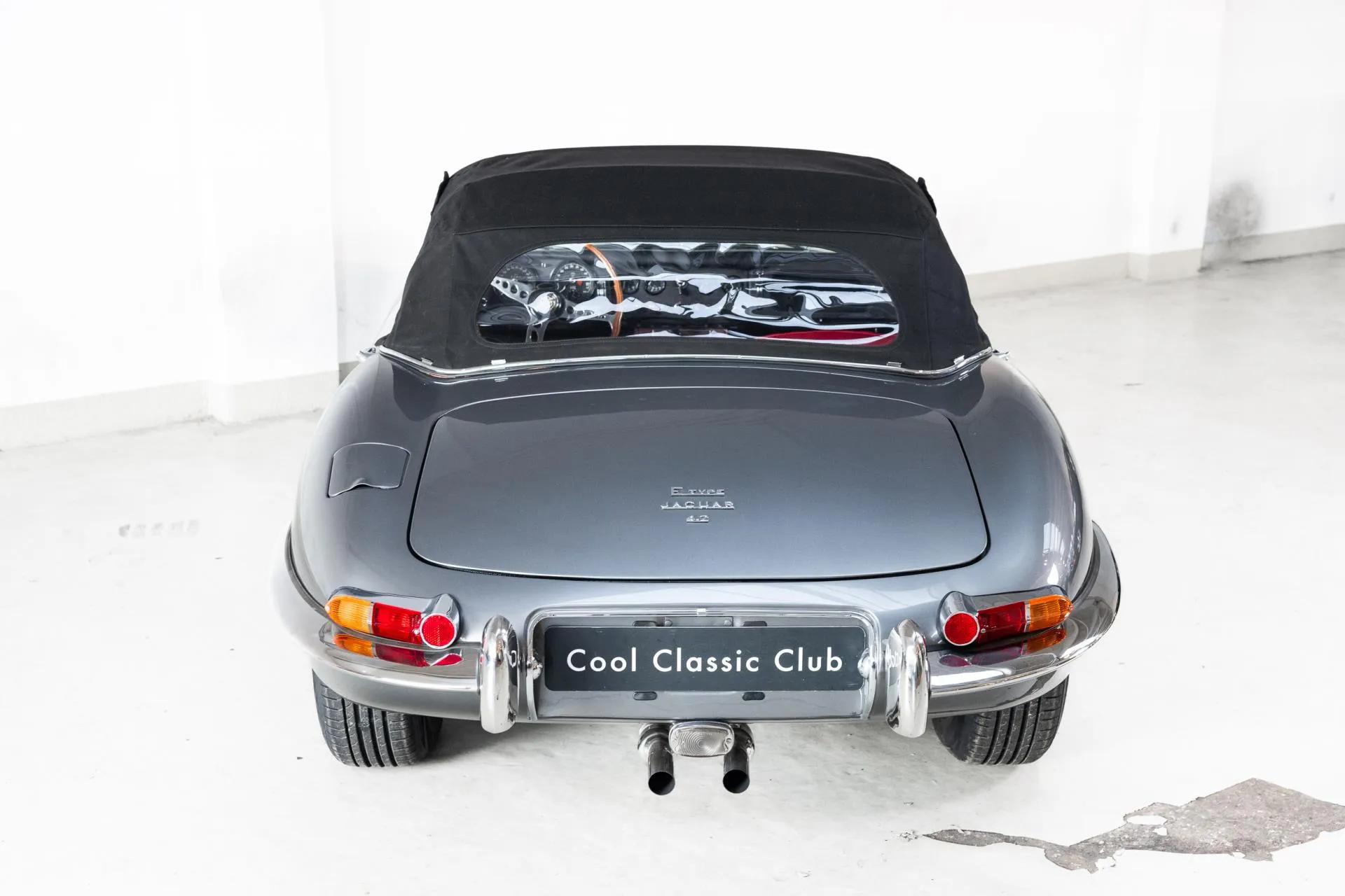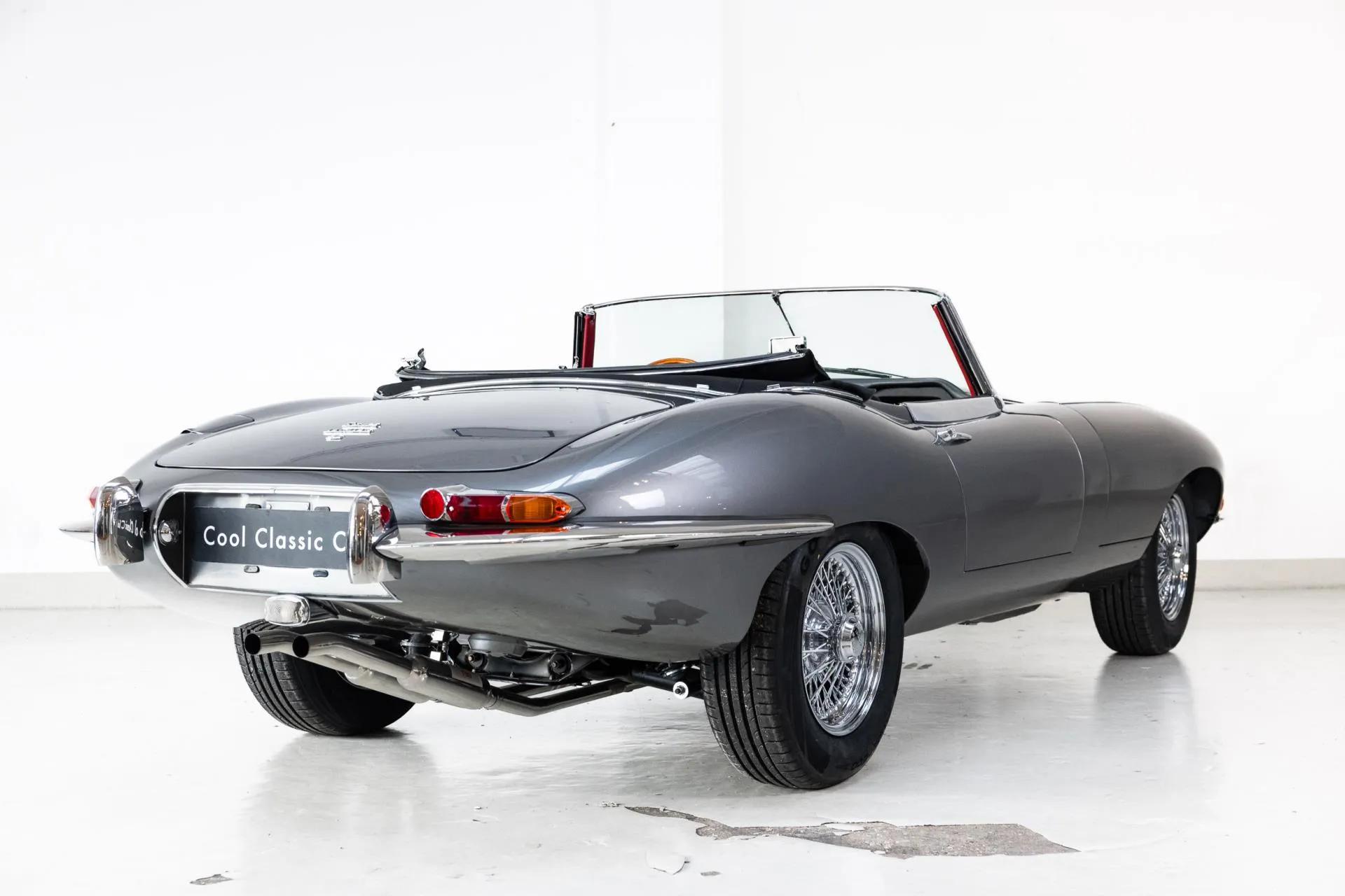 A Cool Classic of Cool Classics: the Jaguar E-type Series 1 4.2 OTS. For the past 59 years, the E-Type has followed her calling: to drive, amaze and spread smiles. With her long nose, lush hips and sensual lines, cloaked in Opalescent Silver Grey with a red leather interior, she comes into her own. A neat lady, but sneaking eye contact with lace at the Christmas table while you are in serious conversation with father-in-law. Neat, but on the edge.