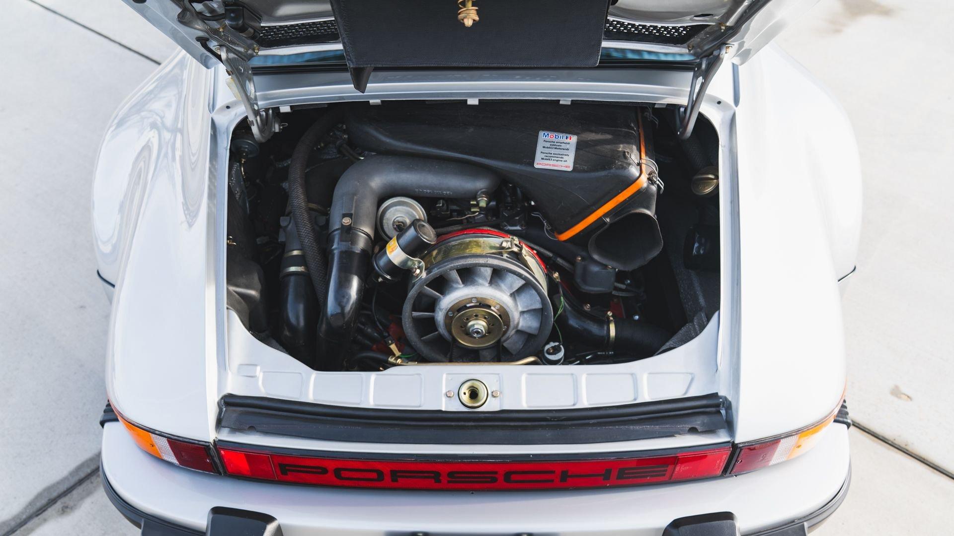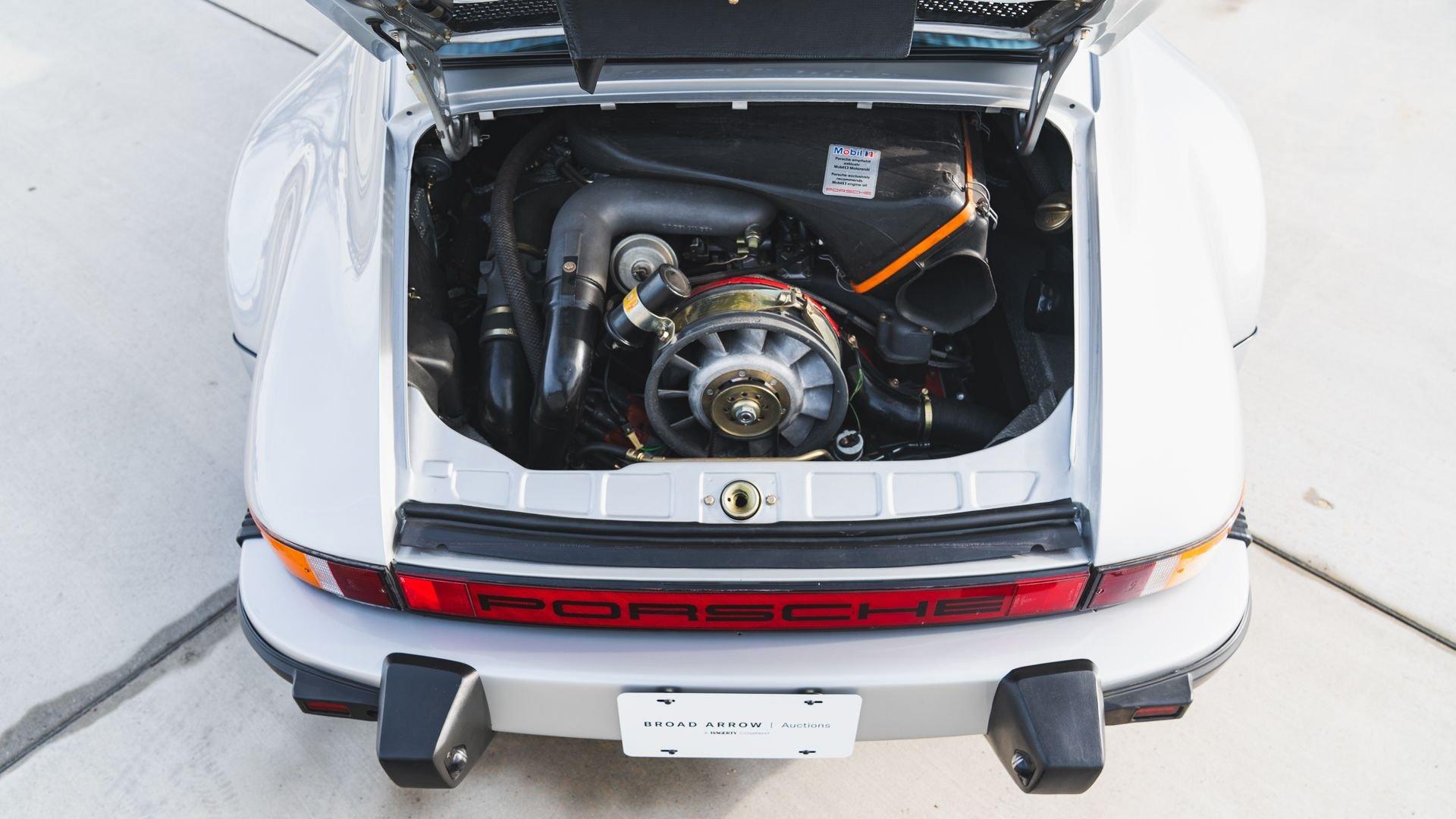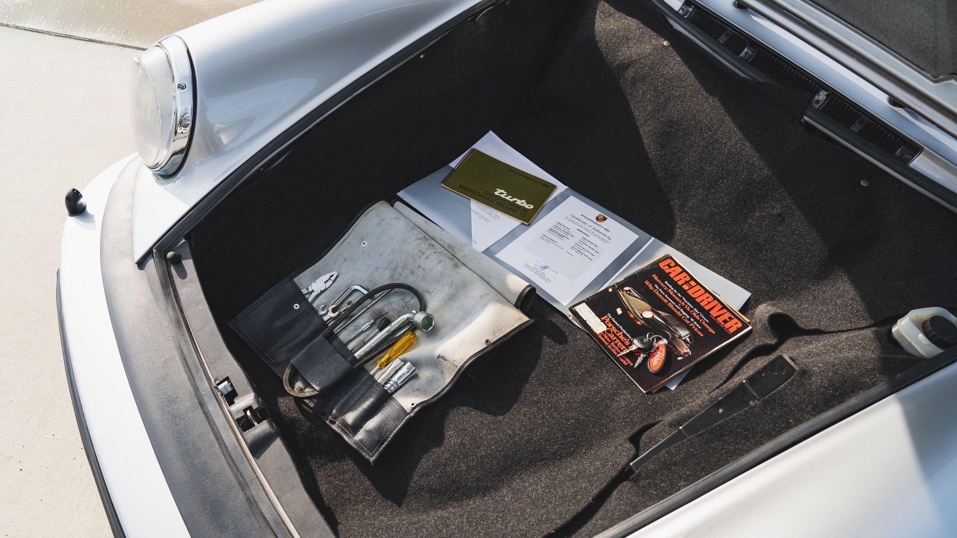 In April 2014, the car was acquired by the consignor and delivered to Dawe's Motorsports of Stroudsburg, Pennsylvania. In advance of its photo-documented restoration, a Porsche Certificate of Authenticity was acquired as proof of its matching-numbers status, original colors, and optional extras. The Turbo's exterior metal was stripped revealing no accident damage and little corrosion before fresh exterior coats of primer and Silbermetallic paint were applied. Period-correct front and rear bumpers and early non-intercooled Turbo tail were sourced and received fresh paint at the same time.