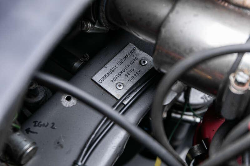 We understand that following its construction at the Connaught works and designation as chassis ‘B4’, this car was campaigned by the Rob Walker Racing Team during the 1955, 1956 and 1957 seasons and still wears his signature colours. It was driven by Tony Rolt at the British Grand Prix at Aintree in 1955, took part in further Grand Prix at Syracuse and Pau, and was enjoyed by Jack Fairman, Peter Walker and Reg Parnell, before its period competition history is understood to have concluded at Aintree in 1958 with Verdun Edwards.