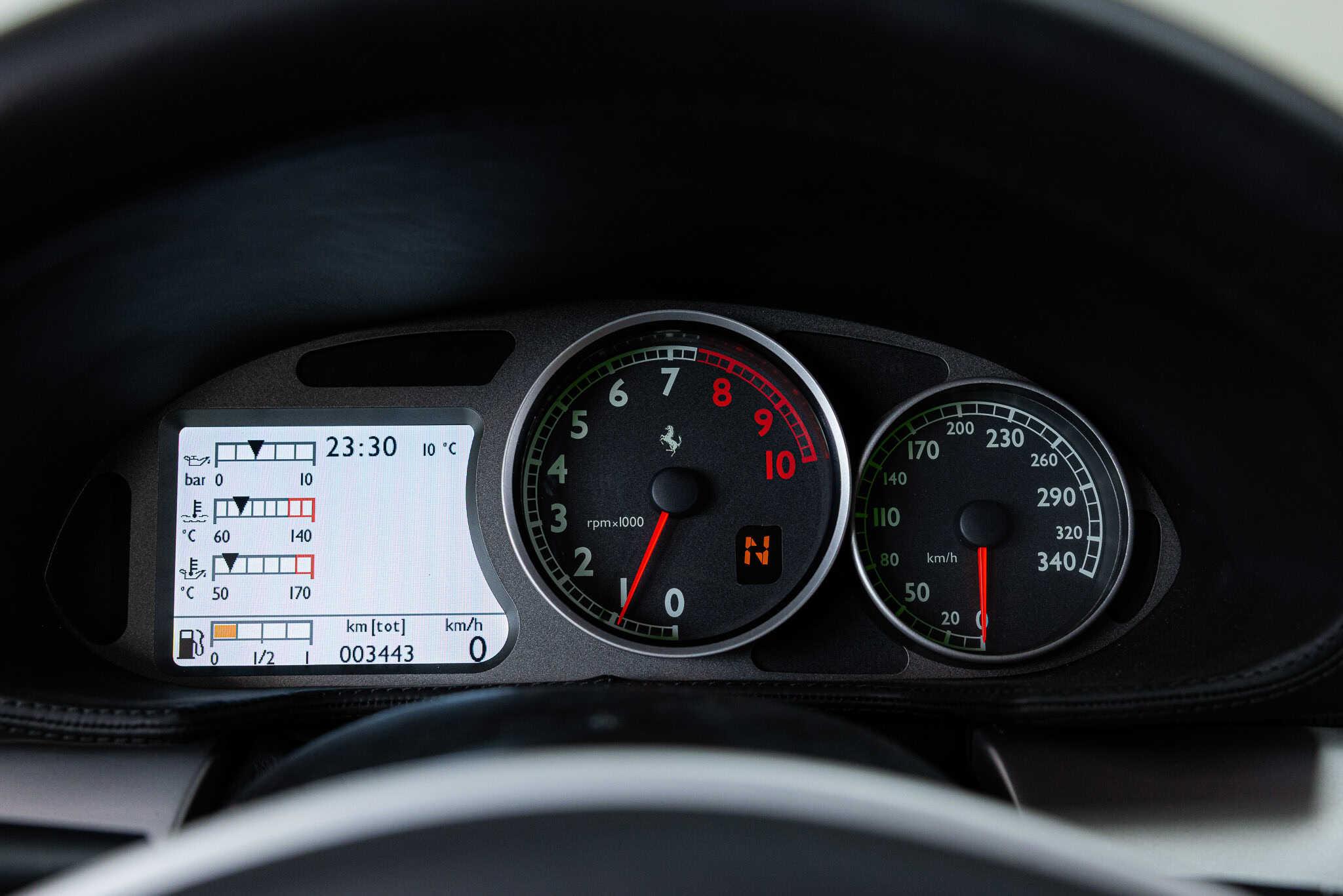 It's a technical marvel from an era when Ferraris truly 'communicated' with their driver, without the interference of electronic babysitters. A car that combines the raw power of 540 thundering horses with the impeccable manners of a British butler.And then there's this specific example, finished in Blu Mirabeau. While most 612 owners used their cars for quick trips to the Alps, this one has only covered 3,442 kilometers in twenty years—that's roughly the distance of a round trip from Amsterdam to Milan. The maintenance, however, was obsessively thorough, with over €30,000 spent at the dealer (that's nearly €10 per kilometer in pure love). Every service performed at the dealer, stamped, documented, and completely up to date.