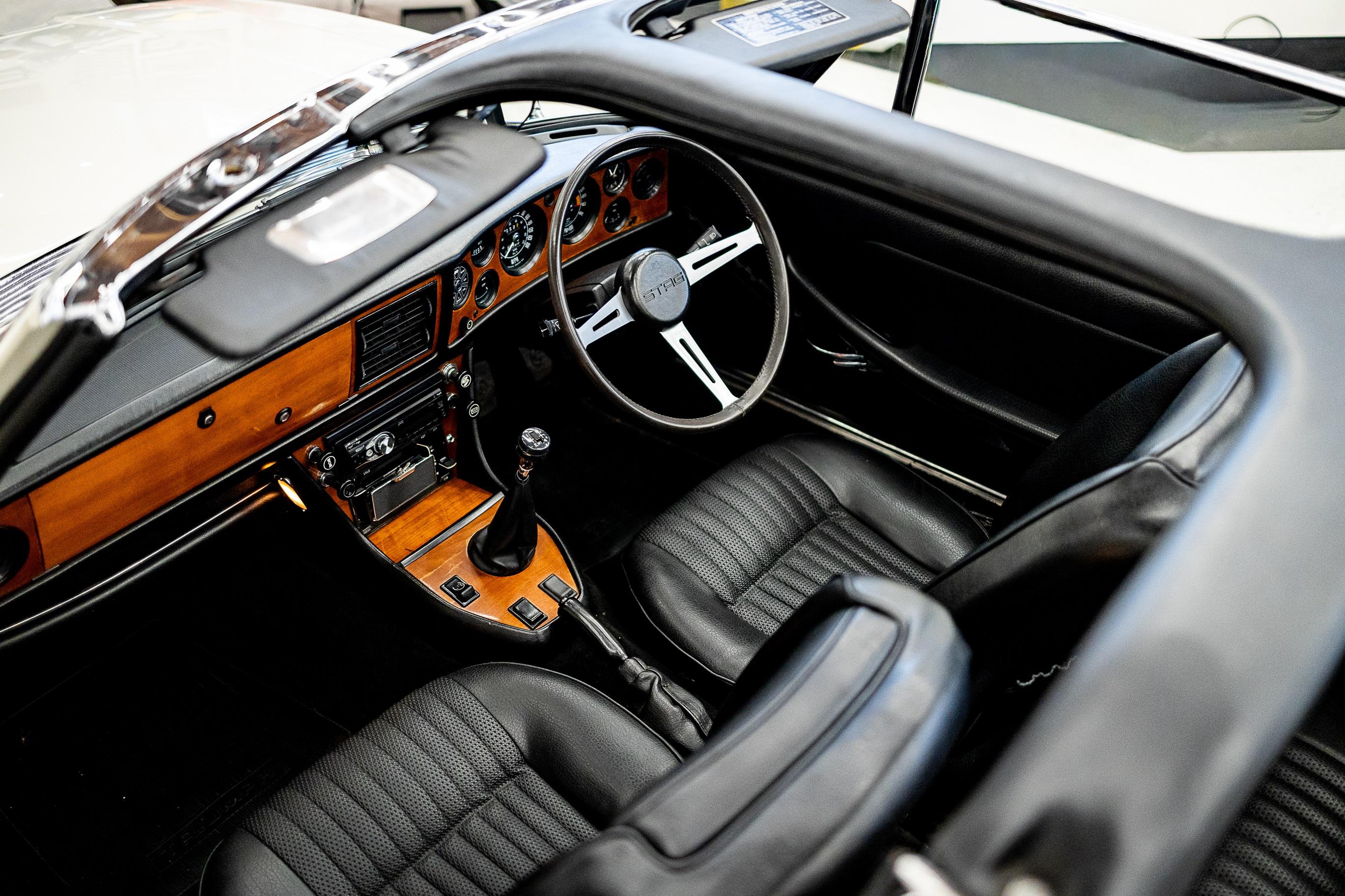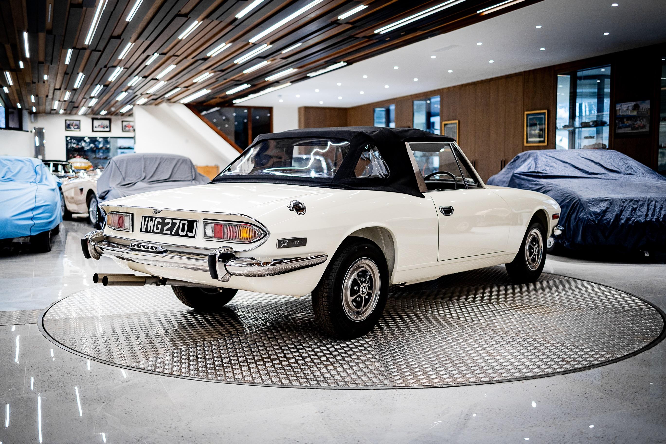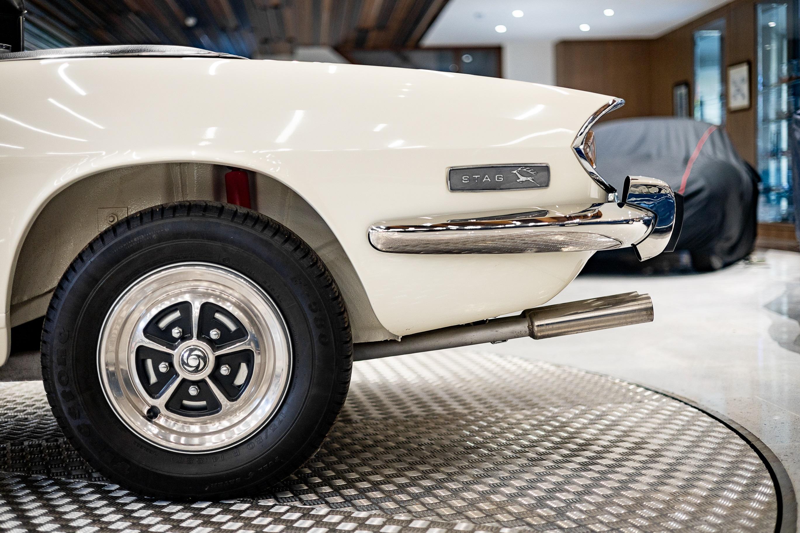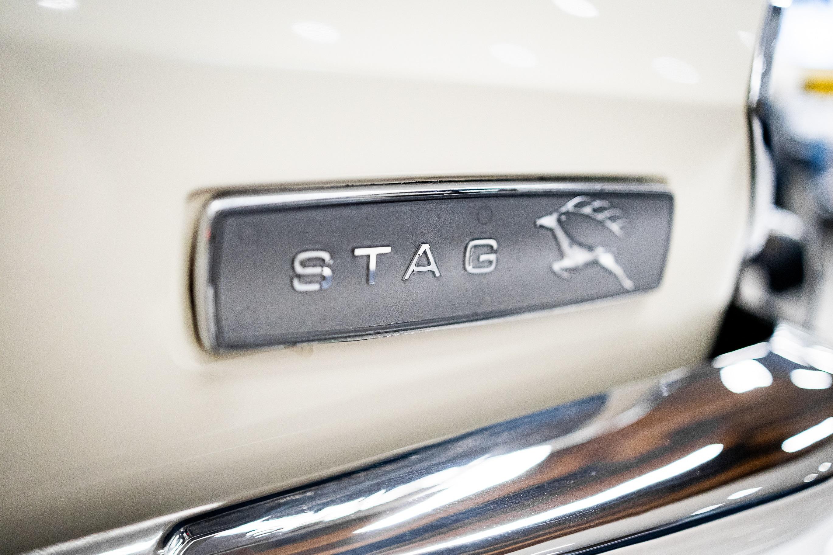 Originally registered in March 1971 this rare, Mk. I Stag presents well in gleaming white coachwork and a contrasting black trim. Offered to auction with a V5 registration document and various bills and receipts, this MoT test exempt example is ready to be enjoyed by a new owner. We are informed that this manual with overdrive example is both a head turner and fun to drive. The car has benefitted from a photographic bare metal restoration at some point and was recommissioned in 2020 by marque specialists Cherished Classic Cars of Melton Mowbray. The result is the delightful example available here. Consigned by Dominic Lake