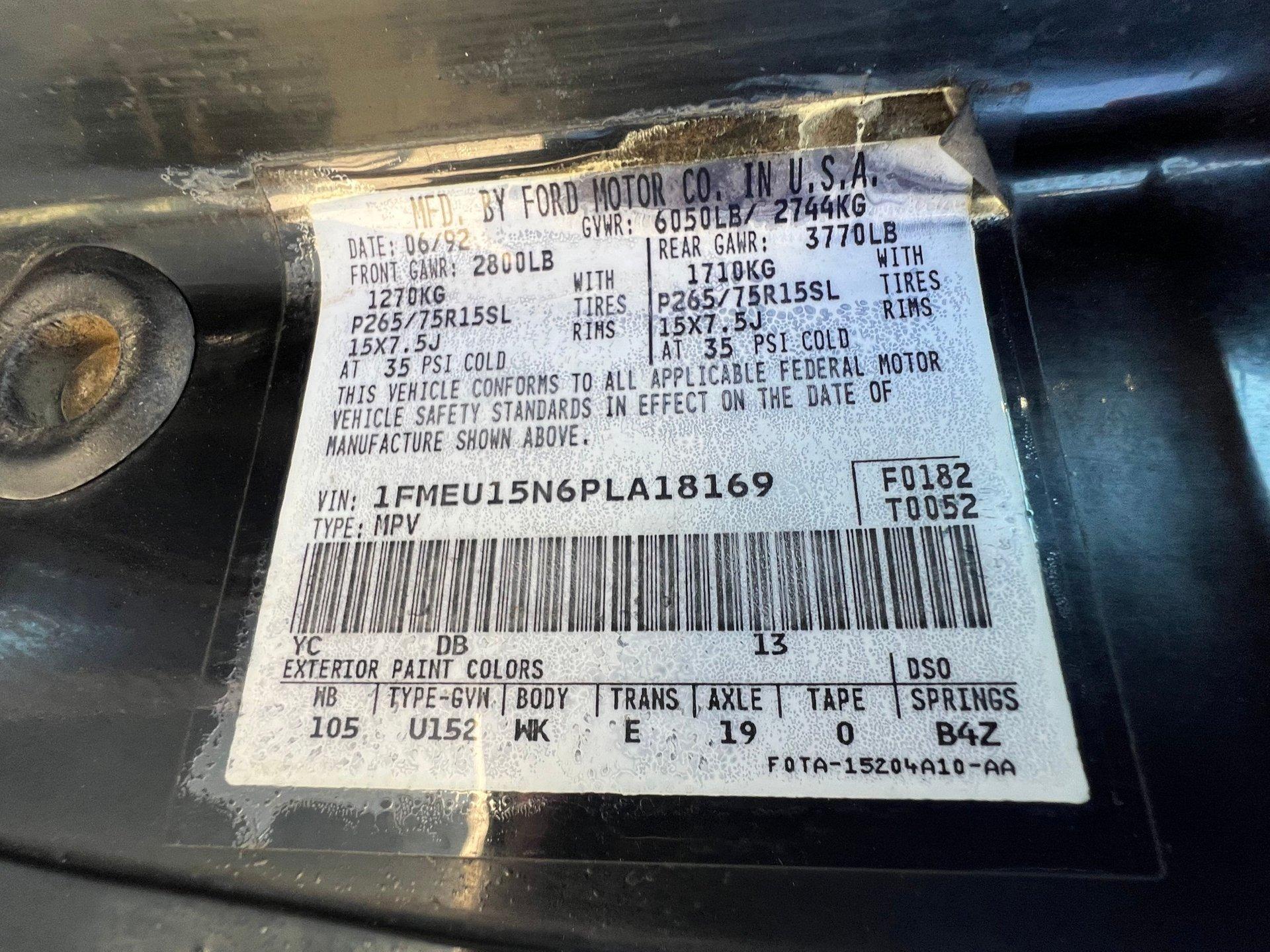 - VIN Code1FMEU15N6PLA18169
