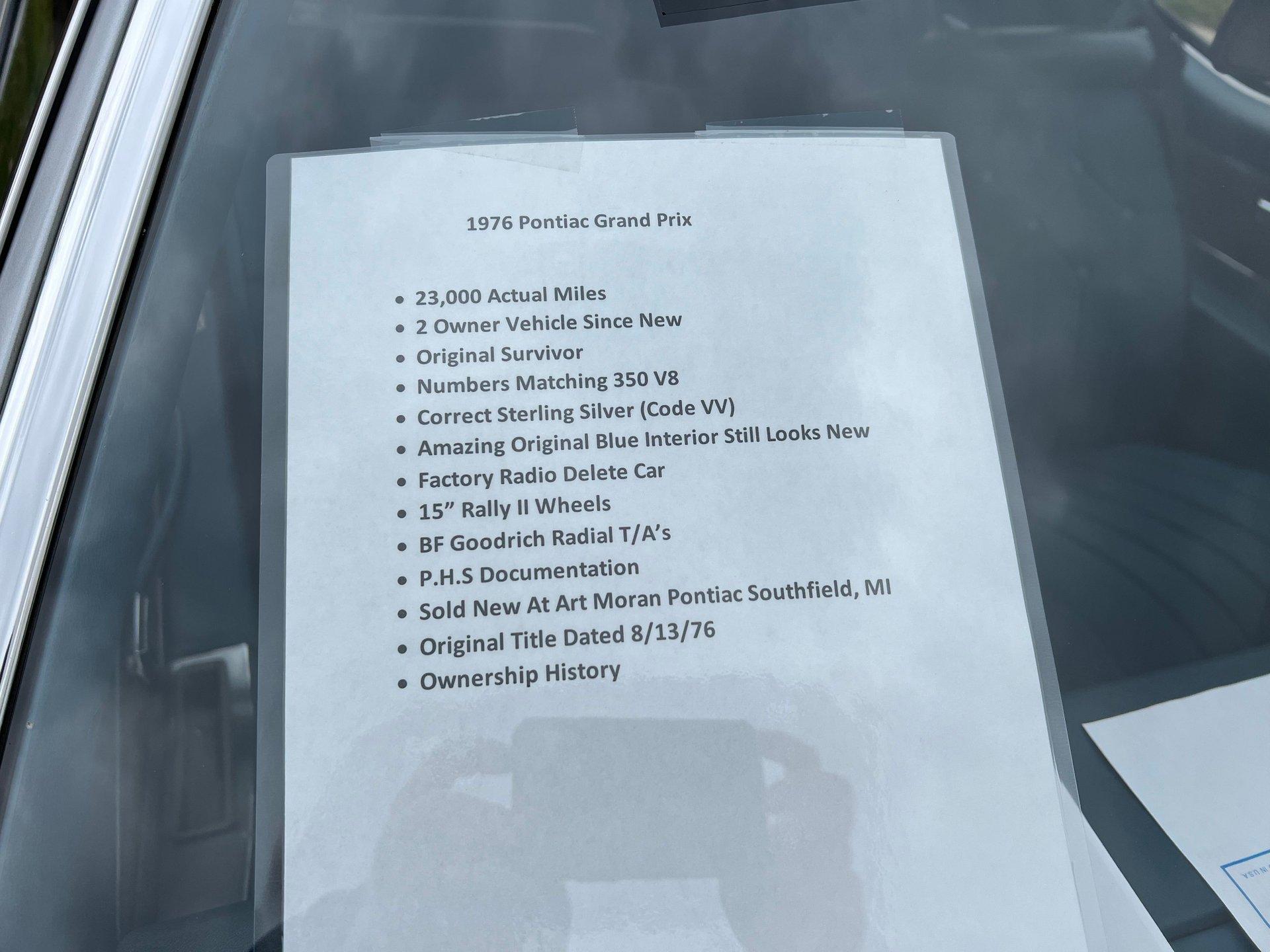 *Sold new at Art Moran Pontiac of Southfield, Michigan
