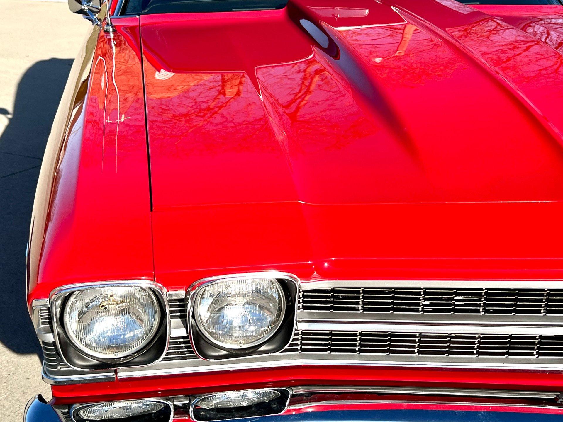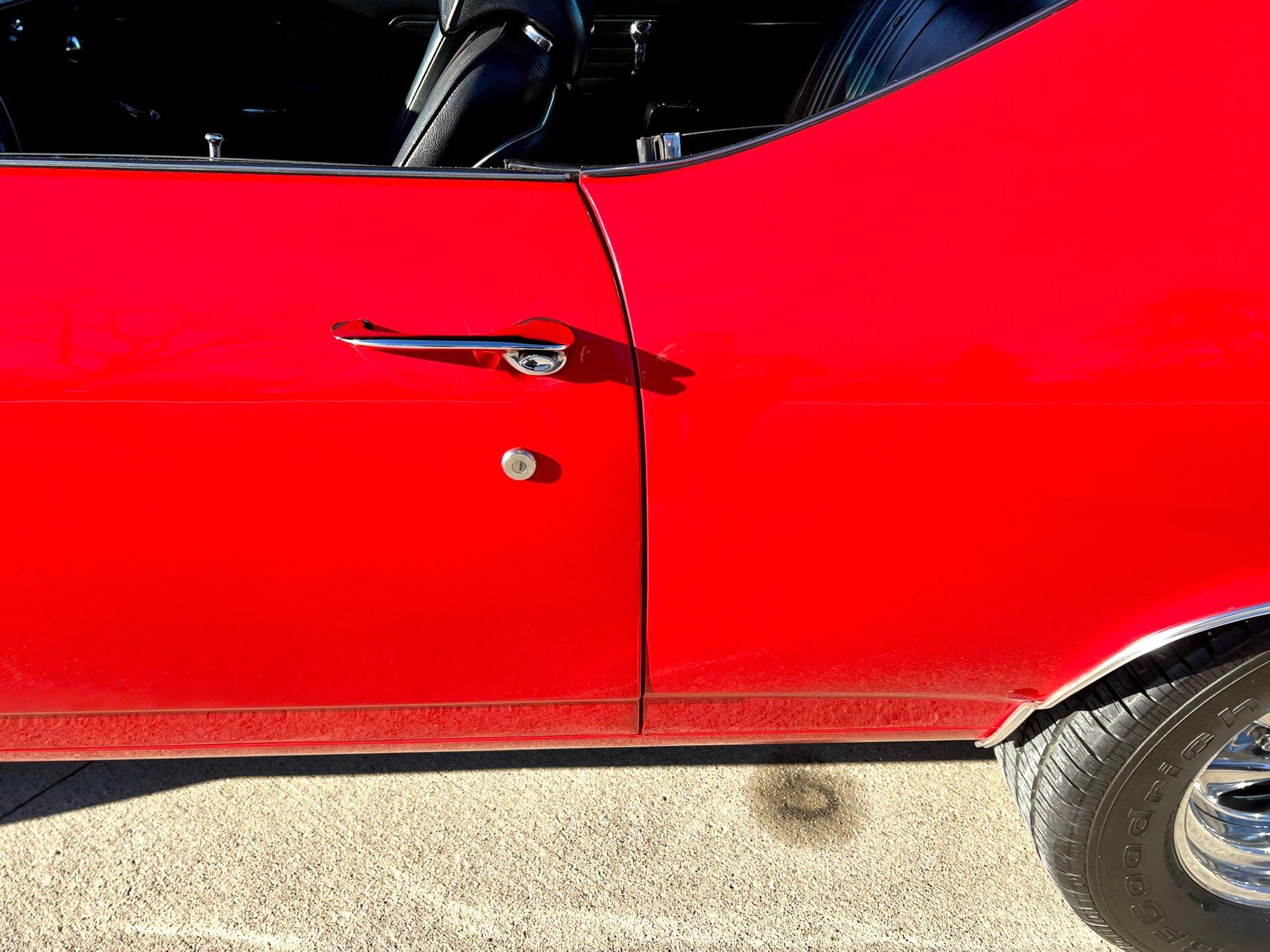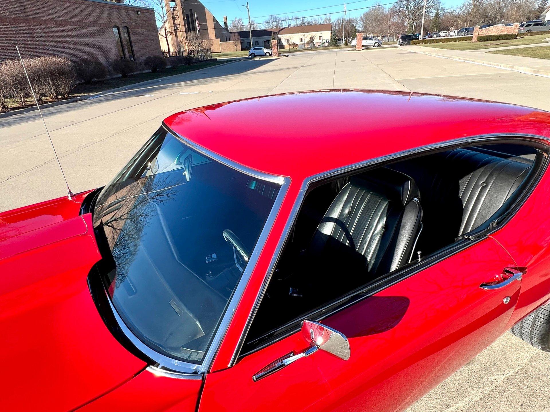 Originally Garnet red now Torch red. Great looking classic Chevelle with all the SS upgrades and fuel injected 502CI V8. Air conditioning blows cold for cruising all Summer. Clean and solid undercarriage. Trunk finished with spare/jack. Engine bay all detailed and ready to go.