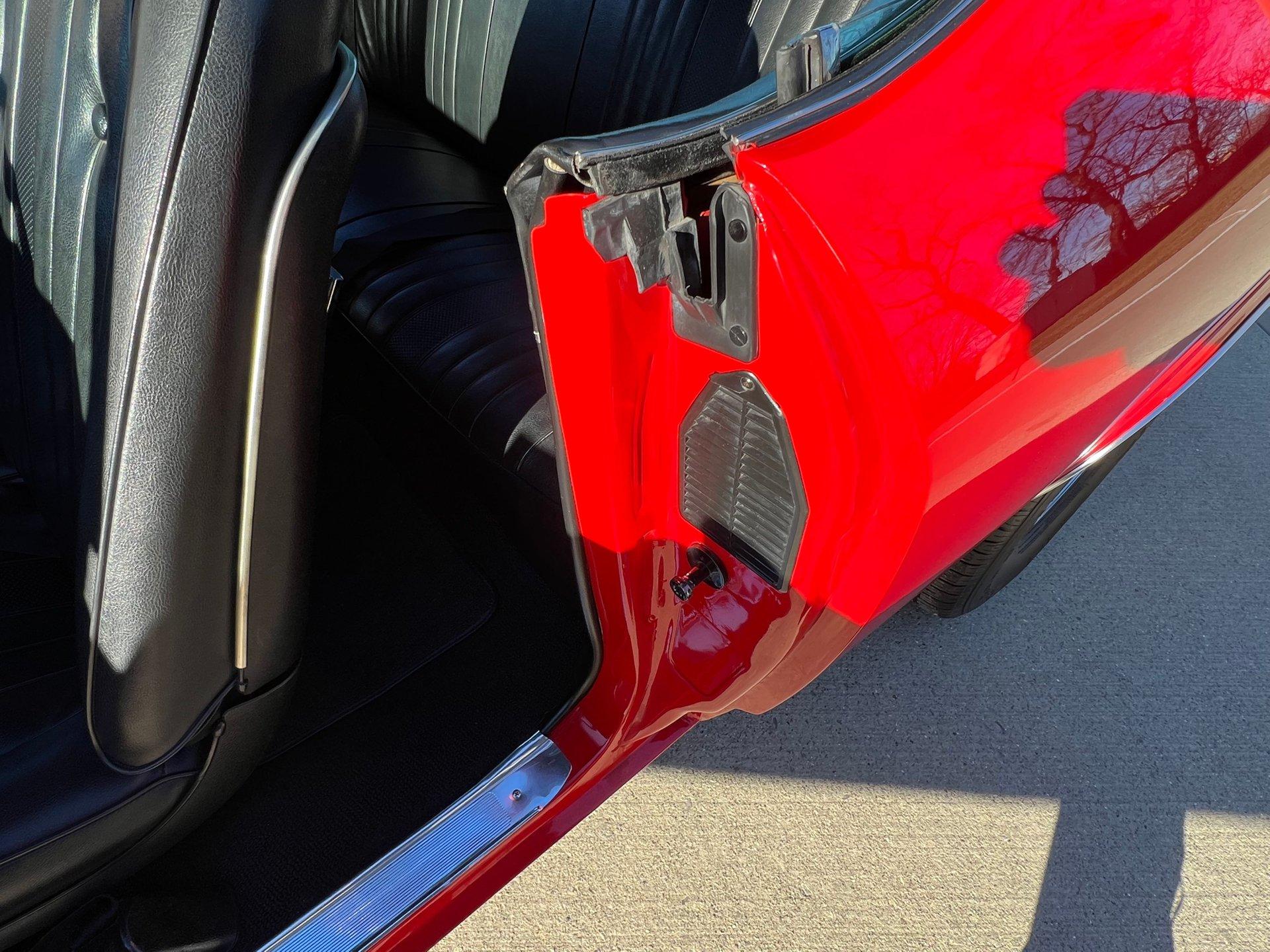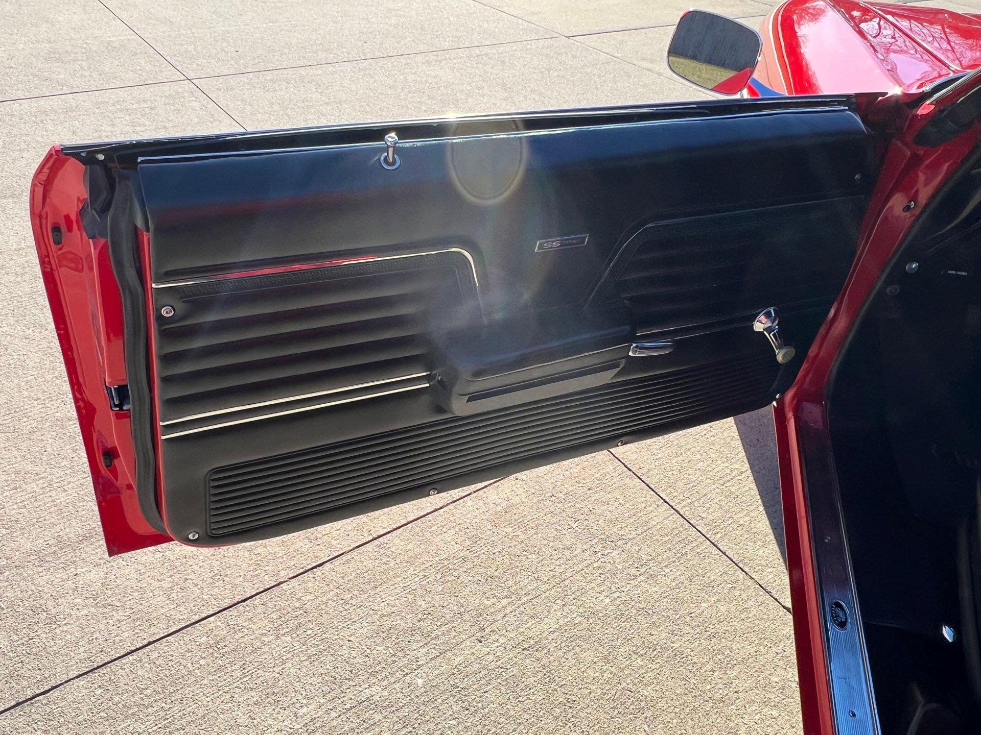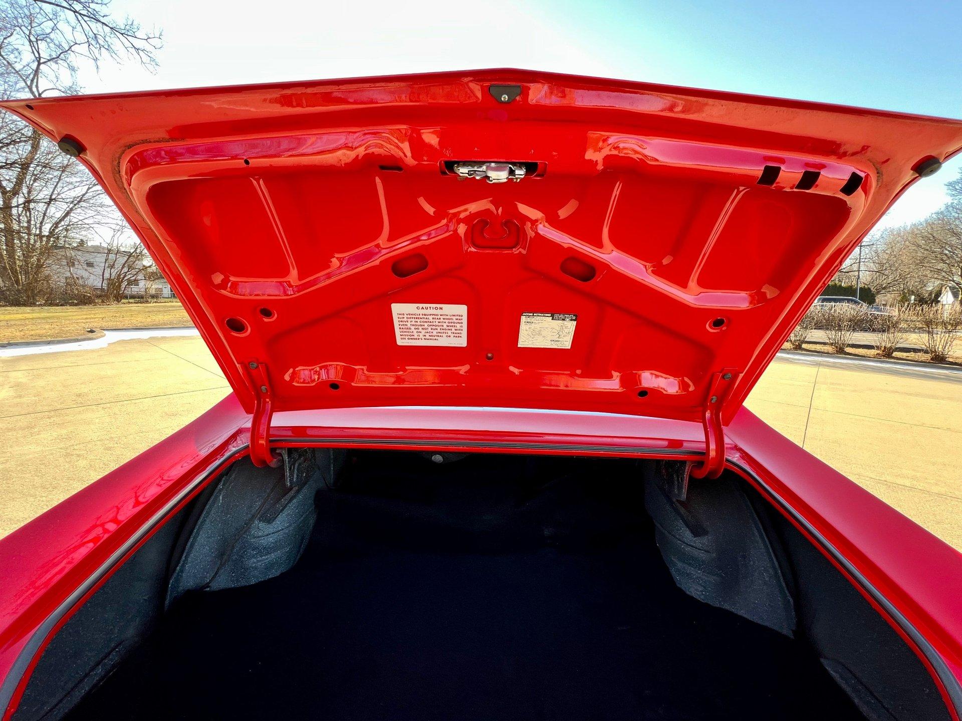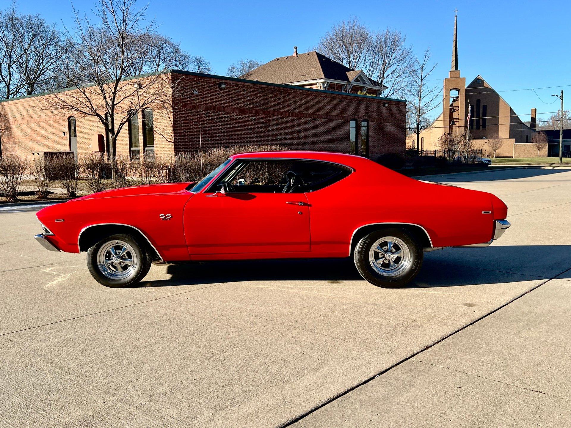 Originally Garnet red now Torch red. Great looking classic Chevelle with all the SS upgrades and fuel injected 502CI V8. Air conditioning blows cold for cruising all Summer. Clean and solid undercarriage. Trunk finished with spare/jack. Engine bay all detailed and ready to go.