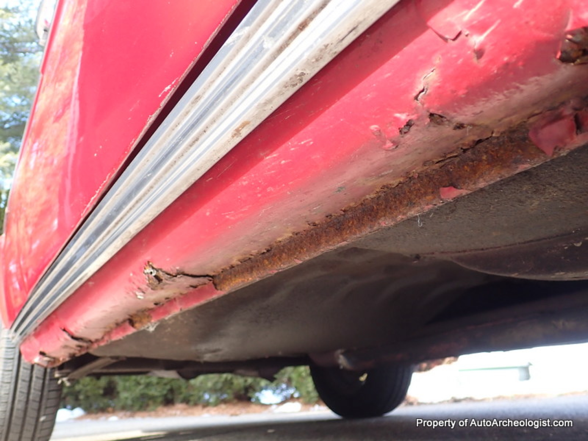 The underside of the car is in great condition, except for the right side (passenger) sill, there is unfortunately significant rust/rot. Interestingly enough, the rest of the undercarriage hardly even has light surface corrosion.