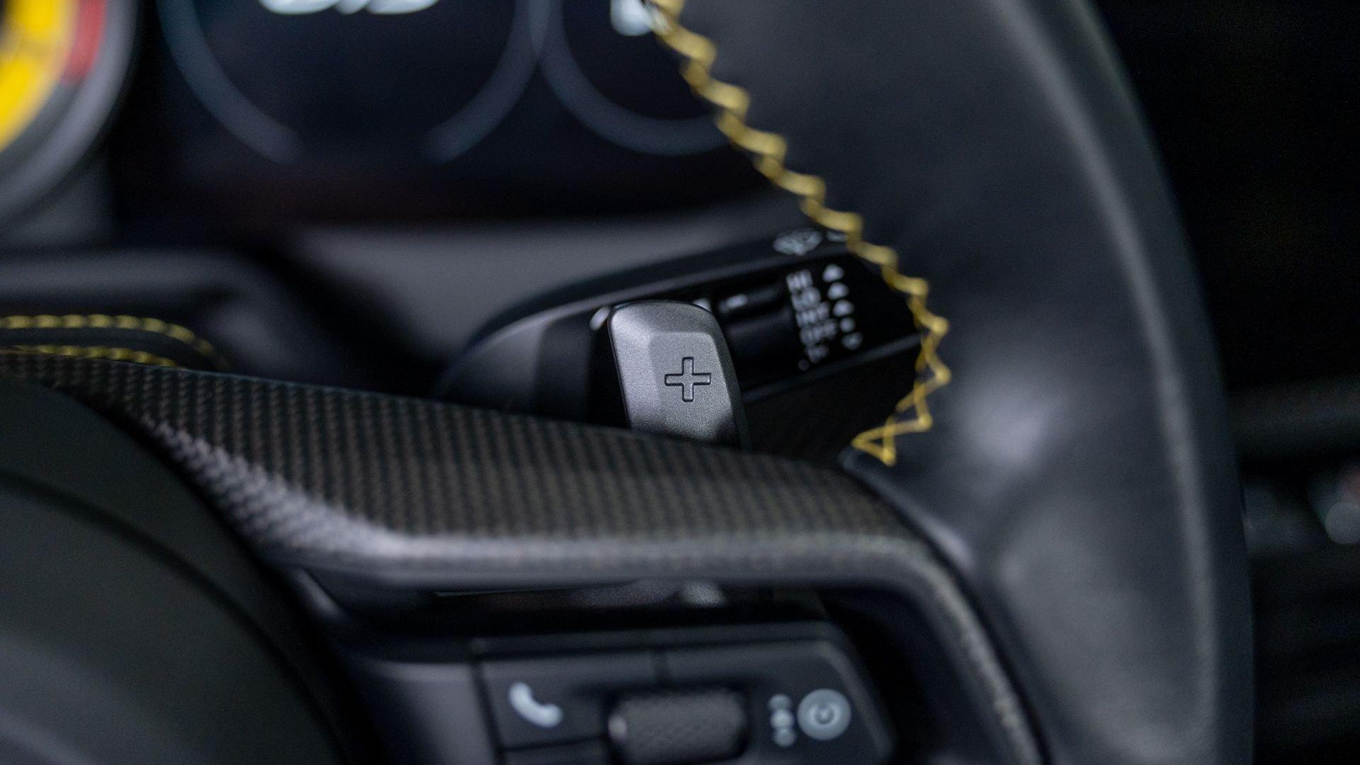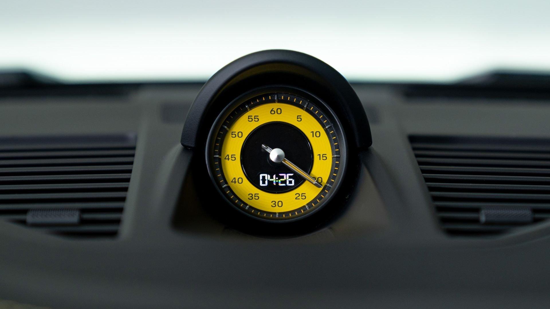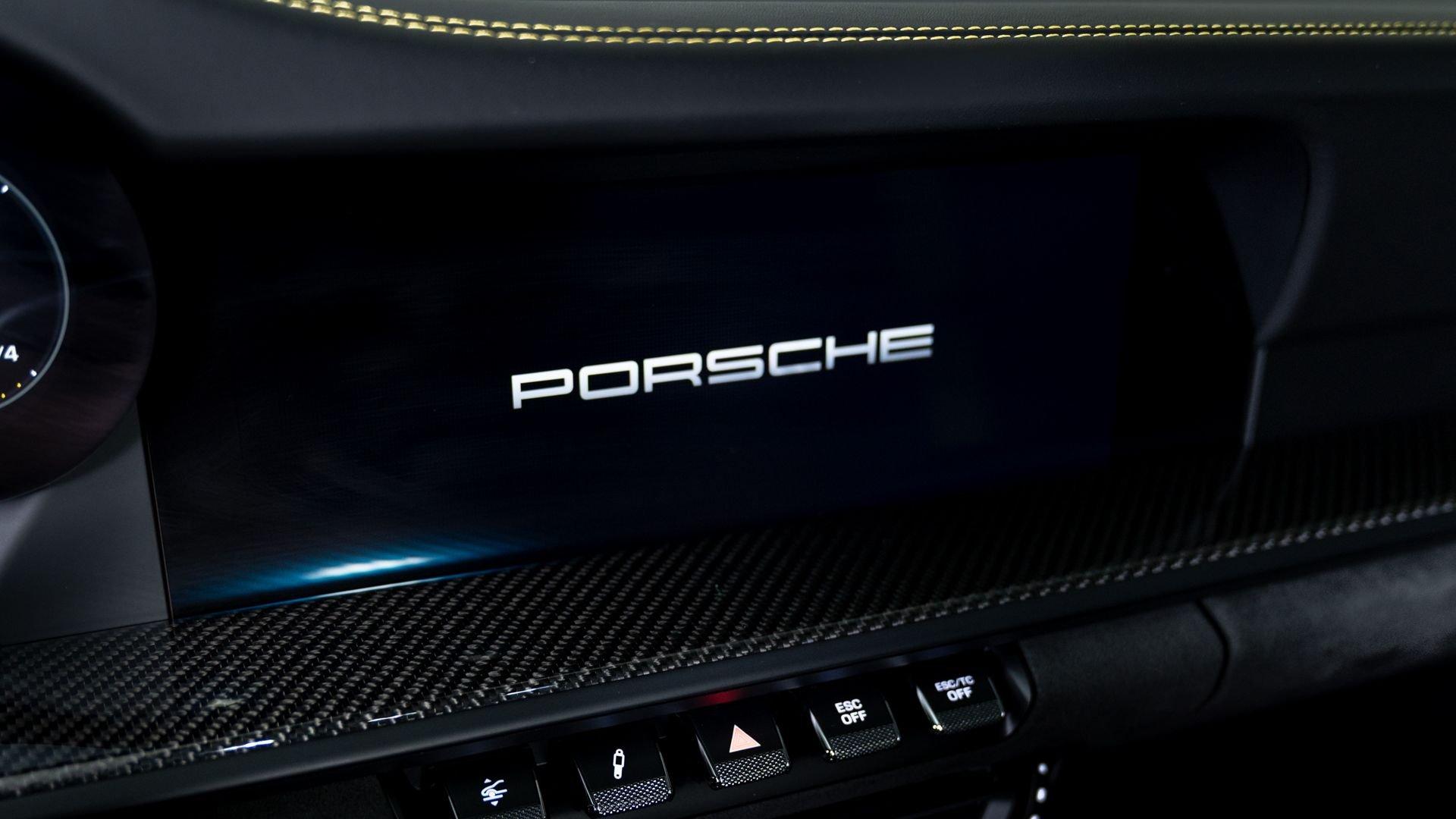 The extra options list was equally well considered, led by Porsche Ceramic Composite Brakes (PCCB) with yellow calipers, Full Bucket Seats, and the Carbon Fiber Roof, joined by the 23.7-gallon extended-range fuel tank. Comfort and usability were addressed by the sought-after Front Axle Lift, LED-Matrix Design headlights in Black with PDLS+, BOSE audio, and rear ParkAssist.