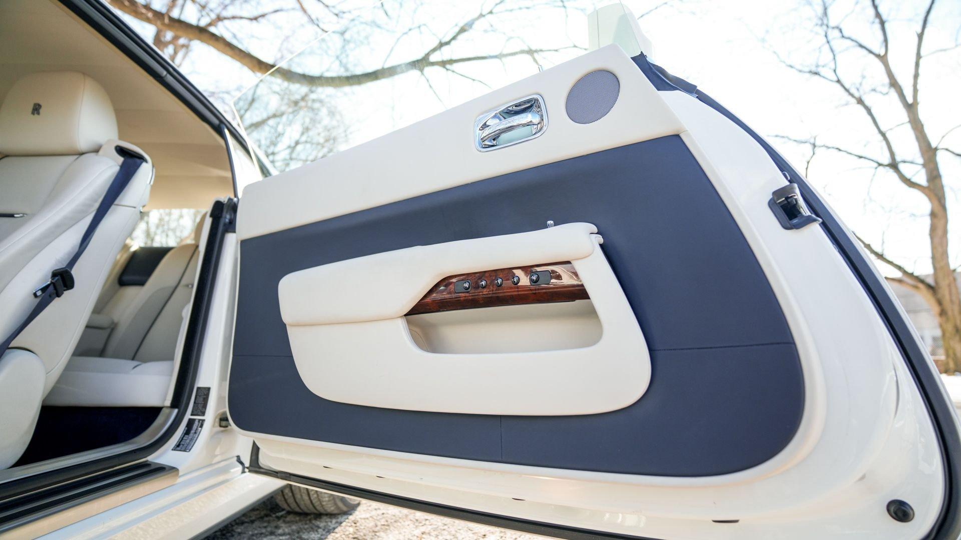This Dawn completed production at the Goodwood plant on 13 February 2017 and was destined for the U.S., where it was acquired by its original owner in Houston, Texas, that August. A digital copy of the window sticker reveals that they were not one to shy away from Rolls-Royce's extensive list of optional equipment. The striking English White Metallic alone cost $9,425, which was contrasted with a Blue convertible top. The white and blue theme continued through the full natural grain leather interior, with the primary hide color being Seashell contrasted by Navy Blue. The bespoke interior, with its ventilated seats, RR monogram in the headrests, Navy Blue piping, and Walnut Burr wood trim, added $15,400. The detailed list of optional equipment further included lambswool footmats, color-keyed boot trim, and the Driver Assistance 3 package, which included lane departure warning, high-beam assistance, active cruise control, a head-up display, and night vision with pedestrian recognition. In total, this Dawn was equipped with just over $35,000 in optional equipment, bringing the final price to over $381,000.