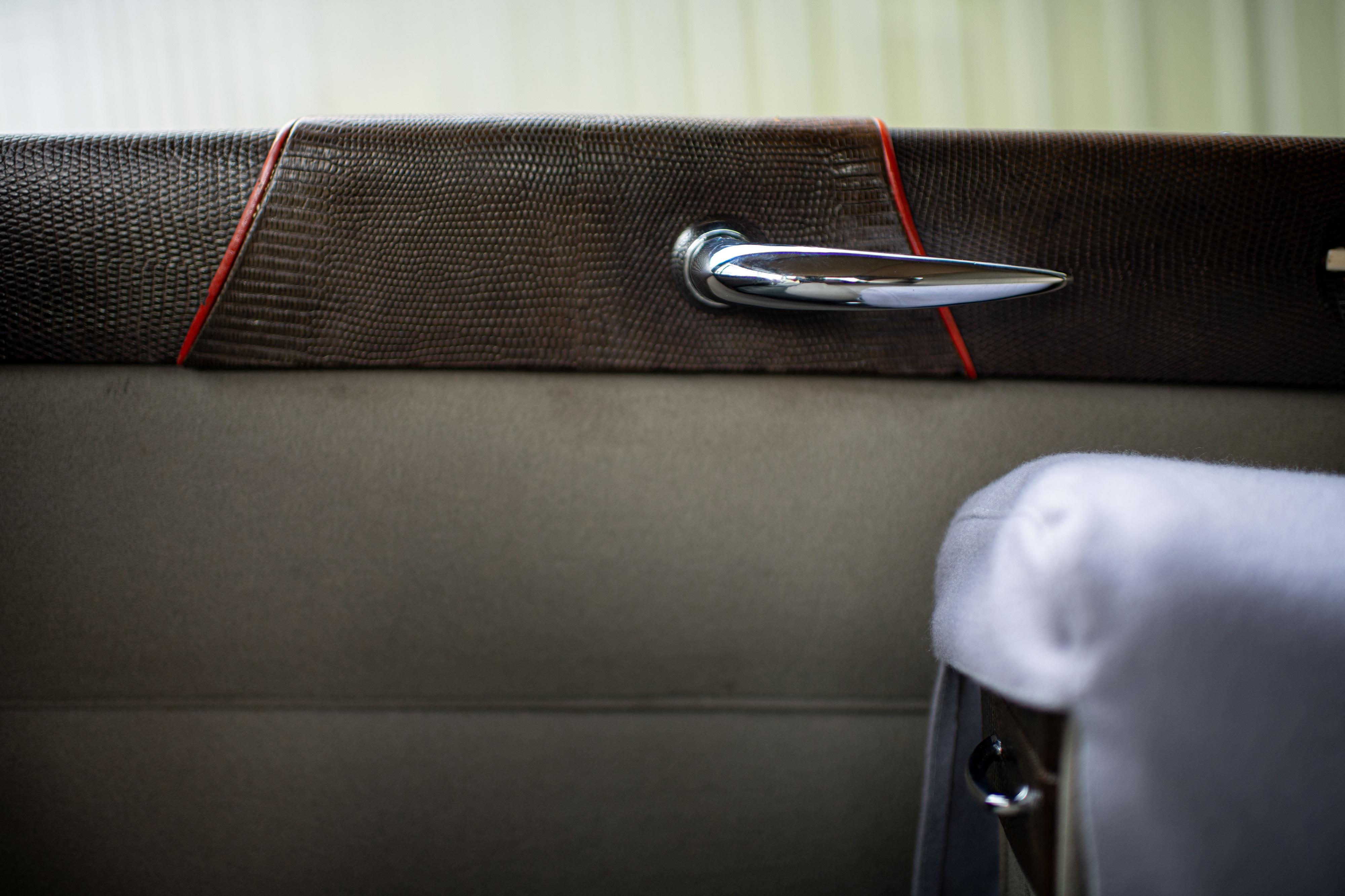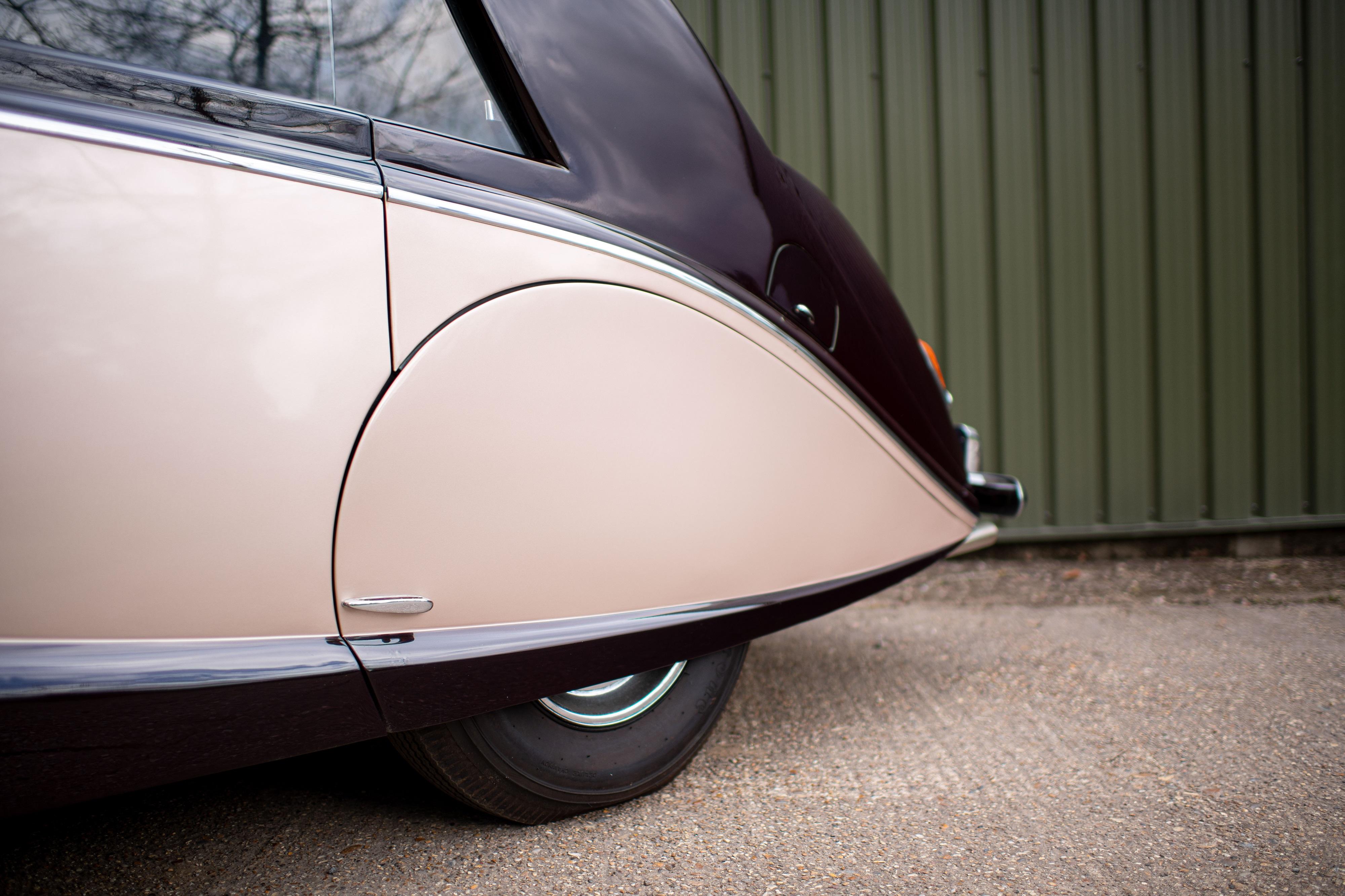 This 1953 Silver Wraith (chassis ALW 47) features a smooth 4½ litre straight-six engine and mechanical innovations such as an optional automatic transmission for the period. Its Hooper Sedanca de Ville body allowed the chauffeur's roof section to retract, creating an open-air sensation for the front compartment - a design both sophisticated and whimsical for its time. The interior is sumptuously appointed, with reclining rear seats trimmed in fine cloth, electric windows, air conditioning, and an electric division between driver and passengers. A distinctive touch is the use of exotic python snakeskin on parts of the dashboard and rear division, a signature of Gulbenkian's personal specifications.