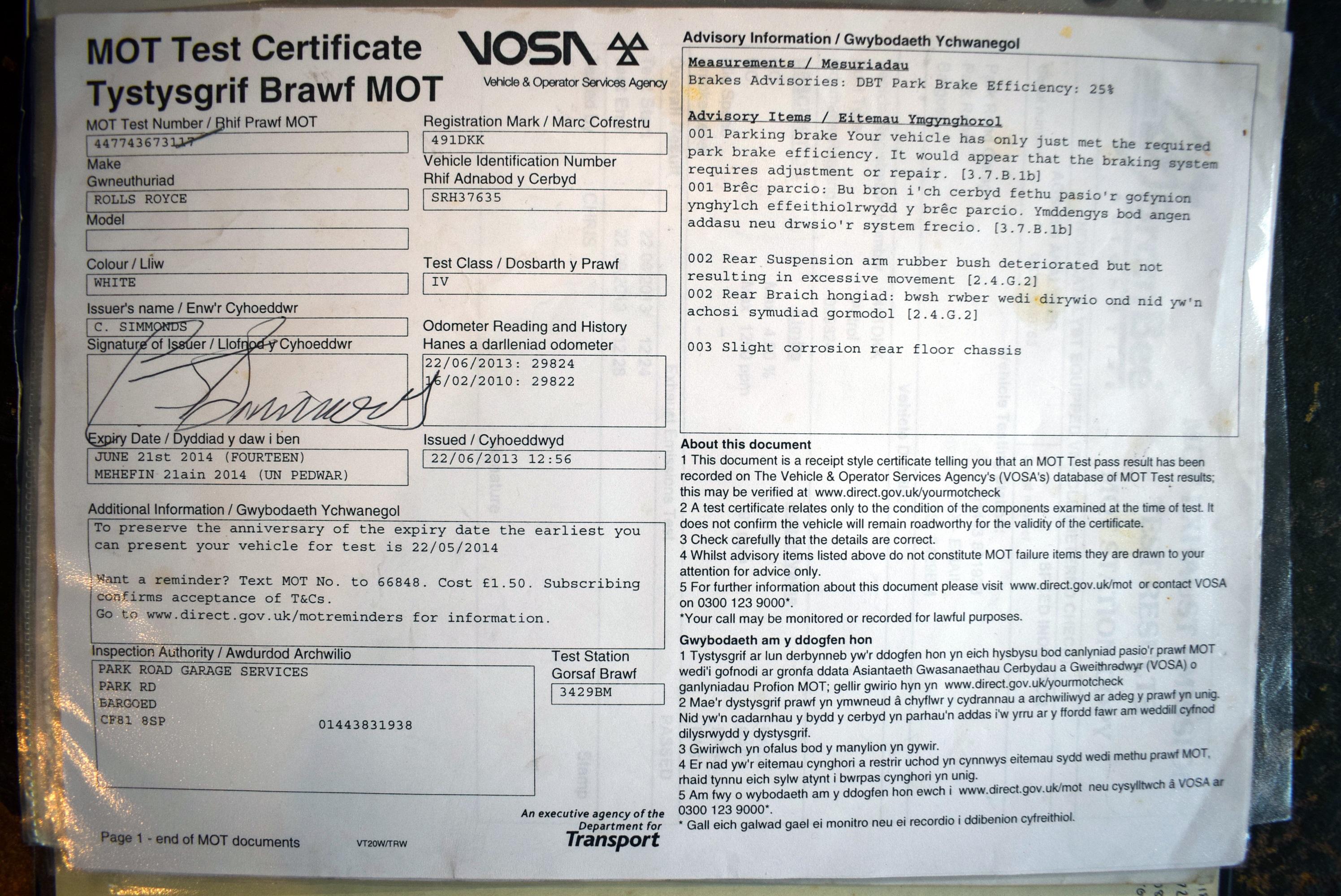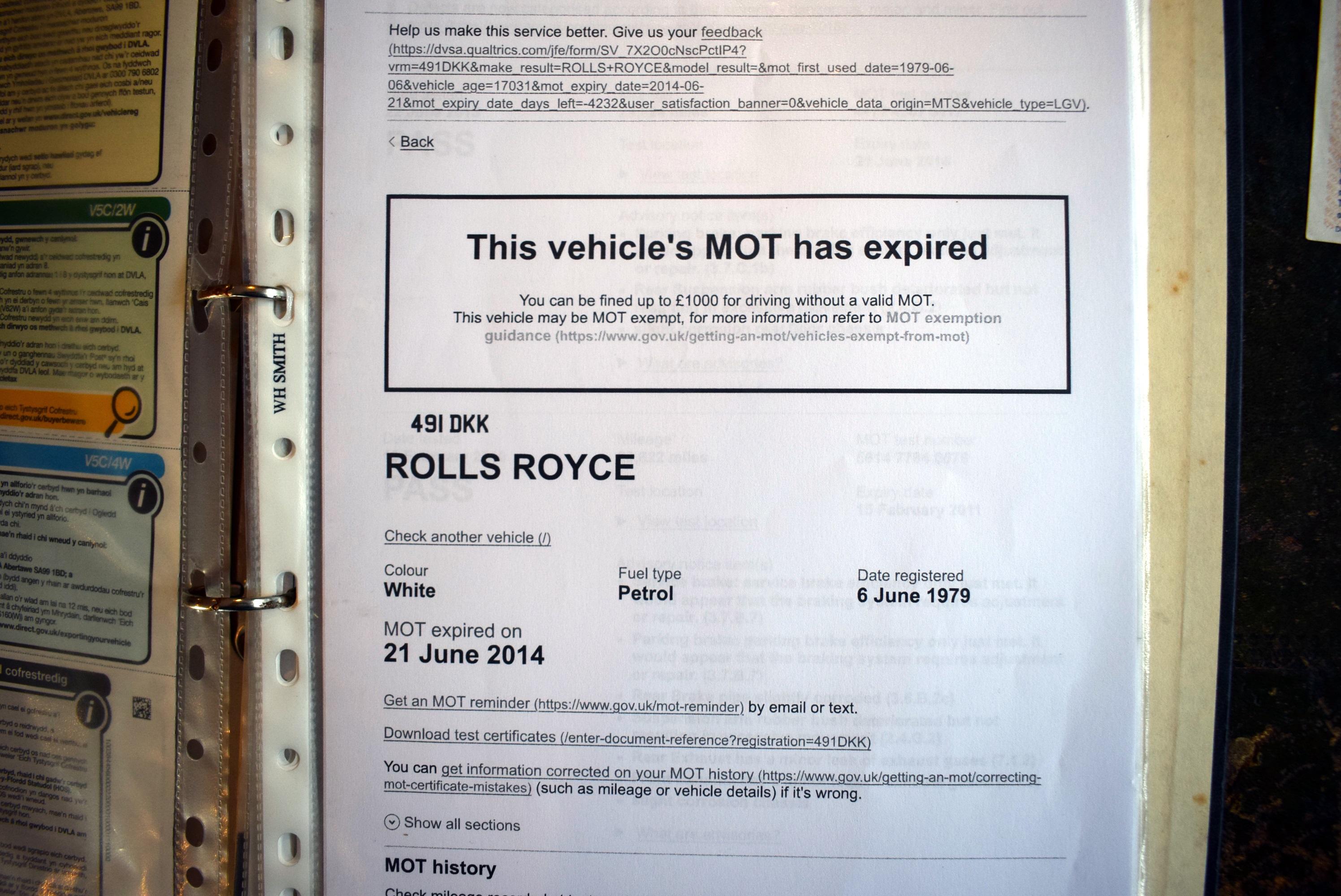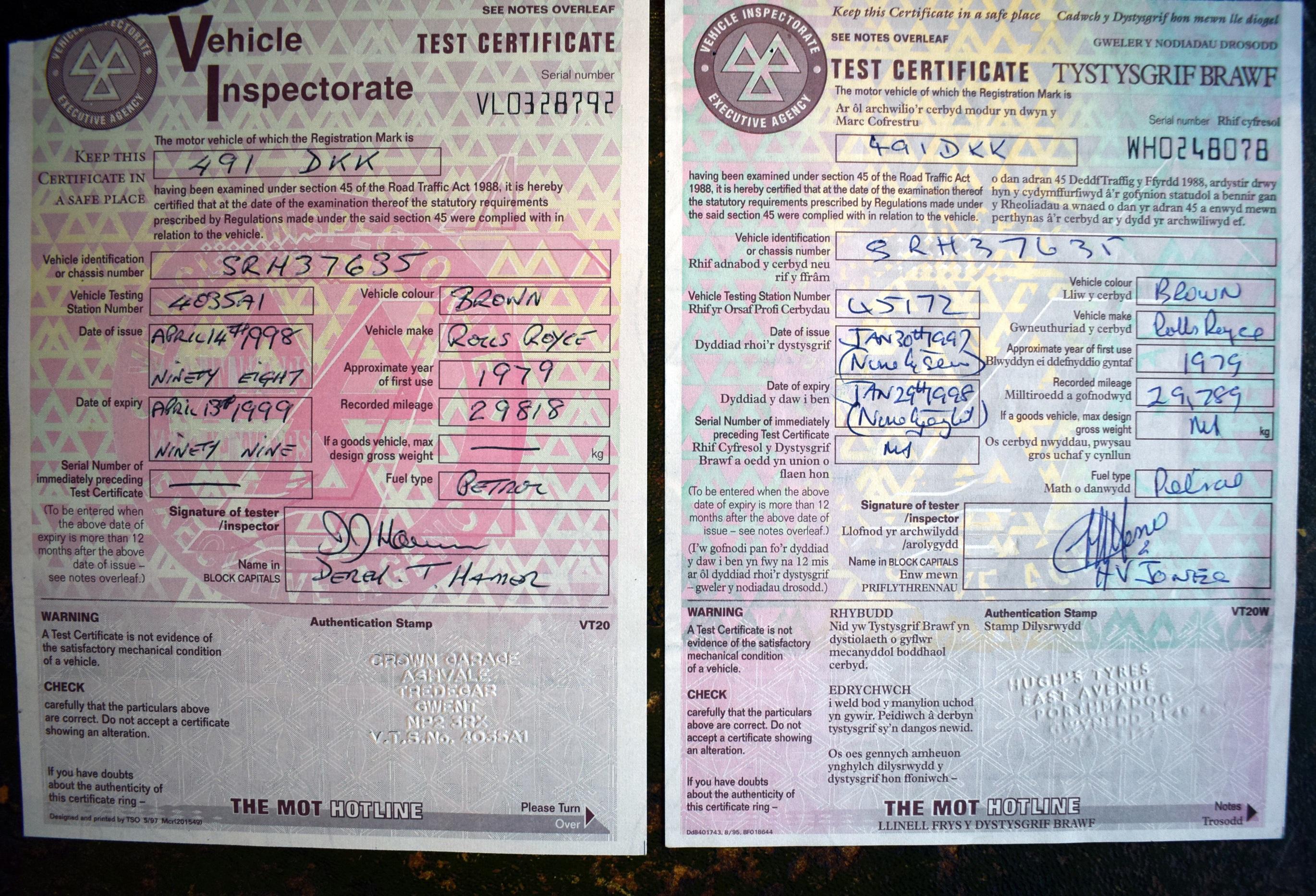 This Rolls- Royce Silver Shadow II is presented in Old English White with contrasting Oatmeal leather interior. It was first registered on 6th June 1979 with the last owner purchasing the car on 14th May 1997. He owned the vehicle for the last 29 years and the MoT history shows that it has only done 29,789 miles as of 30th January 1997 with the current mileage showing a mere 29,838 miles which means that the car has only done 49 miles in 29 years whilst in his ownership. The car was placed in heated dry storage for investment purposes and is now available from a deceased estate. We believe the vehicle had a colour change from Nutmeg to Old English White around this time but was only registered with the DVLA as a colour change on 13th September 2010, it is very hard to see that this has been done, such was the quality of the work. The car has been checked and is running well, having only done 14 miles in the last 13 years. The fuel has been drained and changed but the car will need to be fully recommissioned before being used. Its last MoT was carried out on 22nd June 2013 at 29,824 miles and comes with a copy of an old logbook which is dated 2nd June 1987 showing two of the previous owners along with old MoTs dating back from 29th July 1993 showing the mileage to be just 29,592 miles, so it has only done 246 miles in the last 33 years. It comes with some old MoTs and parts invoices. This Rolls-Royce is a bit of a time warp but does look resplendent in its gleaming Old English White. Consigned by James Good