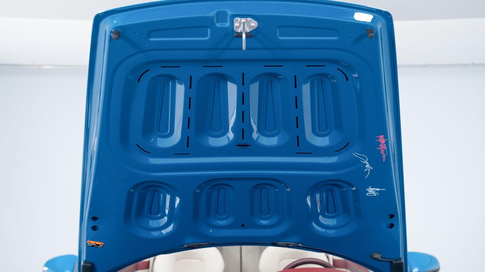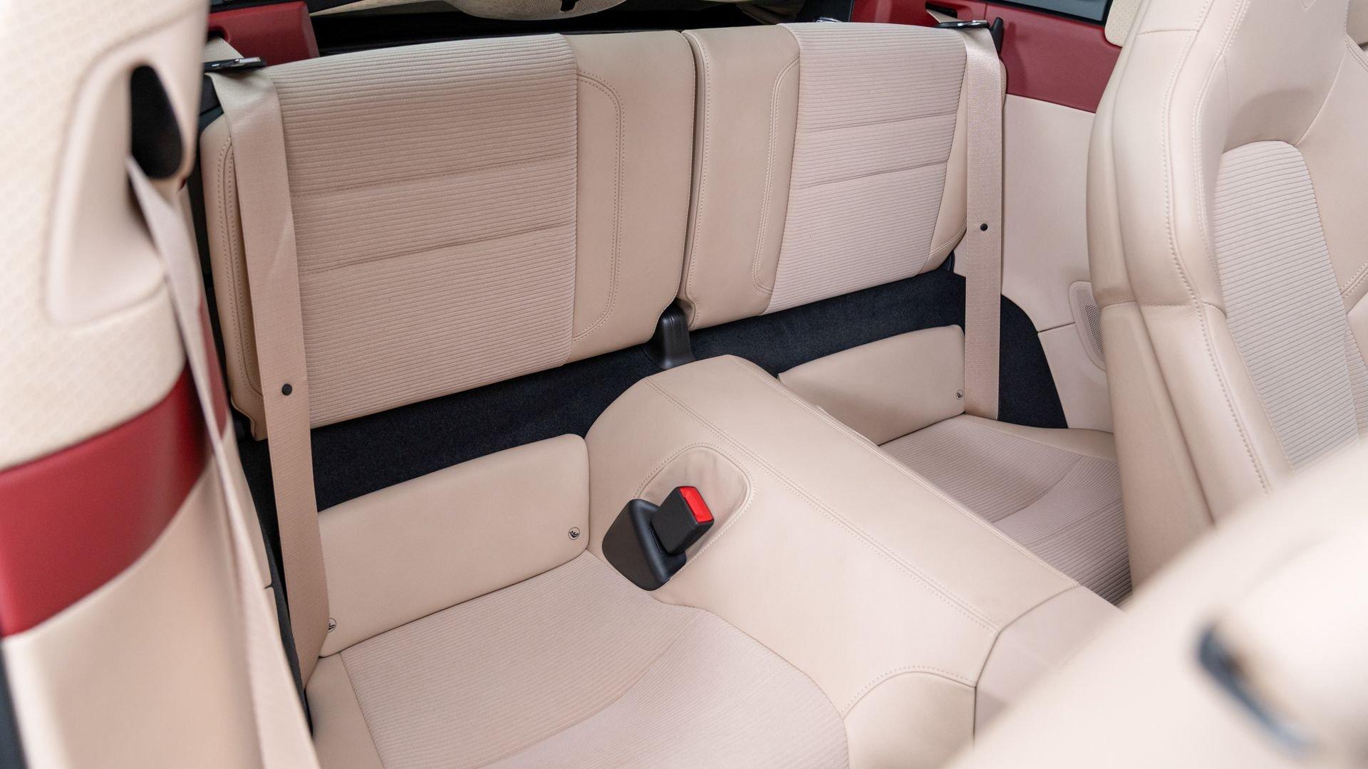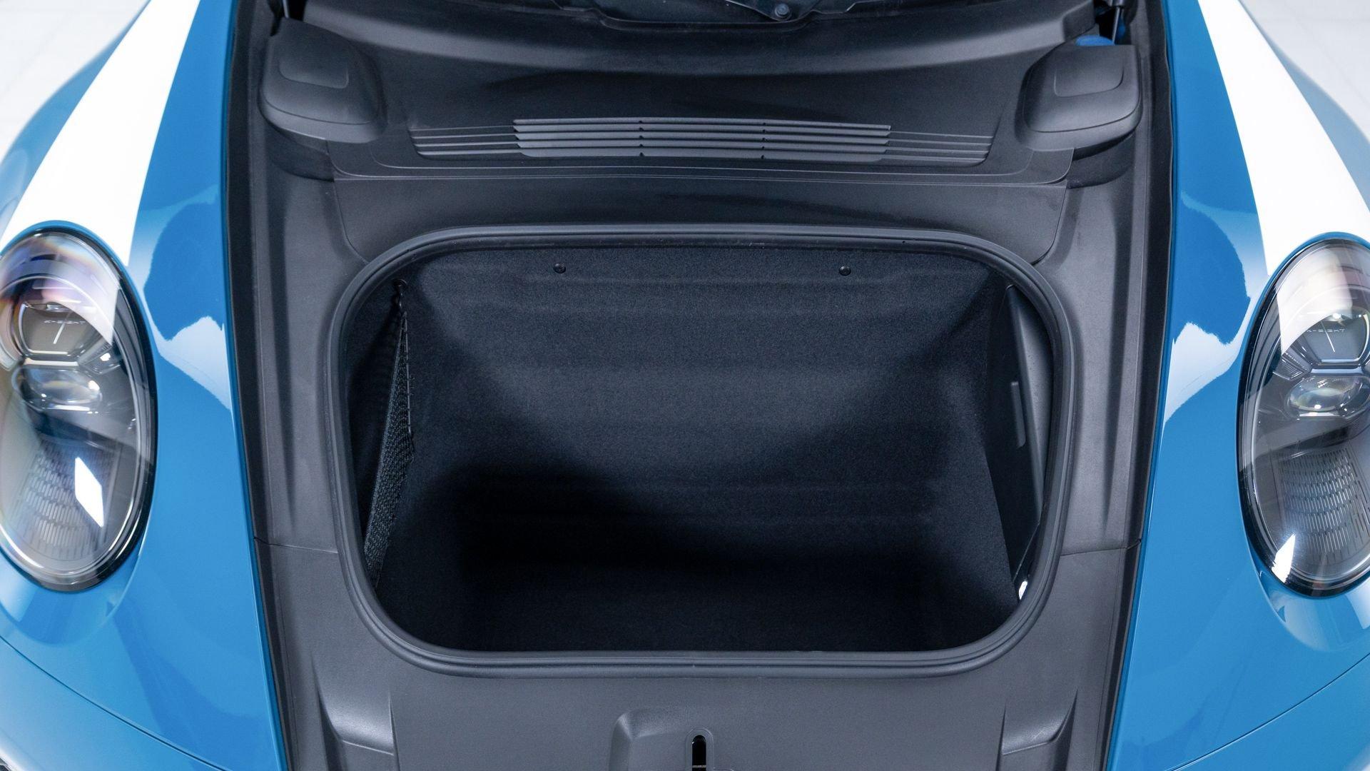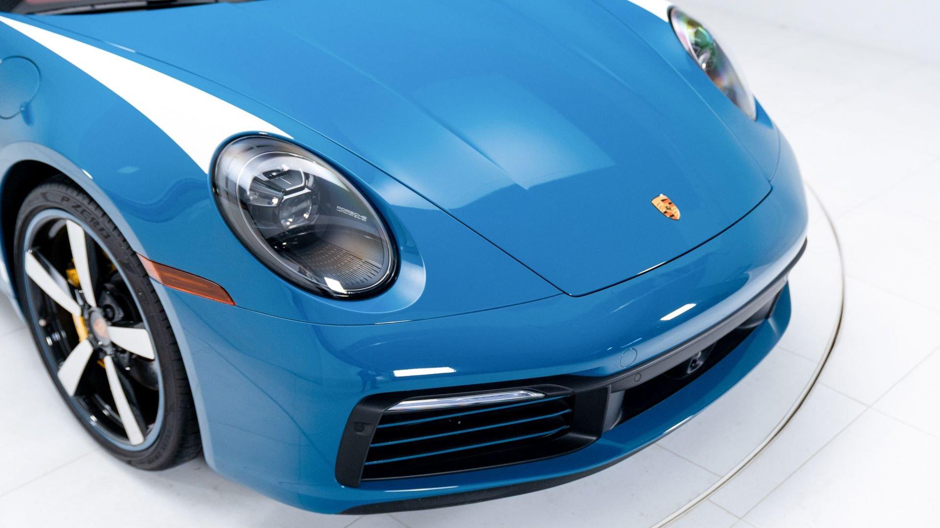 This particular 911 Targa 4S Heritage Design Edition, limitation number 625, is likely among the more custom examples of Heritage Editions to emerge from the Porsche Exclusive Manufaktur workshops. The original owner was not only fortunate enough to secure a Heritage Design allocation but a coveted Paint to Sample (PTS) slot with Porsche noting that the PTS program special requests are integral to satisfying the individual demands that are the core of Porsche. It is finished in the rarely seen historical PTS color of Oslo Blue that harkens back to the 356 B-era of 1962 and 1963. The shade suits the historical nature of the model with aplomb. Porsche describes the interior, here selected in two-tone Bordeaux Red/Atacama Beige OLEA club leather as “Expressive and harmonious and above all timeless.” Furthermore, corduroy fabric makes a return to the interior of the 911, used on the door panels and the seat centers.