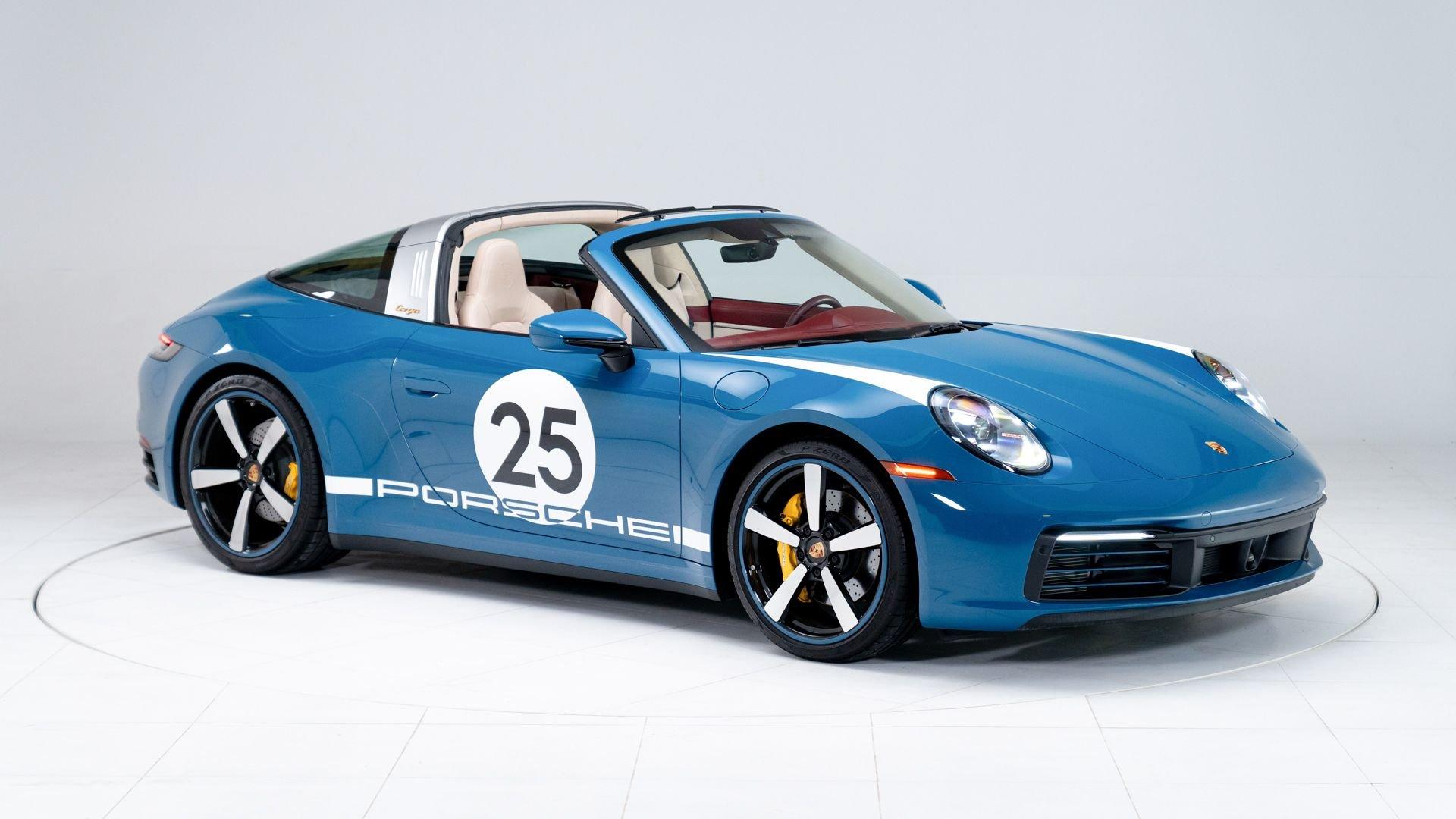 When Porsche launched its Heritage Design Edition series, it set out to reinterpret the brand's most evocative styling cues from the 1950s through the 1970s for a new generation of enthusiasts. Three limited-production models followed-the 911 Targa 4S, 911 Sport Classic, and 911 Spirit 70-with the 2021 911 Targa 4S Heritage Design Edition debuting first as a celebration of Porsche's formative decades. Built by Porsche Exclusive Manufaktur and limited to 992 units, it combined historic finishes, gold logos, white livery, spear-shaped fender graphics, Heritage badging, and the vintage orange bar crest. Inside, Bordeaux Red or Black leather with Atacama Beige corduroy inserts, green-lit gauges, and a numbered plaque complemented a 443-horsepower twin-turbo flat-six and modern 992 performance.