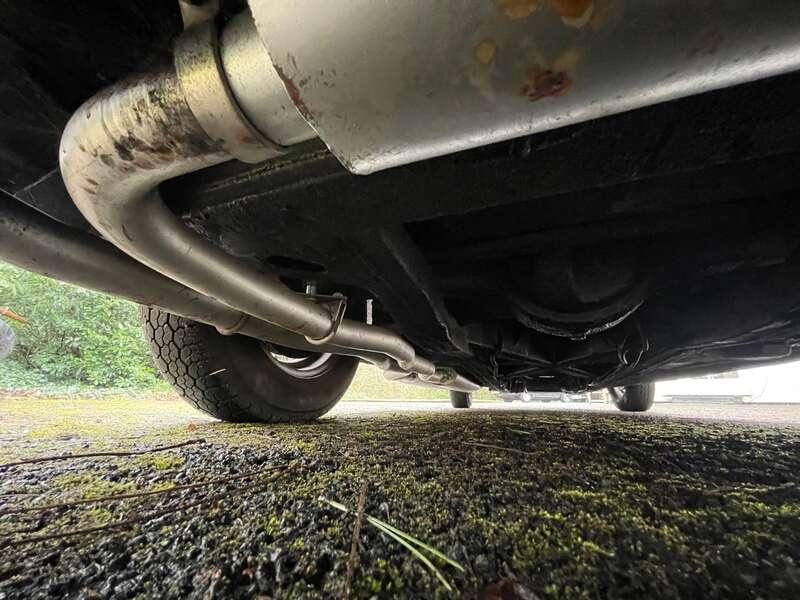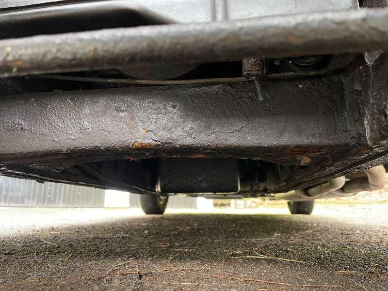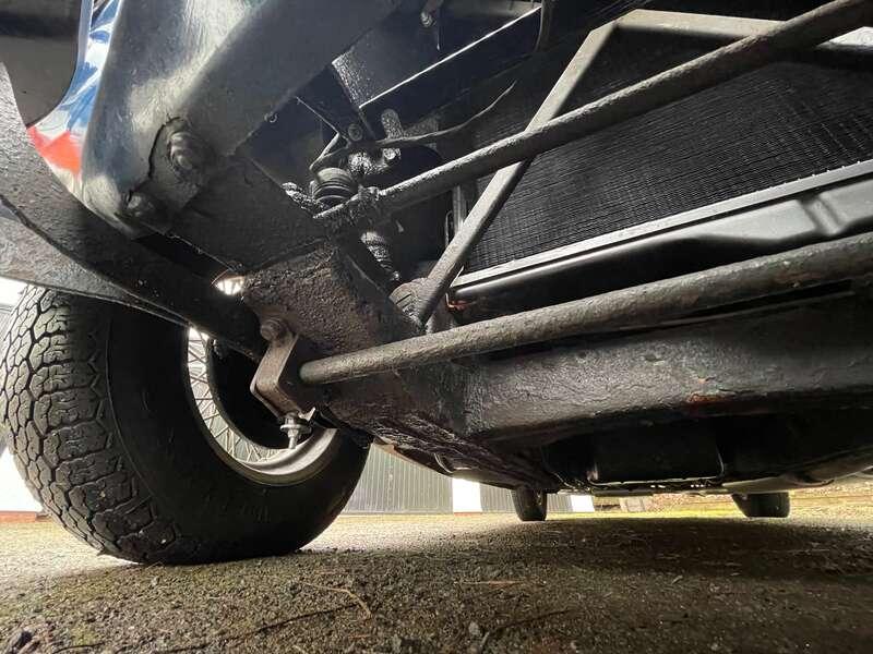 Mechanically, the car is described as well maintained but honest. Noted points include a sump oil leak, sticking fuel gauge, inoperative glovebox latch, and a disconnected radio aerial. Overdrive operates on third and fourth gears. New trunnions were fitted approximately 15 years ago, and the car has been regularly serviced, most recently by a local garage who have maintained the vehicle for many years. The current MOT is valid until 10th March 2026 and was issued with No Advisories.