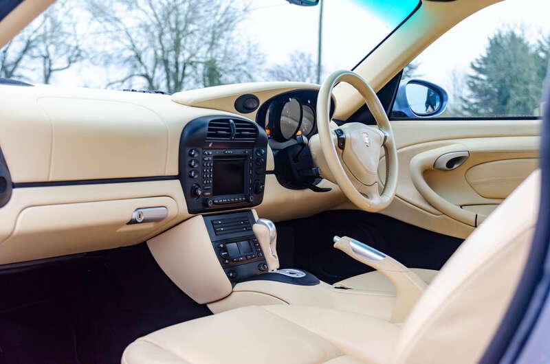This very special Porsche 996 4S has the build code 09991 (Special Wishes Program). Code 09991 meant bespoke customisation, unique parts and touches that indicated a collector-grade custom build. It was also a general 'catch-all’ for Porsche Exclusive Manfaktur options, usually exclusive to 996 Turbo or GTS models. The stunning combination of these special wishes and the Horizon Blue Metallic paint finish is unique to this Porsche together with a host of custom features. The immaculate cream leather interior has above standard heated electric memory seats, thicker leather trimmed steering wheel, leather centre console, aluminium Tiptronic selector lever, stainless steel door entry guards with Carrera logo, handbrake lever with aluminium inlay, anti-dazzle interior and door mirrors, headlamp wash, rear window wiper, Tiptronic steering wheel buttons, roof antenna and auto speed control. The head lining is black Alcantara with leather. The ICE is updated with phone function and the unique paint code proclaiming the special wishes colour Horizonblaumetallic remains in place.