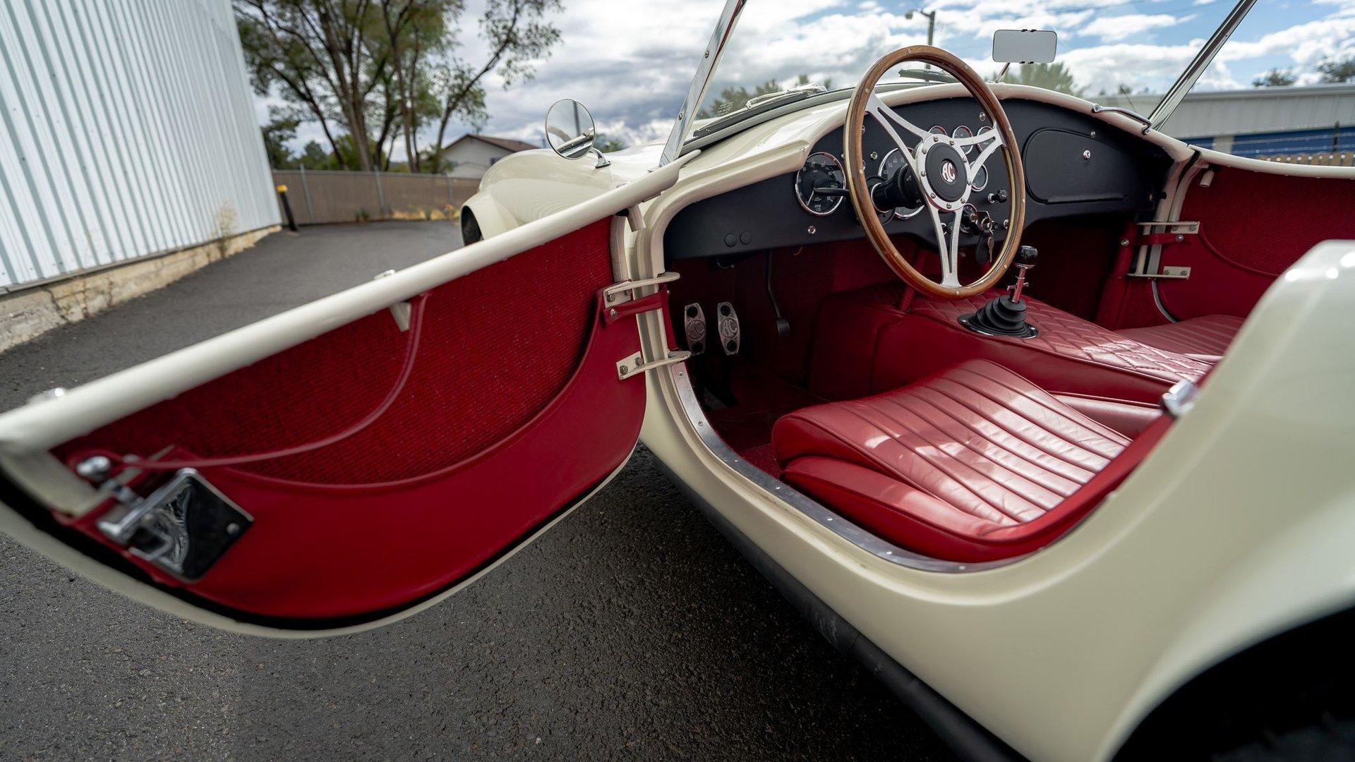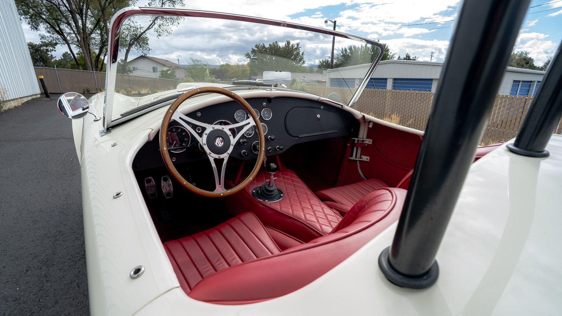 Drivers after a machine suitable for high-performance driving will find some appreciable upgrades underneath, like four-wheel disc brakes including an inboard setup out back, rack-and-pinion steering, and dual coil-overs at the rear. The Ace is additionally offered with a set of 15-inch Halibrand “kidney-bean” style alloy wheels, which, when installed, give off “Competition Cobra” vibes.