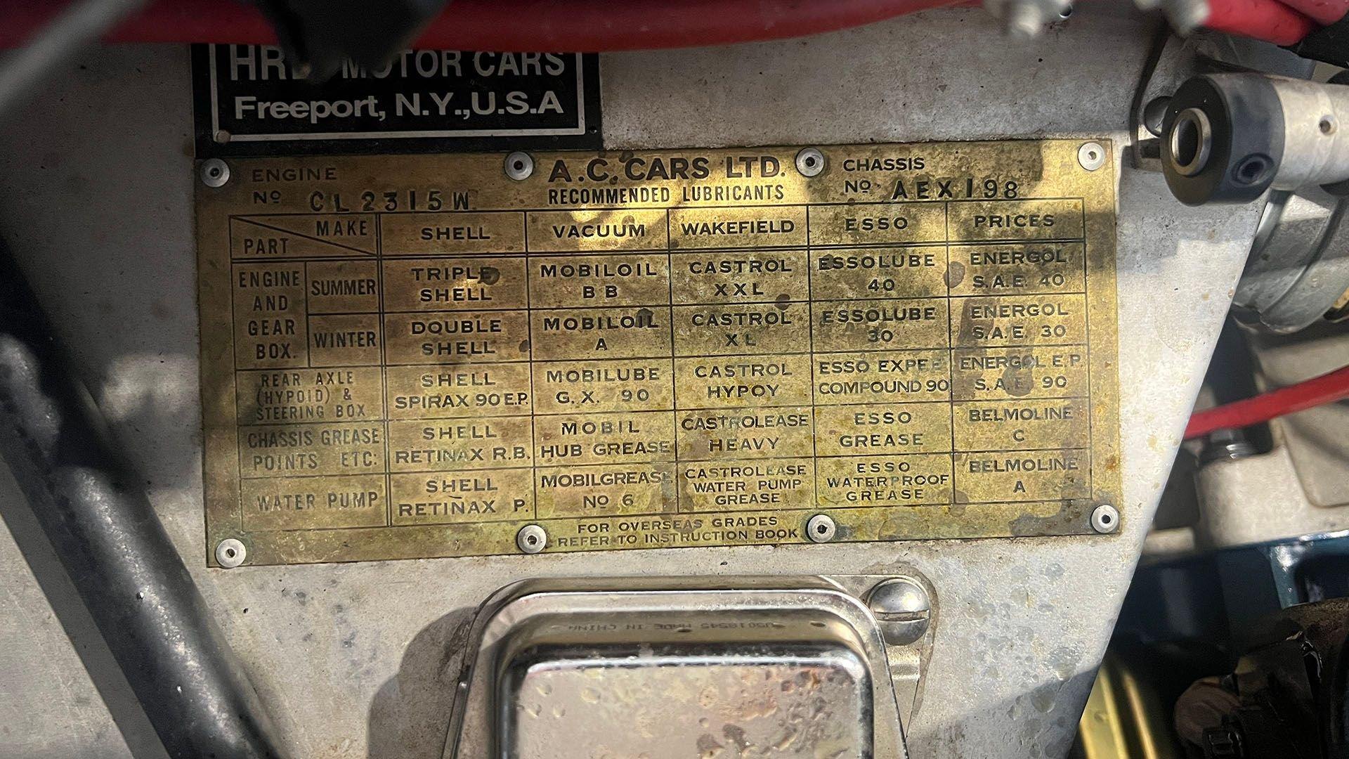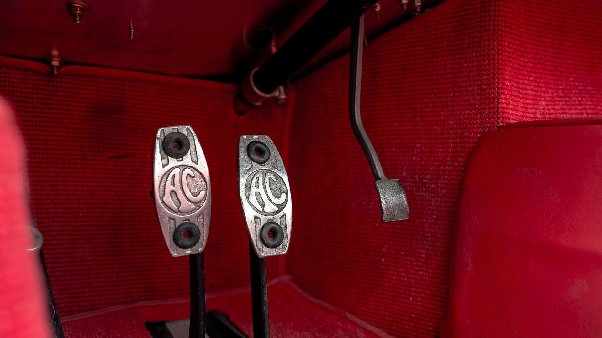 This factory left-hand drive AC Ace is reported to have been delivered to an American buyer in suburban Washington, D.C., in 1956. In place of its original six-cylinder engine, it is equipped today with the kind of power that Shelby himself would have appreciated: a 289 cubic-inch V8. A four-speed Borg-Warner T-10 hustles power rearward via a Dana 44 axle to complete a proper American-British sports car. It is believed that its Cobra-style modifications were adopted early in its life, probably during the 1960s.