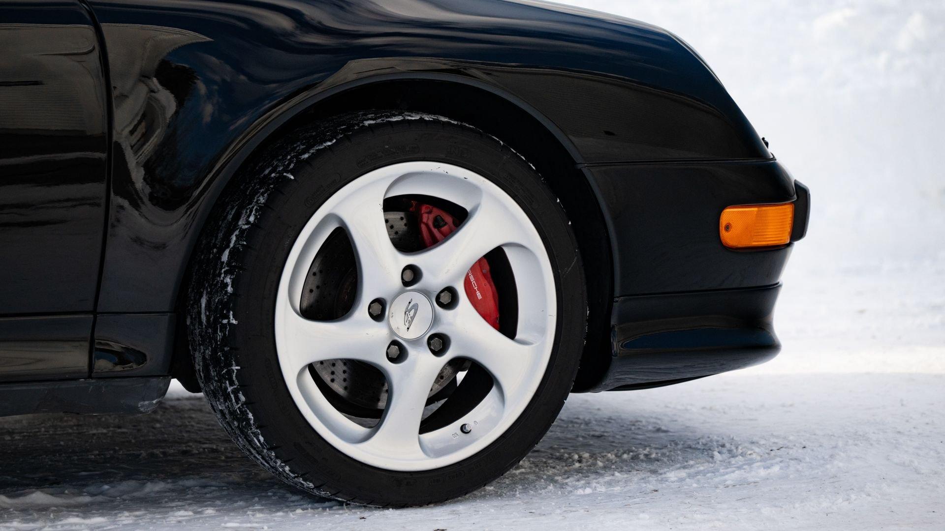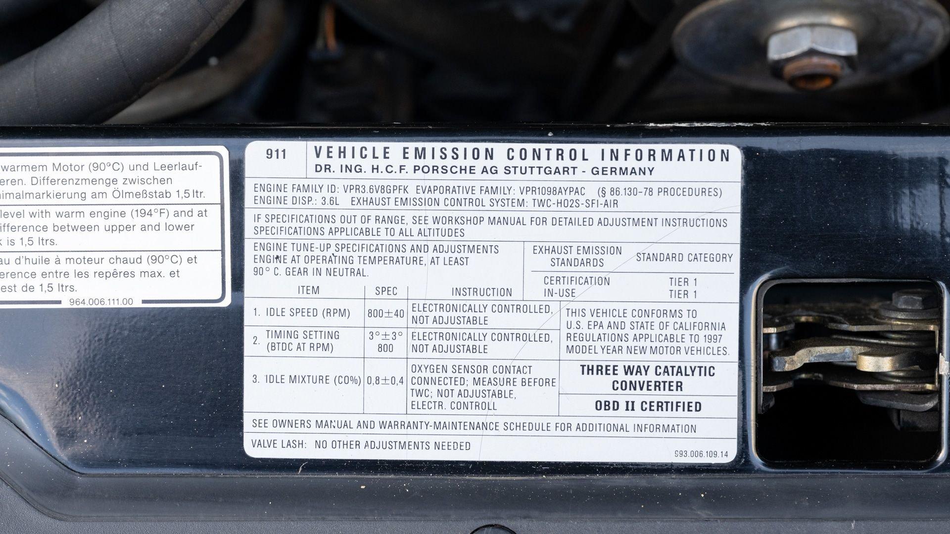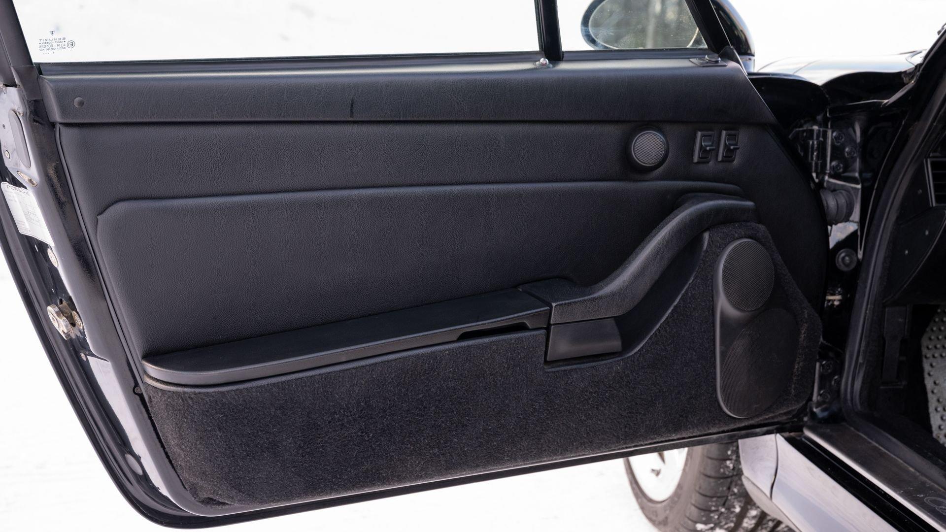 Manufactured as U.S. market example on 14 November 1996, this 911 Carrera 4S is finished in its factory configuration of Black over a Black partial leather interior, desirable six-speed manual transmission, and limited-slip differential. Highlights include Aerokit front and rear spoilers (XD1 and XD2) which together form the coveted “Aero II” aerodynamics package. Additional sought-after options include aluminum instrument dials, motor sound package, aluminum and leather combination shifter and hand brake levers, and 10 speaker hi-fidelity sound package.