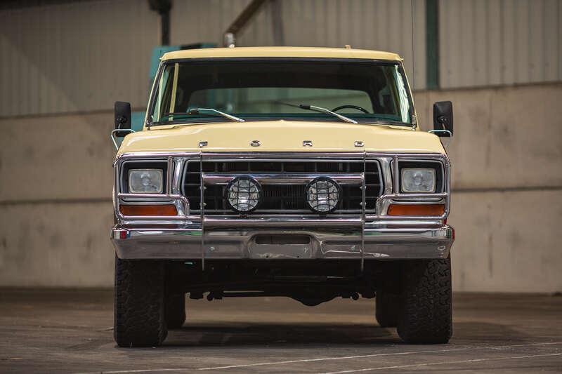 Under the bonnet, the Bronco is powered by a 351ci (5.8-litre) V8, paired with a stalk-operated three-speed Cruise-O-Matic automatic transmission, with a dual-range transfer case providing four-wheel drive. The combination of smooth V8 power, robust drivetrain, and capable 4WD makes it as enjoyable on roads as it is off the beaten track.