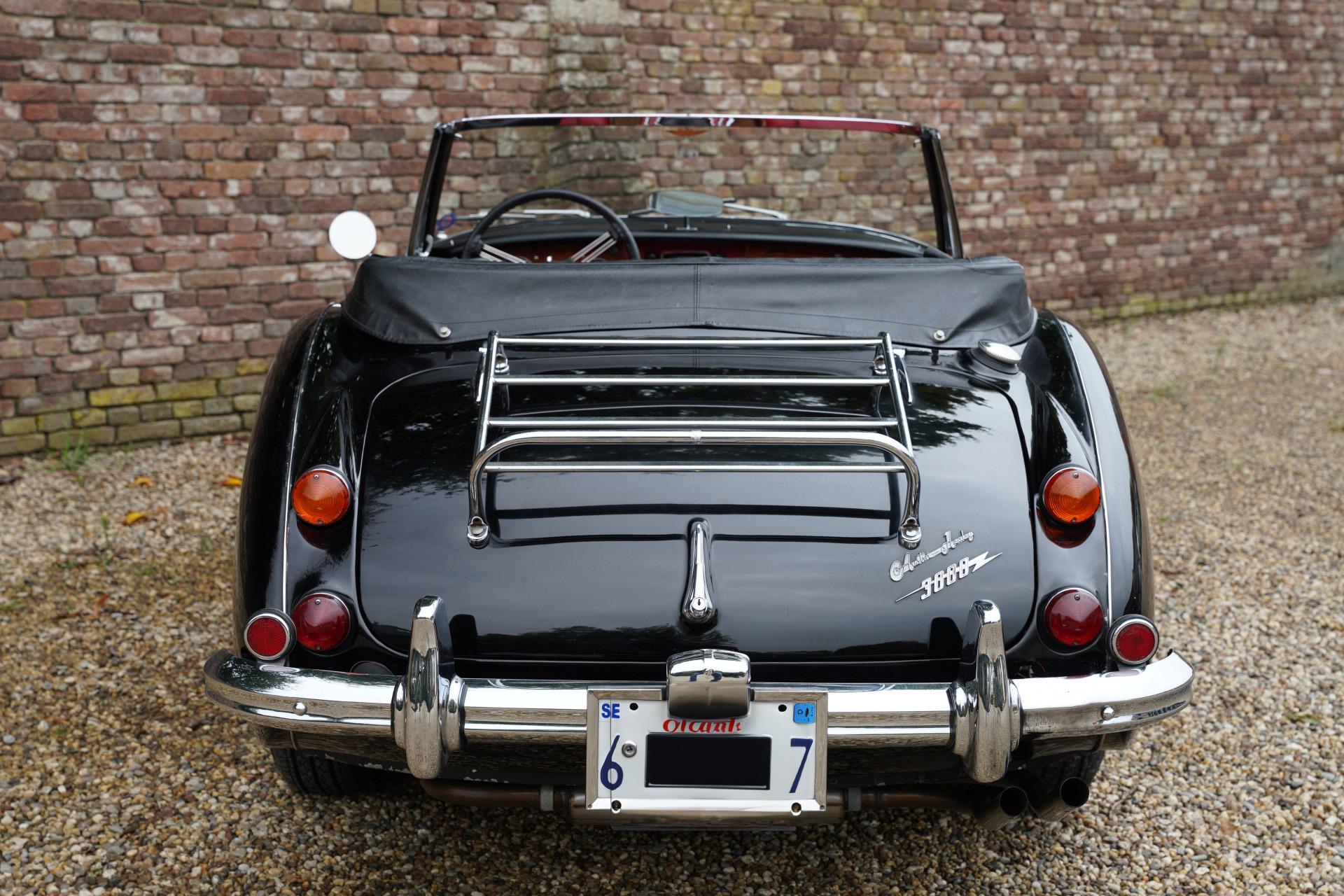 The Big Healey you see here was ready at the dealer in Greensboro, North Carolina, on August 25, 1967, when the first owner, John Newman, came to pick it up. The first owner ordered the car in black with red leather, exactly as it is today. Newman undoubtedly enjoyed driving with the biggest smile on his face as he emptied the first tank of his 3000 that day, and he didn't part with his car for a long time. Newman not only kept everything with his car, such as the purchase contract, the service booklet, the hardcover instruction booklet, and the keys and delivery card, but he was also very careful with his pride and joy.
