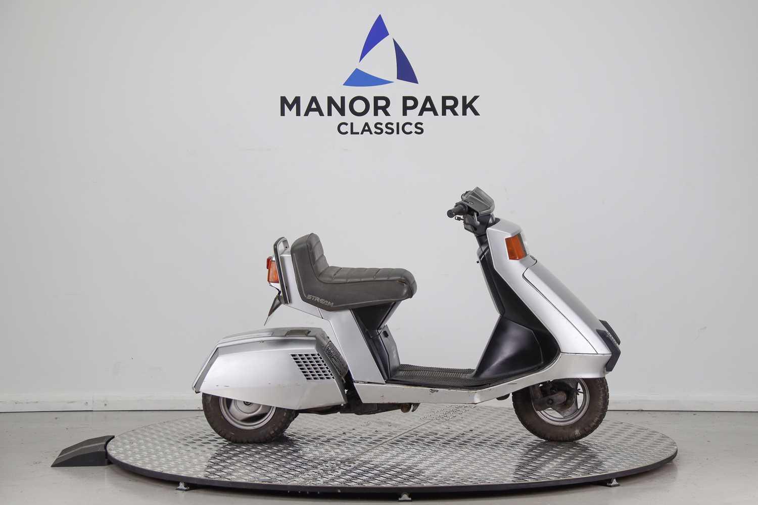 The Honda NV50 Stream is a 3-wheeled moped launched in November 1981, designed with a unique 'tilting' mechanism where the front body leans into turns while the dual rear wheels remain stable. Powered by a 50cc engine, it was a short-lived, quirky, and commercially unsuccessful 3-wheeler intended for personal transportation. It was developed from the BSA Aerial 3, with Honda purchasing the rights to the design.
