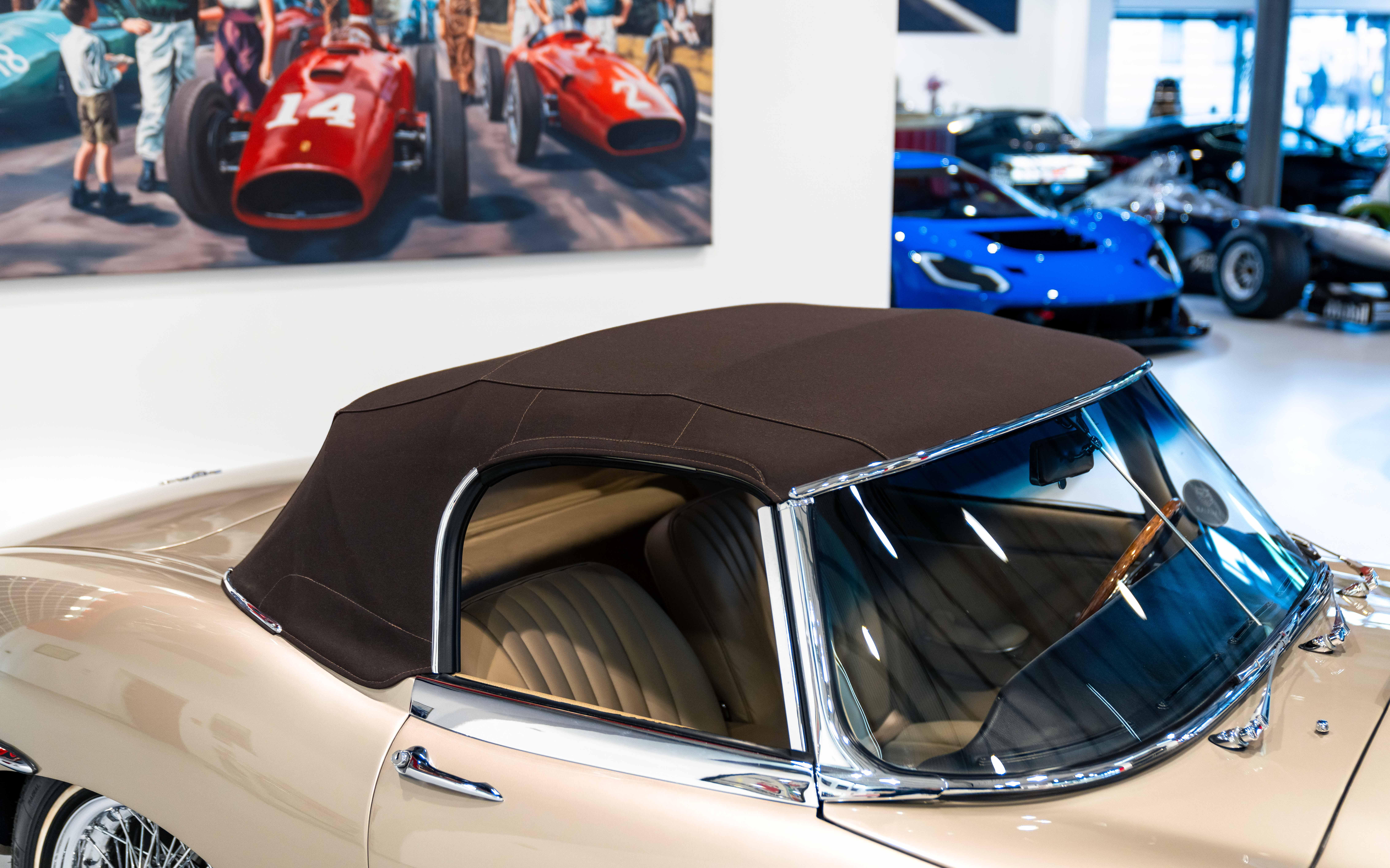 This exceptional example has been in the care of its current owner since 2016 and benefits from a comprehensive, no-expense-spared restoration completed between 2017 and 2021 by renowned marque specialists. During this process, the car received a full bare-metal respray in its factory-correct Opalescent Golden Sand, beautifully complemented by a complete interior retrim in original specification Beige leather. A new brown canvas hood and matching tonneau cover were also fitted.