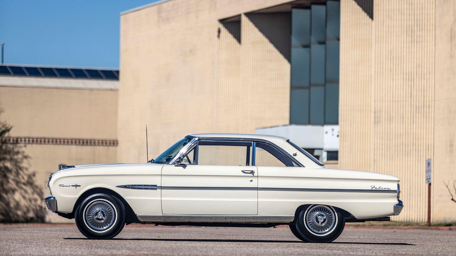 Ford created quite the sensation at the fearsome 1963 Monte Carlo Rally when the Swedish team of Bo Ljungfeldt and Gunnar Häggbom became the first to win all six special stages whilst piloting a Falcon powered by a 260 cu-in V8. It proved itself in the world's fastest company by dashing through 2,600 miles of snow, freezing fog, and glare ice on zig zagging Alpine grades. Halfway through the model year, the Falcon became a boisterous performance car, with the 260 V8 being added to its option sheet for the first time, to create what Ford described as the “Super Torque Ford Sports Hard Top.”