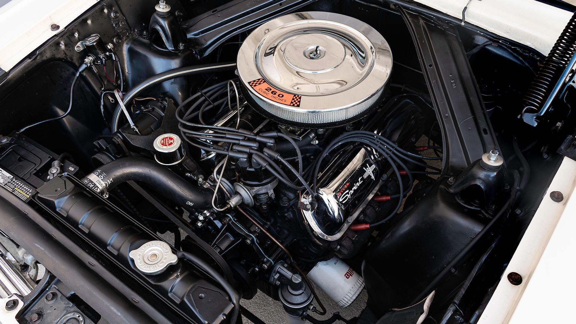 Its original build sheet shows that this Falcon was assembled at the San Jose, California, assembly plant on 17 June 1963, which Ford referred to as the 1963 ½ Sprint V8. Finished in Corinthian White with a Red Crush Vinyl interior, this Sprint was powered by the 260 cu-in “Challenger” V8, mated to the optional four-speed manual transmission. The Sprint trim also included front bucket seats, a sports-type steering wheel, chrome engine accessories, and a sports tachometer as standard equipment.