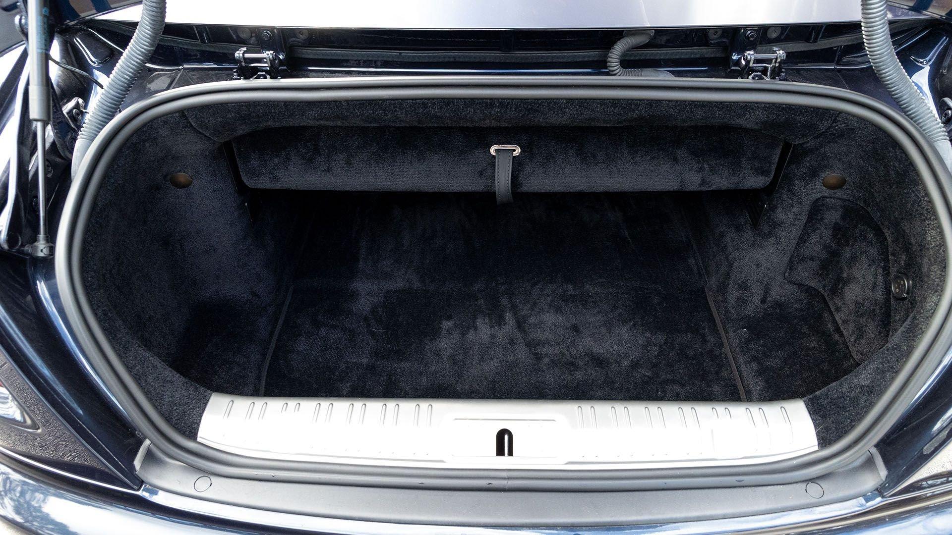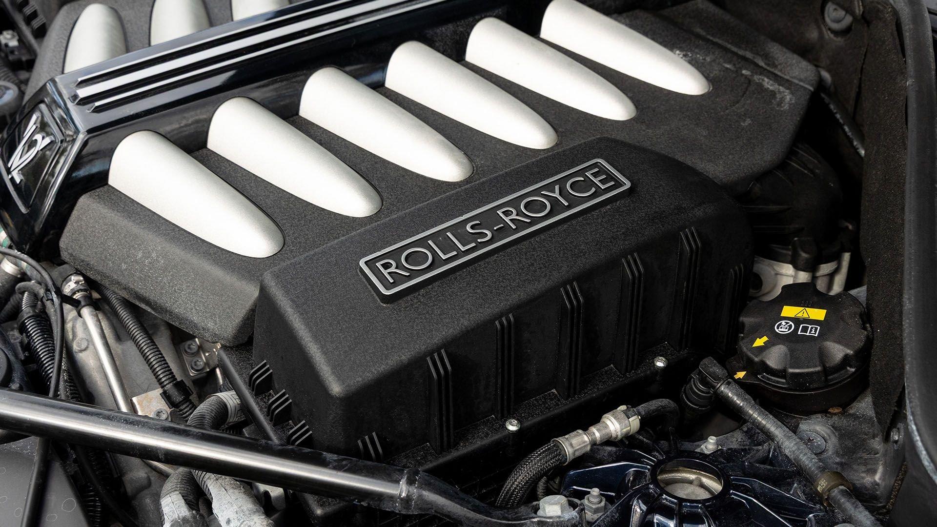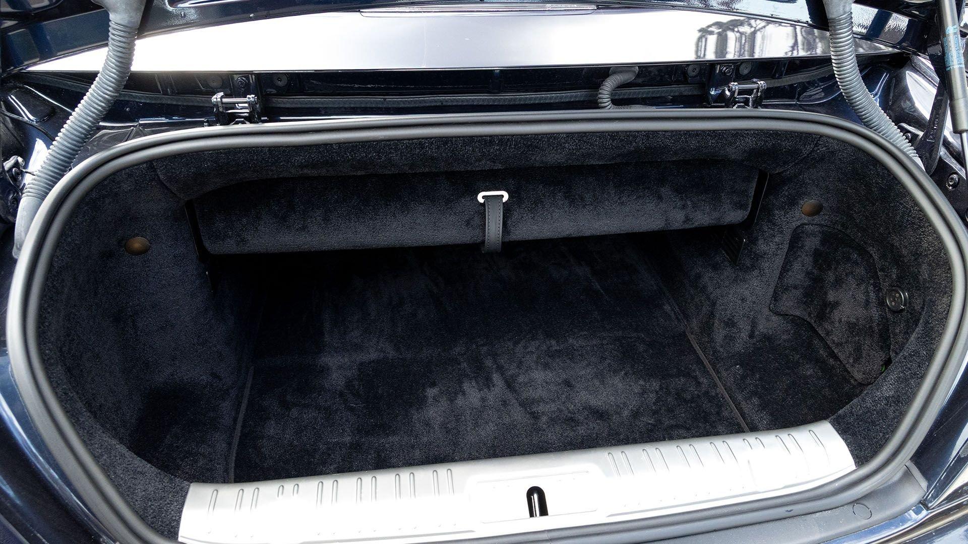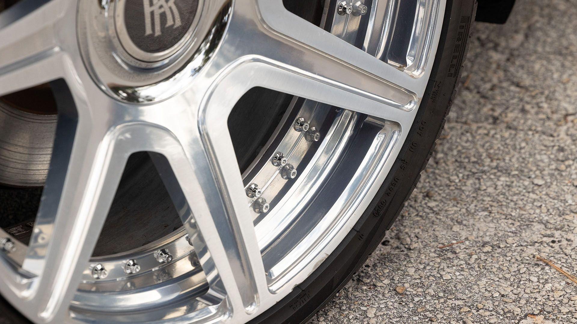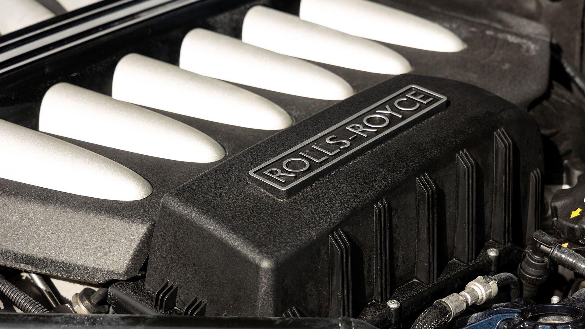 Per a copy of its window sticker, this striking Dawn was finished in Midnight Sapphire accented by a twin Mandarin coachline and originally specified with optional 21-inch Seven-Spoke Part Polished Wheels. Today, it sits on aftermarket 22-inch, seven-spoke wheels and a lowered suspension setup, lending a noticeably more aggressive stance than factory. The sumptuous Mandarin leather cabin was elevated by Bespoke Interior “Module Editing,” lambswool floormats, front ventilated seats, Navy Blue RR monograms embroidered to all headrests, matching Navy Blue seat piping, and a Navy Blue colored steering wheel. With the top lowered, a teak rear deck treatment added a yacht-like finishing touch aft of the cabin. Driver Assistance 3 completed the specification with Active Cruise Control with Stop & Go, a Head-Up Display, Night Vision with Pedestrian Recognition, High-Beam Assistance, and Lane Departure Warning. Both factory umbrellas remain stored in the doors, ready for unexpected weather.