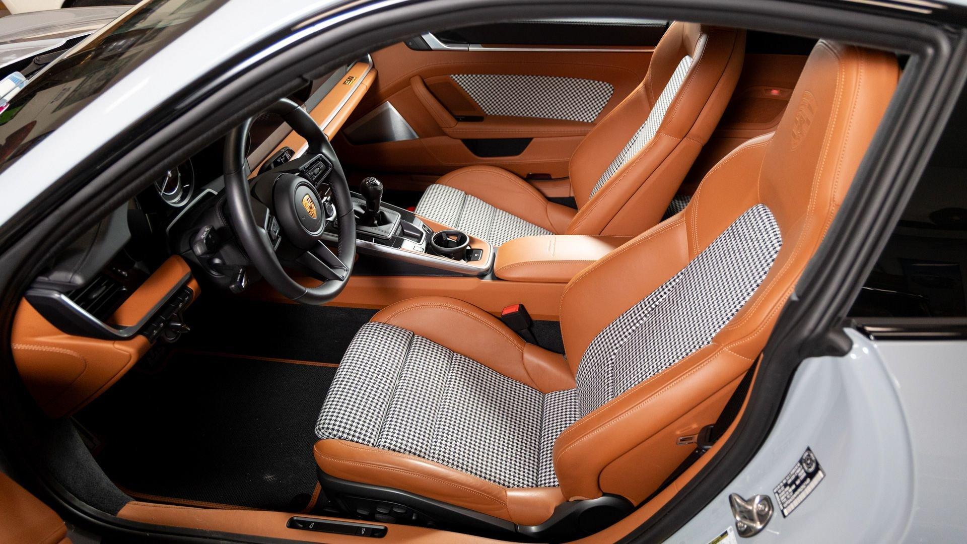 Just one of 1,250 992-generation 911 Sport Classics built worldwide, this magnificent example, limitation number 0530, is appropriately finished in the official Communication Color of Sport Grey Metallic inspired by the early Pre-A Porsche 356's Fashion Grey. Its interior is trimmed in Heritage Design interior Black and Classic Cognac leather interior with Pepita houndstooth seat inserts. This specially considered interior treatment is a visual treat especially when combined with optional Burmester High-End Surround Sound System, Inner Door-Sill Guards in Leather, Interior Trim Inlays in Leather, and Ambient Lighting options as this example features. Additional cost technical options include Power Steering Plus, Lane Change Assist (LCA), Night Vision Assist, Surround View, Lane Keep Assist (LKA) and Preparation for Porsche Dashcam with a full accounting of the build recorded on its VIN Analytics Report on file and available for review.