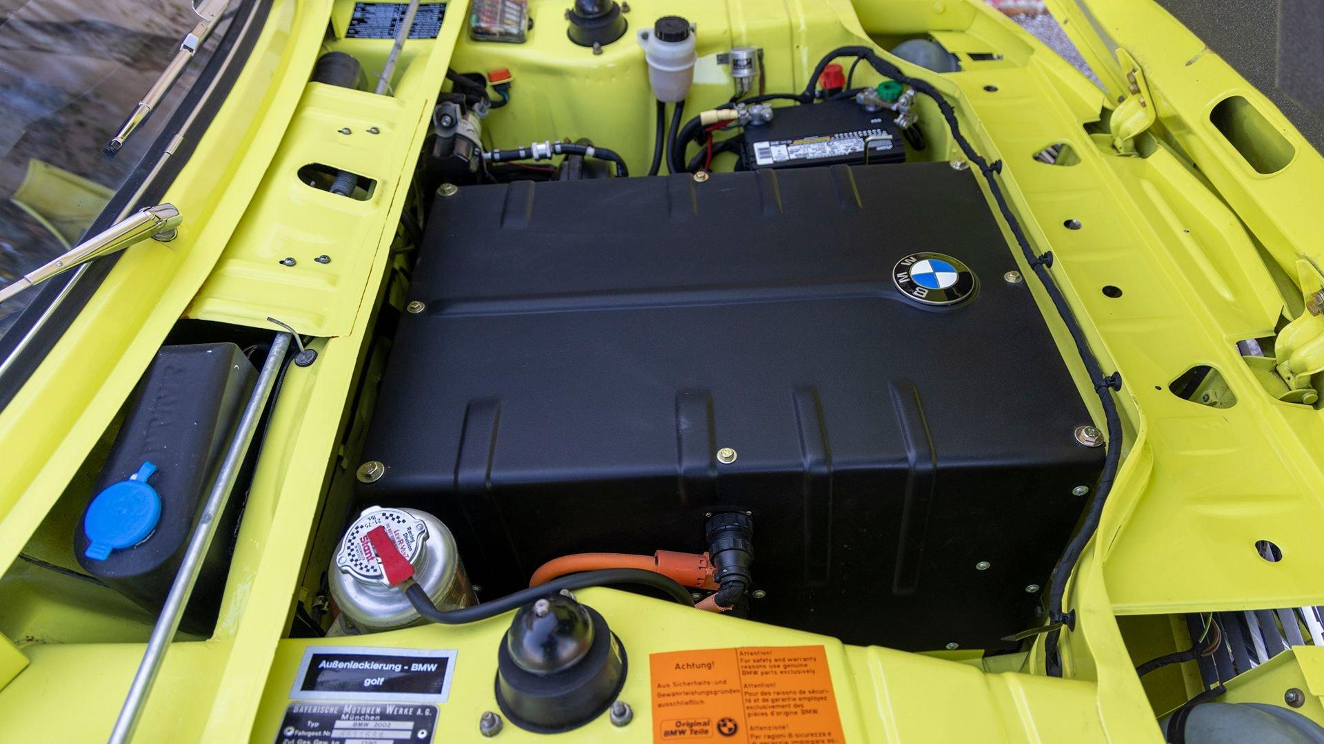 Bavarian Econs elected to preserve the specification of their low-mileage donor car, leaving the paint in its original condition except for the hood, trunk, and passenger-side rear fender-which was subtly repainted to accommodate the charging port concealed behind a mock fuel cap. Other cleverly hidden upgrades include custom 2002-style gauges that show battery information and a hidden Bluetooth stereo and subwoofer under the dash that connect to eight Helix speakers. Further appointments include vintage-style fixed-back sports seats, air conditioning, and a Momo Prototipo steering wheel. Hella driving lights and 13-inch Alpina wheels shod in Michelin XDX-B radial tires complete the 2002te's period-appropriate enhancements.