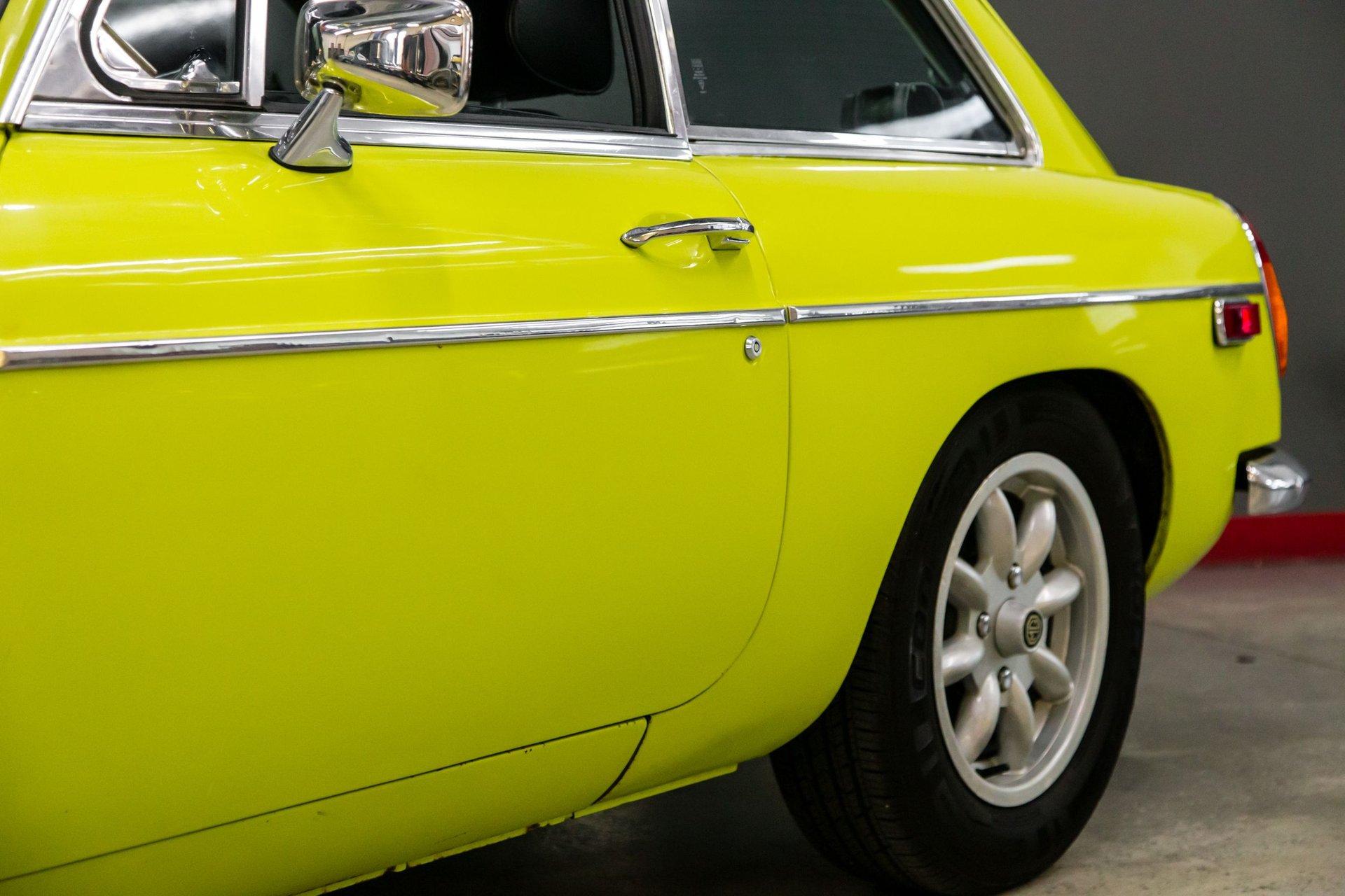 Do you find yourself sitting at stoplights and every vehicle in the intersection is silver/white/or gray ? This was not always the case and in the MG world of the 70s they brought us all shades of brilliant colors. This is one of those bright colors ,it is called Citron this is the original color to this OVERDRIVE example of an MGB GT.