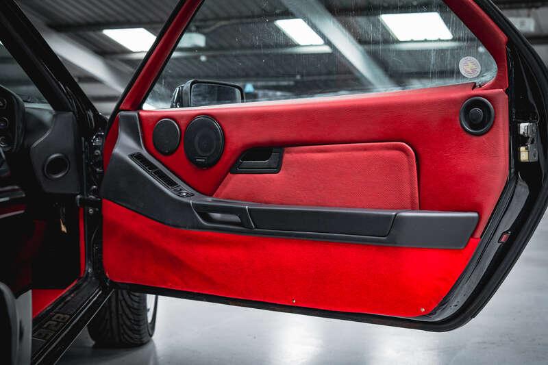 - It's finished in Schwarz with a Can-Can Red leather interior featuring black piping, matching red carpets and door cards, with a contrasting black dashboard and centre console