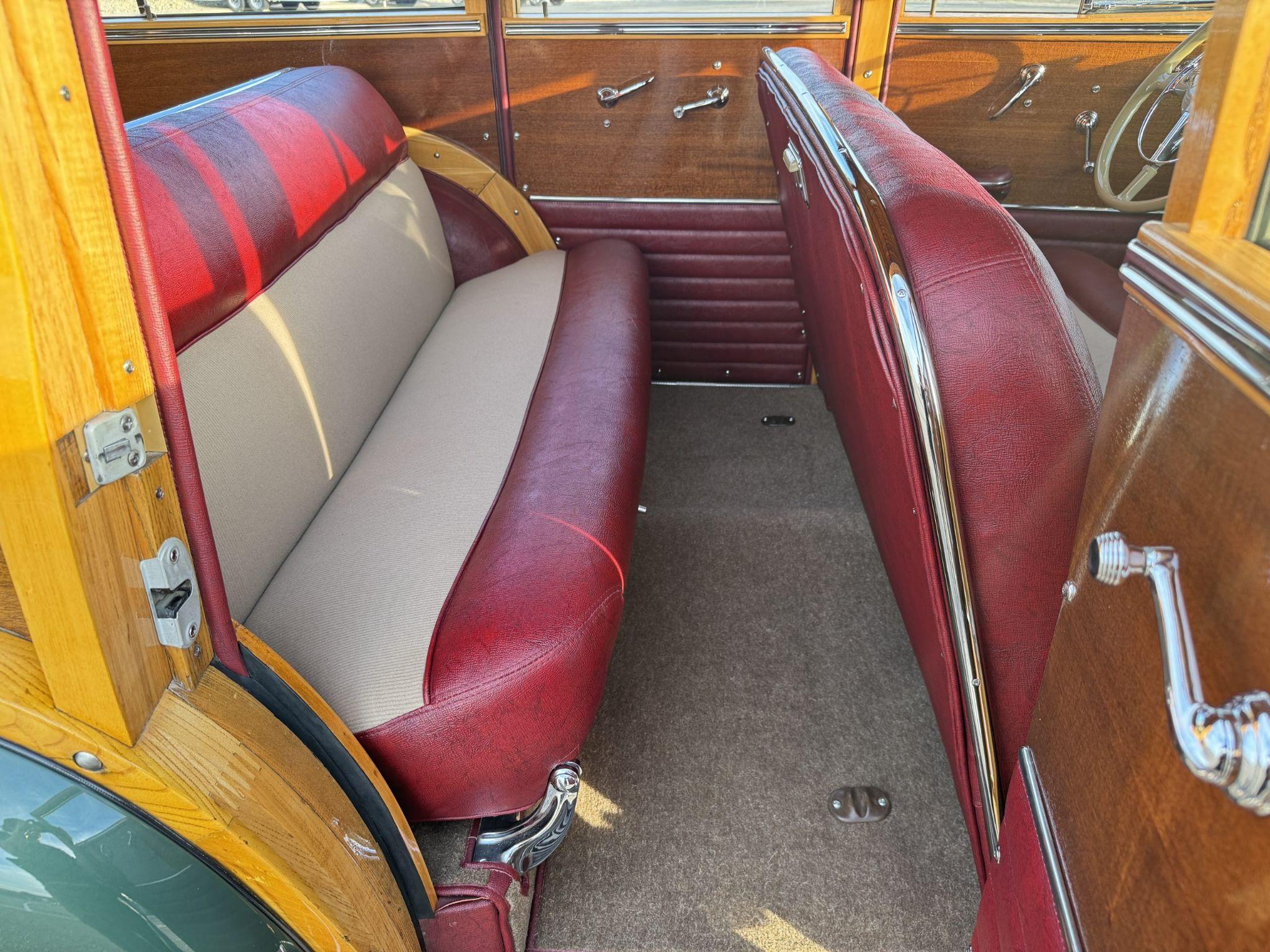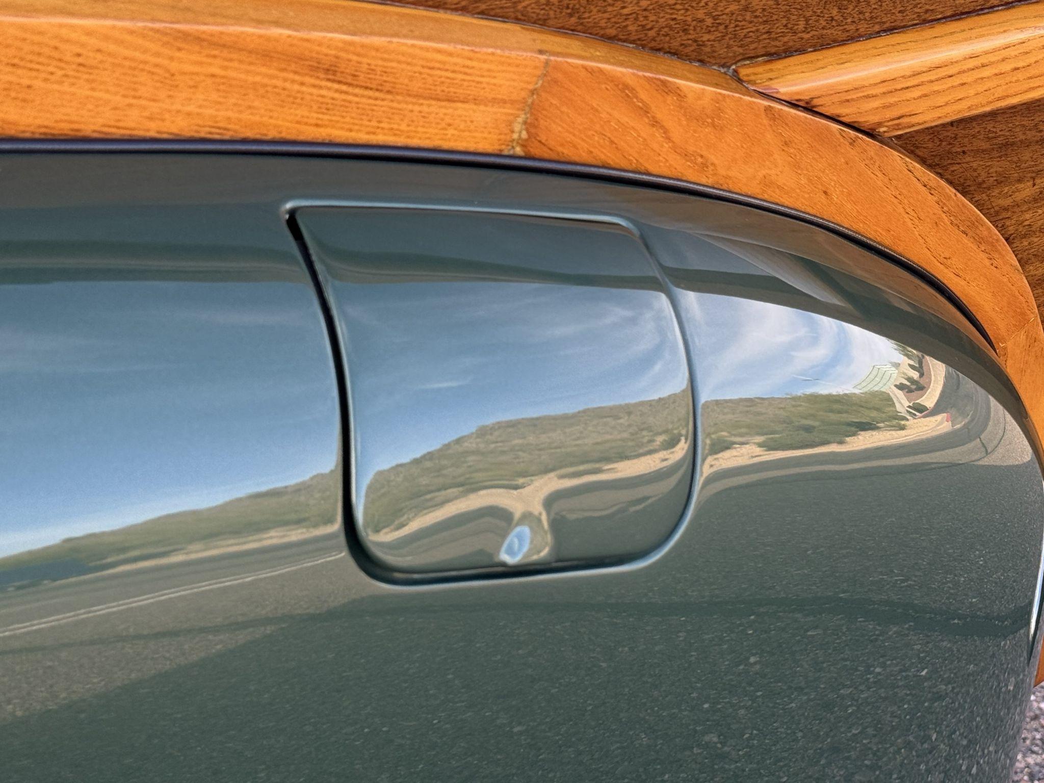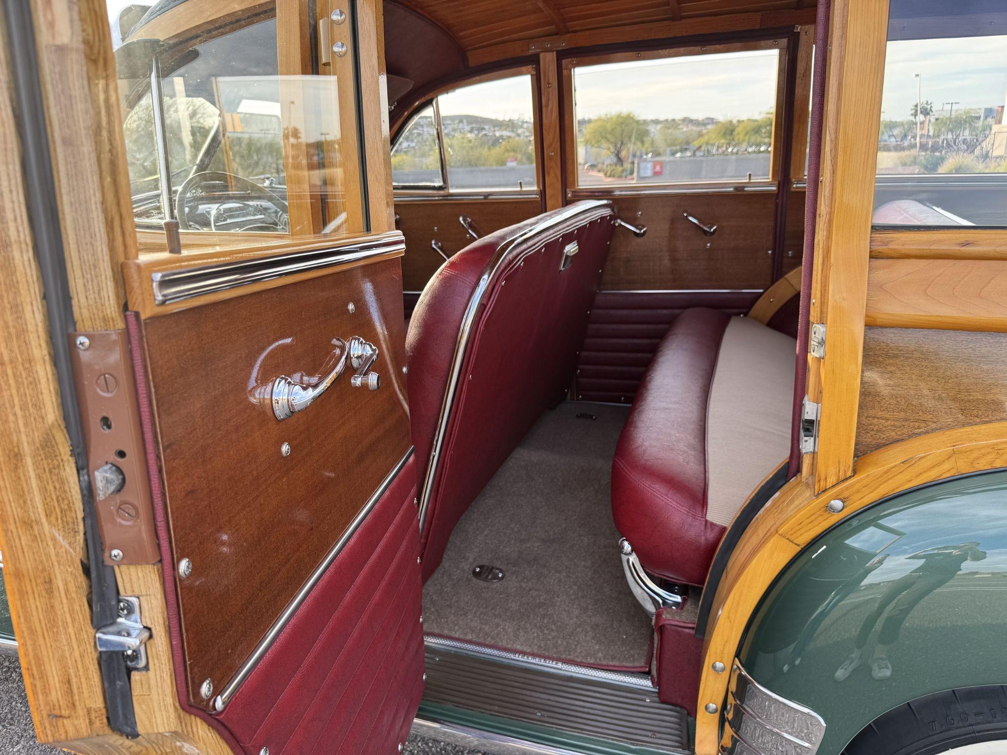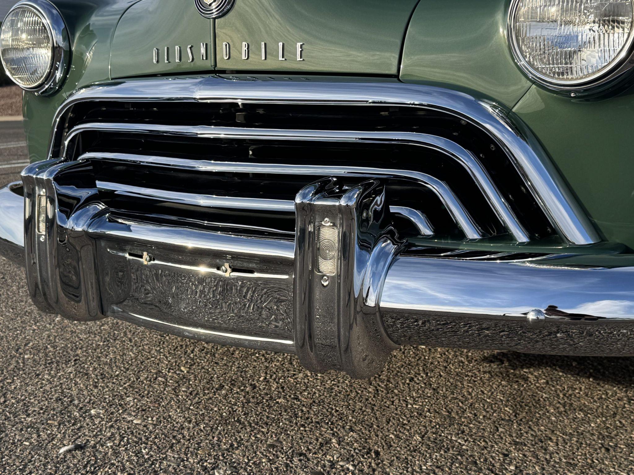 The 1948 Oldsmobile Series 66 Dynamic Deluxe Woodie Wagon represents one of the most refined postwar American family cars, blending craftsmanship, comfort, and restrained style. Powered by the original 238-cubic-inch inline six and equipped with a 4-speed Hydra-Matic automatic transmission, the Oldsmobile is believed to show 55,271 actual miles and presents as a high-quality restored example. With its steel body and Ionia-built ash and mahogany coachwork, the Series 66 is well suited for long-distance touring, regional shows, or inclusion in a distinctive postwar collection. Produced in limited numbers, with just 553 examples built for the 1948 model year, the Series 66 Dynamic Deluxe Woodie Wagon features wood construction by the Ionia Body Company of Michigan, long regarded as General Motors premier wood-body supplier. Originally finished in Nickel Gray, this example is believed to have undergone a frame-off restoration and has been carefully preserved since completion. The Oldsmobile reflects the periods tradition of wood-bodied wagons as upscale multipurpose vehicles, often used for beach outings, resort travel, and family touring, and today offers an authentic representation of that postwar lifestyle. The exterior presents in Ivy Green paint with deep, even luster, complemented by richly finished ash and mahogany side and rear panels that remain in excellent condition. The dark green textured vinyl roof is clean and well fitted, while the split front windshield, exterior sun shield, and brightwork all present strongly. The distinctive Oldsmobile grille and bomber style chrome and green hood handle remain crisp, and the headlamp glass is clear and fully functional. A two-piece tailgate with a tilting glass vent window adds practicality, while steel wheels with Oldsmobile-logo hubcaps and wide whitewall tires in very good condition complete the period-correct appearance. Inside, the Series 66 features dual bench seating trimmed in the original-style tan cloth and maroon vinyl, offering accommodation for six passengers in a warm, inviting cabin. The wood paneling and interior accents remain in excellent condition and reinforce the craftsmanship associated with Ionia-built wagons. The maroon and chrome dashboard appears fresh, housing a 0110 mph speedometer and full auxiliary gauges, all framed by an ivory deluxe steering wheel. The clock is operational, the AM radio powers on without sound output, and all interior lighting functions as designed. Manual windows and tilt features provide natural airflow, while the folding passenger bench expands rear cargo space in traditional station wagon fashion. Mechanical power is supplied by the original 238-cubic-inch inline six, paired with a column-shifted 4-speed Hydra-Matic automatic transmission. The Series 66 delivers modest, relaxed performance consistent with its touring-focused design, aided by power-assisted steering and responsive hydraulic drum brakes. The Oldsmobile does not feature turn signals, consistent with the era, and retains a straightforward mechanical layout that emphasizes smooth operation and reliability. Included with the sale are original manuals, a jack, trunk-mounted spare tire, fire extinguisher, recent inspection report and a clean title. For more information and details, please call or text Kendi Brown at 1.623.404.9042 or email us at sales@classicpromenade.com . This 1948 Oldsmobile Series 66 Dynamic Deluxe Woodie Wagon is available for inspection at our showroom in Phoenix. We are pleased to offer FaceTime or WhatsApp live video inspections, and we help coordinate shipping worldwide. We also have financing partners if you are interested in financing.