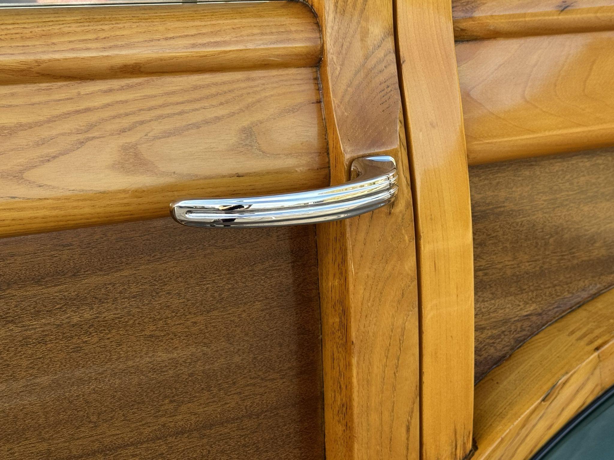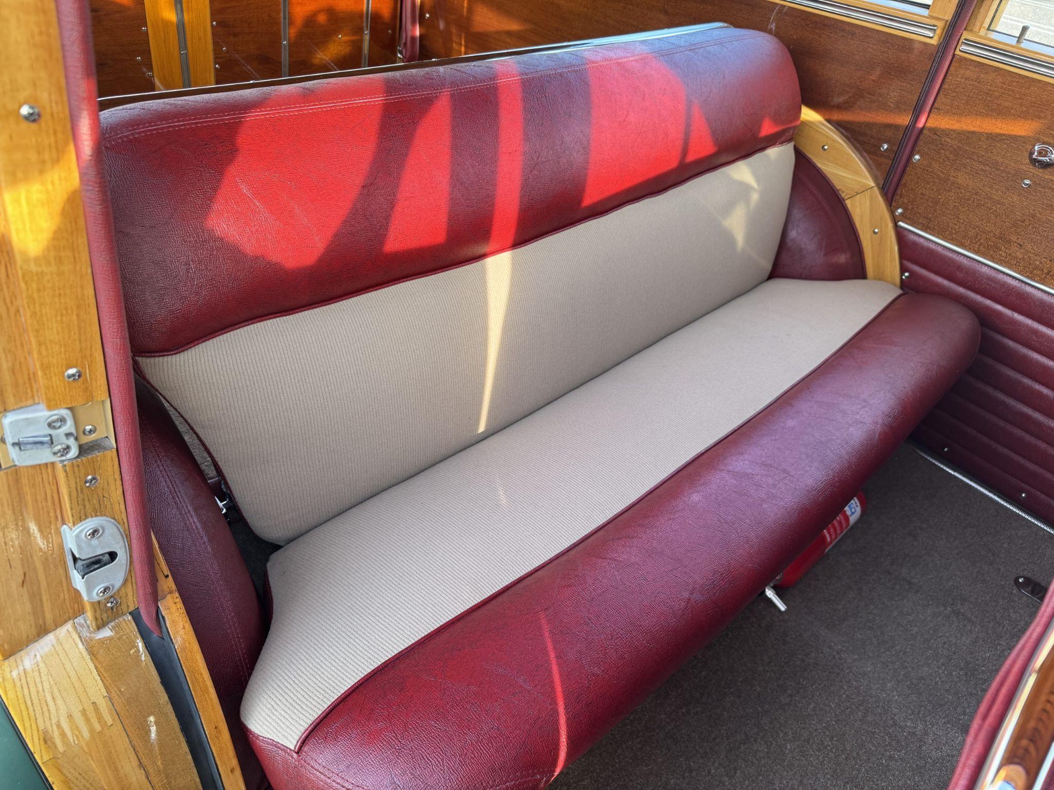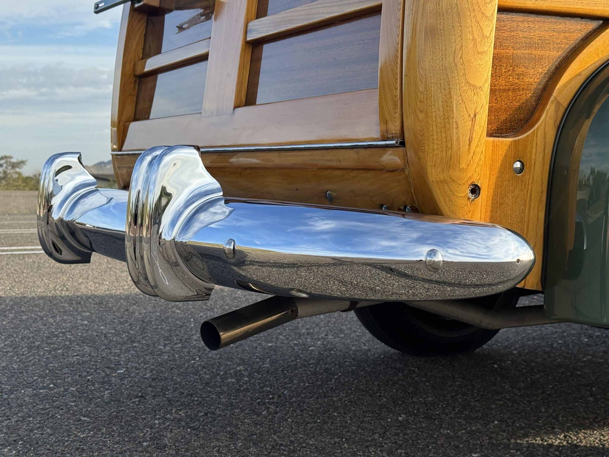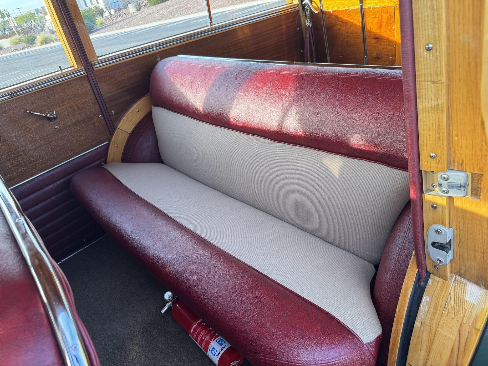The 1948 Oldsmobile Series 66 Dynamic Deluxe Woodie Wagon represents one of the most refined postwar American family cars, blending craftsmanship, comfort, and restrained style. Powered by the original 238-cubic-inch inline six and equipped with a 4-speed Hydra-Matic automatic transmission, the Oldsmobile is believed to show 55,271 actual miles and presents as a high-quality restored example. With its steel body and Ionia-built ash and mahogany coachwork, the Series 66 is well suited for long-distance touring, regional shows, or inclusion in a distinctive postwar collection. Produced in limited numbers, with just 553 examples built for the 1948 model year, the Series 66 Dynamic Deluxe Woodie Wagon features wood construction by the Ionia Body Company of Michigan, long regarded as General Motors premier wood-body supplier. Originally finished in Nickel Gray, this example is believed to have undergone a frame-off restoration and has been carefully preserved since completion. The Oldsmobile reflects the periods tradition of wood-bodied wagons as upscale multipurpose vehicles, often used for beach outings, resort travel, and family touring, and today offers an authentic representation of that postwar lifestyle. The exterior presents in Ivy Green paint with deep, even luster, complemented by richly finished ash and mahogany side and rear panels that remain in excellent condition. The dark green textured vinyl roof is clean and well fitted, while the split front windshield, exterior sun shield, and brightwork all present strongly. The distinctive Oldsmobile grille and bomber style chrome and green hood handle remain crisp, and the headlamp glass is clear and fully functional. A two-piece tailgate with a tilting glass vent window adds practicality, while steel wheels with Oldsmobile-logo hubcaps and wide whitewall tires in very good condition complete the period-correct appearance. Inside, the Series 66 features dual bench seating trimmed in the original-style tan cloth and maroon vinyl, offering accommodation for six passengers in a warm, inviting cabin. The wood paneling and interior accents remain in excellent condition and reinforce the craftsmanship associated with Ionia-built wagons. The maroon and chrome dashboard appears fresh, housing a 0110 mph speedometer and full auxiliary gauges, all framed by an ivory deluxe steering wheel. The clock is operational, the AM radio powers on without sound output, and all interior lighting functions as designed. Manual windows and tilt features provide natural airflow, while the folding passenger bench expands rear cargo space in traditional station wagon fashion. Mechanical power is supplied by the original 238-cubic-inch inline six, paired with a column-shifted 4-speed Hydra-Matic automatic transmission. The Series 66 delivers modest, relaxed performance consistent with its touring-focused design, aided by power-assisted steering and responsive hydraulic drum brakes. The Oldsmobile does not feature turn signals, consistent with the era, and retains a straightforward mechanical layout that emphasizes smooth operation and reliability. Included with the sale are original manuals, a jack, trunk-mounted spare tire, fire extinguisher, recent inspection report and a clean title. For more information and details, please call or text Kendi Brown at 1.623.404.9042 or email us at sales@classicpromenade.com . This 1948 Oldsmobile Series 66 Dynamic Deluxe Woodie Wagon is available for inspection at our showroom in Phoenix. We are pleased to offer FaceTime or WhatsApp live video inspections, and we help coordinate shipping worldwide. We also have financing partners if you are interested in financing.