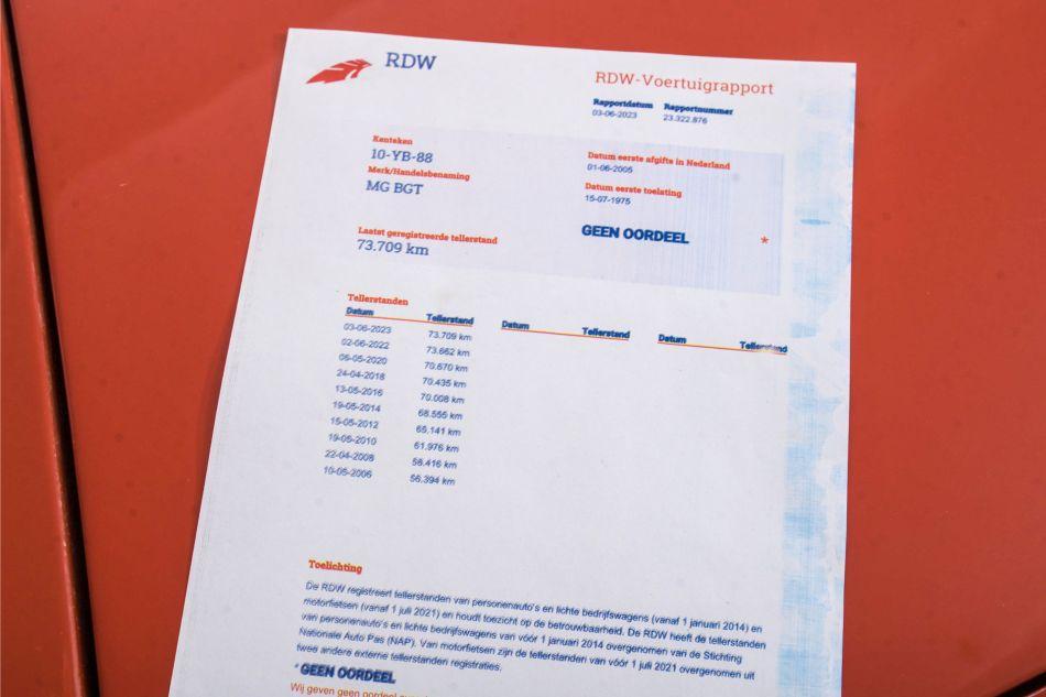 Neat MG MGB in stylish GT version! This model was first registered in 1975. It is a very well-maintained model with excellent technology, which makes it very smooth and pleasant to drive. The powerful 1800 cc engine runs fantastically and provides sufficient power. As a highly valued accessory, this MG is equipped with an overdrive gearbox, which provides more peace and driving pleasure at higher speeds and longer distances. The bodywork is in very good and cool condition, having been neatly repainted in the past. The underside and chassis are very cool and solid. The interior is typically understated 1970s, with only the bare essentials. Still, it is remarkable that it has only 73,709 km. The car was sold new in Switzerland and came to the Netherlands in 2005. It is equipped with nice options: leather sports seats, overdrive, power brakes, and wire wheels. At the 1964 Brussels Motor Show, Coune presented a coupé version of the MGB. The changes were not limited to a simple hardtop: thanks to parts from Renault and Simca, among others, he designed a car with its own personality, with a sloping roofline and a Ferrari-like rear. The design was so well received that Coune decided to produce it. Inspired by this success, MG introduced the MGB GT in 1965. This closed version was also known as the 'poor man's Aston Martin'. The GT owed its beautiful lines in part to the involvement of the grand master of car body design: Pininfarina, who also built the prototype.