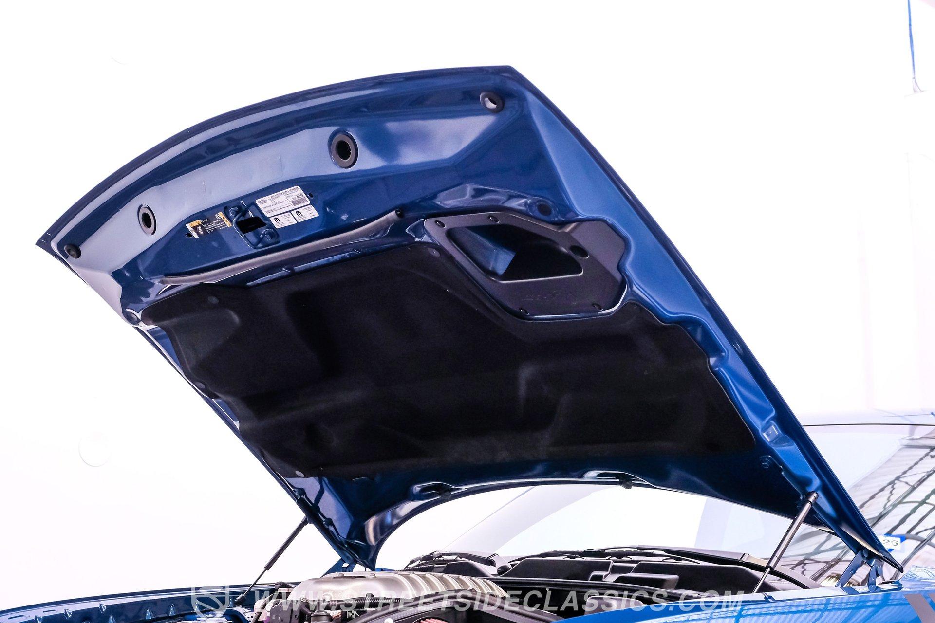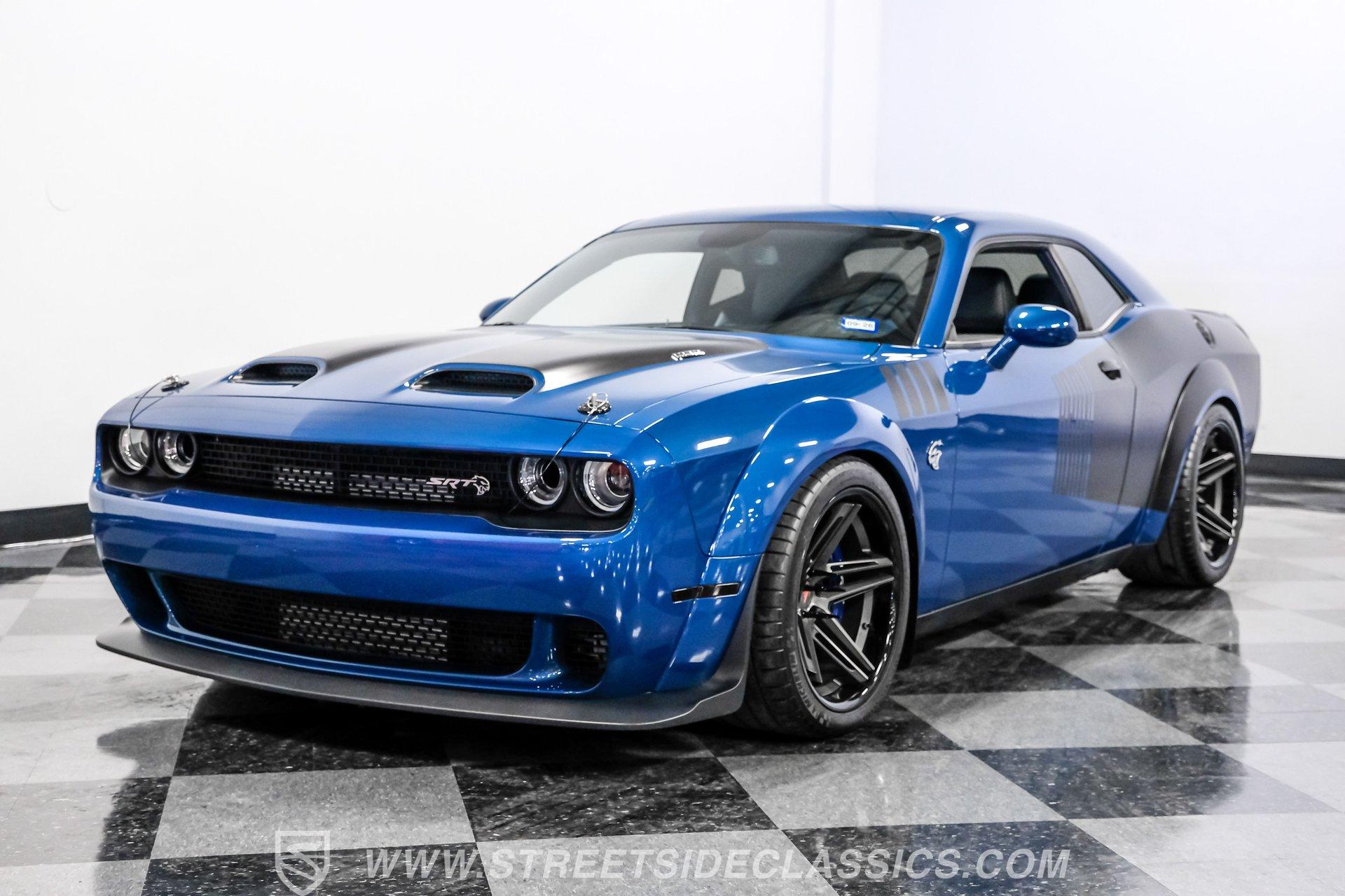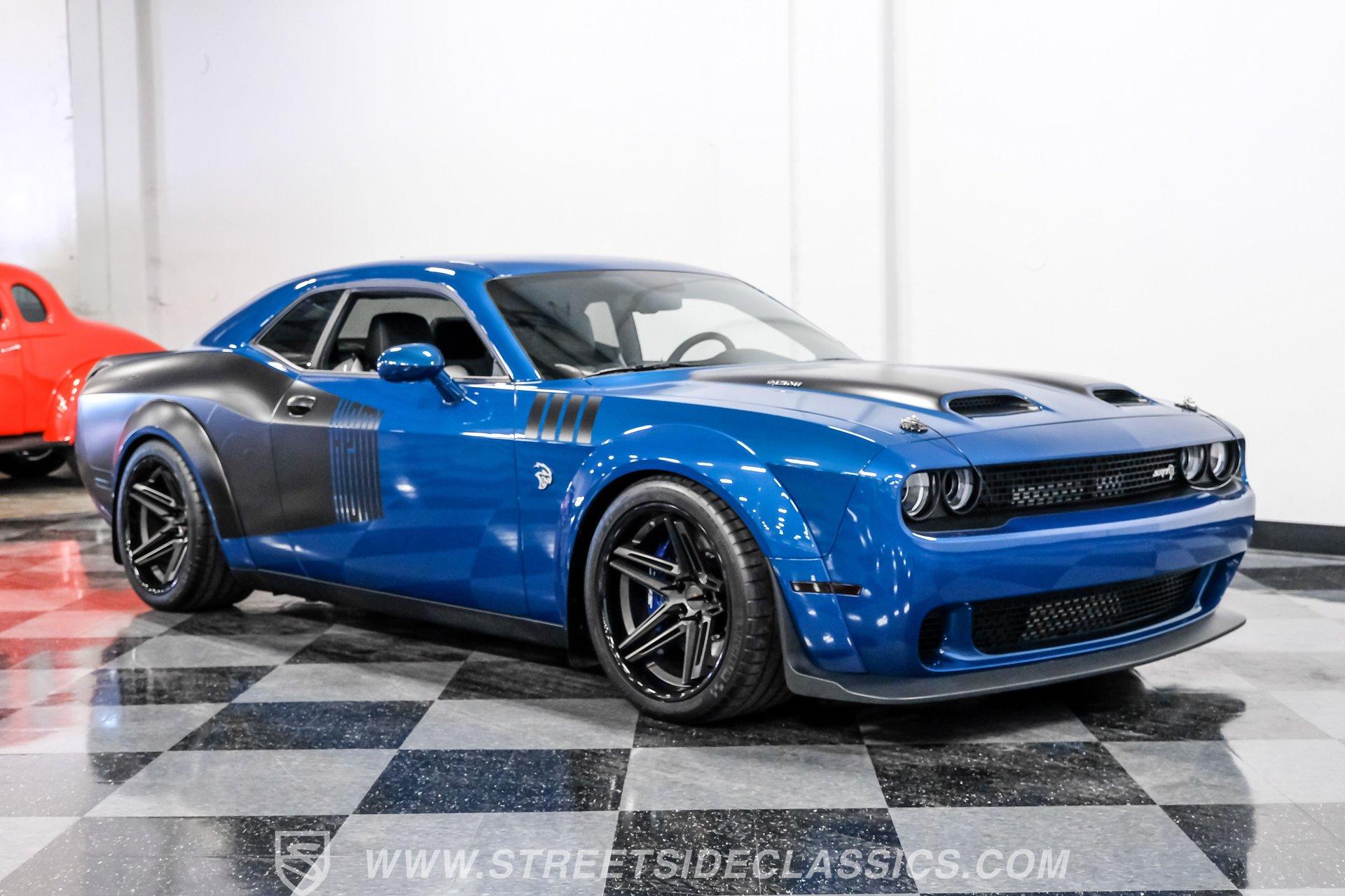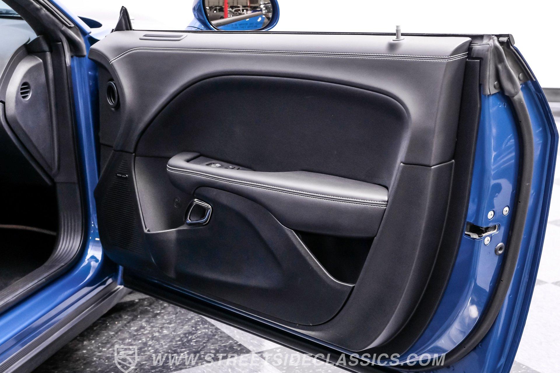 This Challenger SRT8 Hellcat Redeye has the rare Jailbreak package that added additional $18,595 to the price of the car. The Jailbreak option includes a 220-mph speedometer, widebody fender flares, high-performance engine controller, widebody competition suspension, Jailbreak badging and a SRT power chiller. Other options include Laguna leather seats with Hellcat logo that are ventilated and have memory settings, Technology Group, Driver Convenience Group, Harmon Kardon Audio Group with 18-speaker Prem Audio and trunk-mounted subwoofer, suede headliner, 8-speed TorqueFlite automatic transmission, 3.09 rear axle ratio, black hood pin kit, satin chrome exterior badging, satin black SRT Performance spoiler, SRT Widebody stripe, SRT Alcantra steering wheel with red LED logo, 4C NAV with 8.4-inch touch screen display, 20'' x 11'' Warp-Speed satin carbon wheels, real carbon fiber interior accents and blue brake calipers.