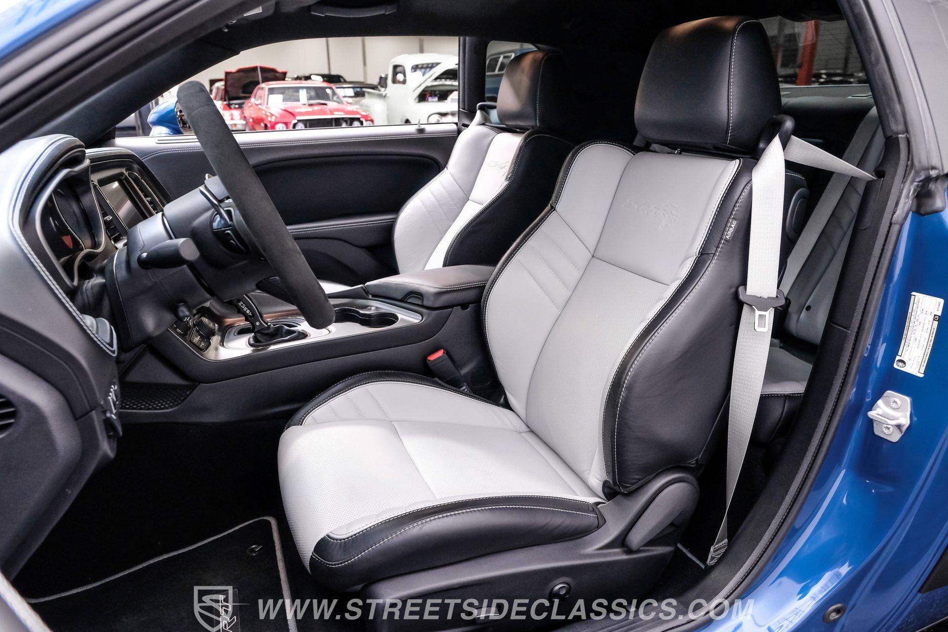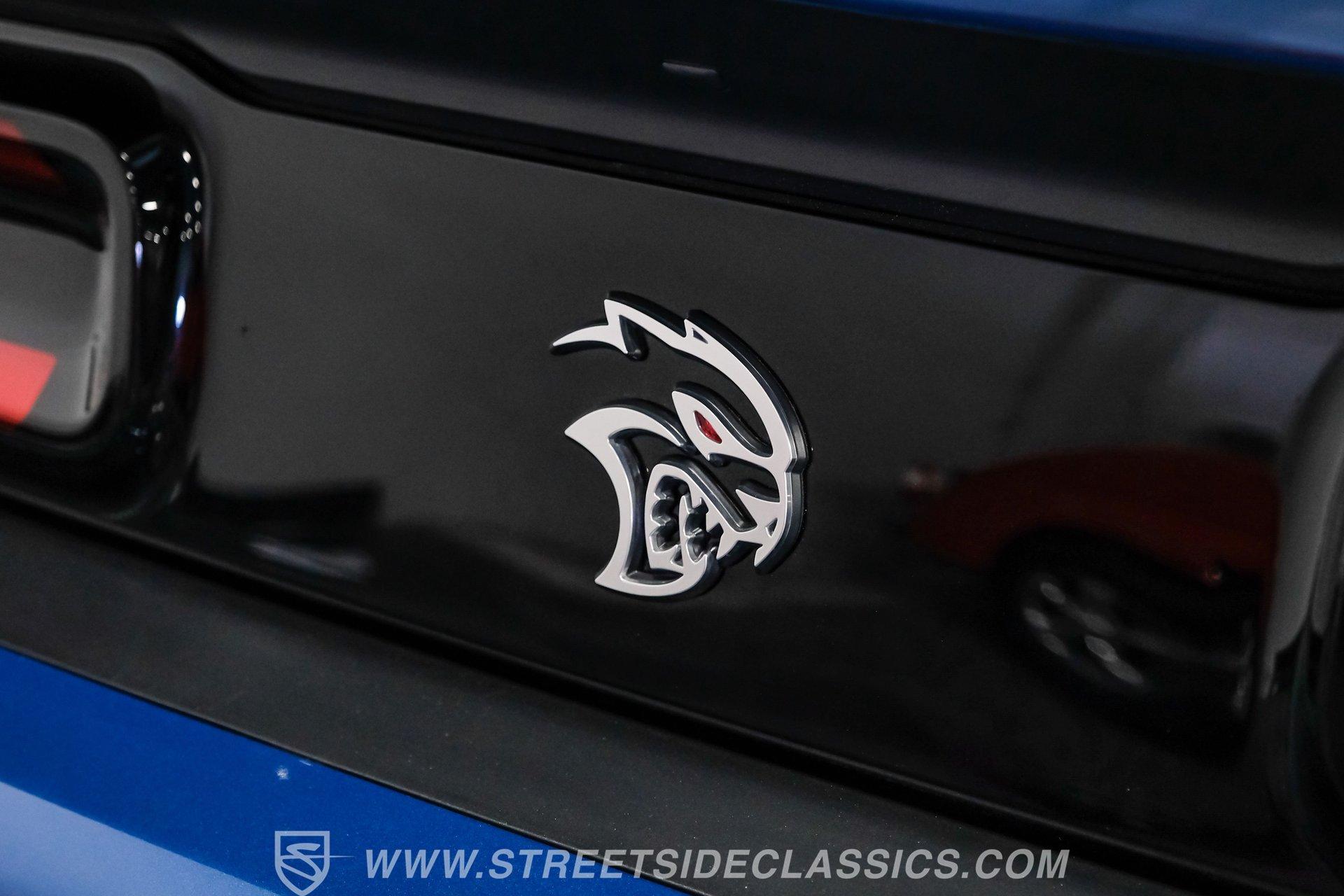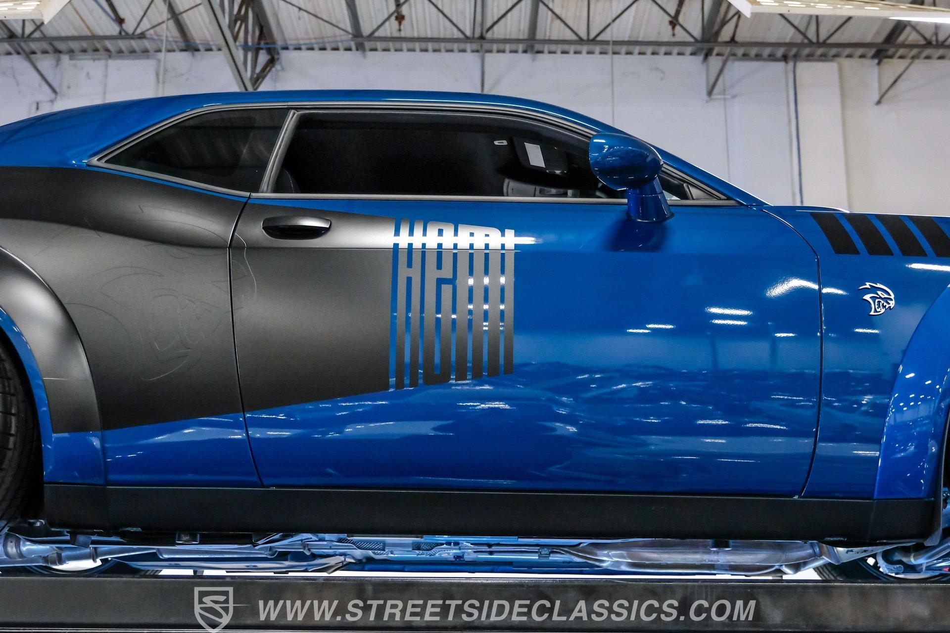 All these options are amazing, but the owner wanted even more, ordering Mopar Direct Connection dealer upgrades that include most significantly the Redeye Pre-Stage and Stage ll performance upgrades that consists of an engine that pumps out an incredible 840hp on pump gas (885hp on 100 octane) with a whopping 787-foot pounds of torque. The package also came with a Direct Connection 5'' Wifi tuner with hi-def touchscreen, 180-degree performance thermostat, 17 PSI boost, 3.17-inch Hellephant pully and a full Dodge warranty. Additional dealer items on this car include color matched valve covers, Mopar ABS control cover, Mopar valve shield and custom Hellcat Redeye logos in the engine bay. The suspension system was upgraded with an Eibach Pro lowering kit including front upper control arms, BMR adjustable rear camber arms, BMR rear upper control arms, Ferrada CM1 20x12 zero offset wheels in matte graphite grey with gloss black lip, 4-inch gloss black spike lugs and Michelin 335/30 ZR20 Pilot Sport tires. Other premium upgrades include Black Trackhawk quad exhaust tips, ZL1 front and rear tow strap hooks, custom Hellcat logo lift plugs, custom Hellcat Redeye rear facia logo, Lux tinted tail lights and side reflectors, custom billboard and racing stripes wrap by Precision Wraps, custom Hurst pistol grip shifter with billet, black and carbon fiber details and matching stainless footrest and E-brake pedal covers.