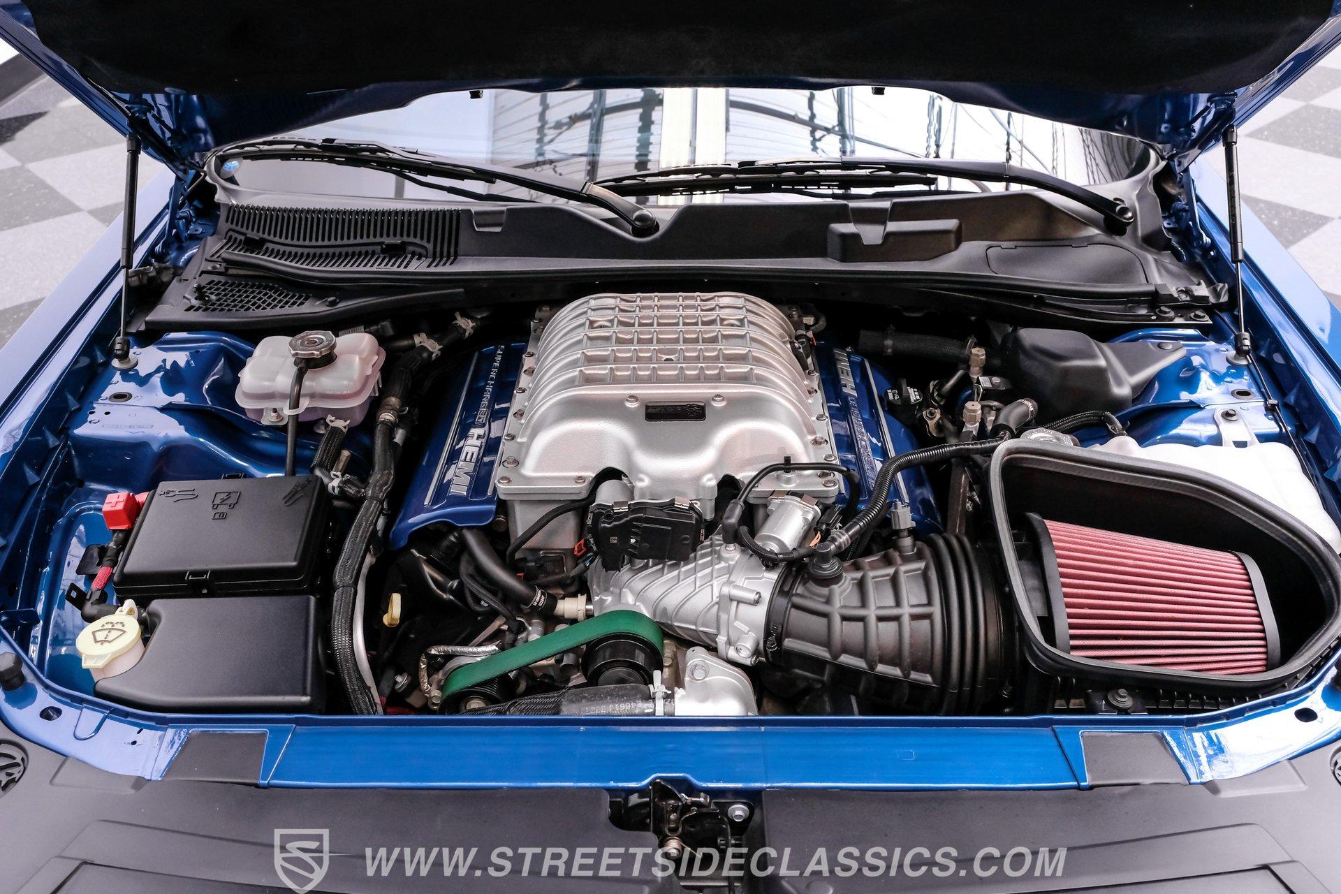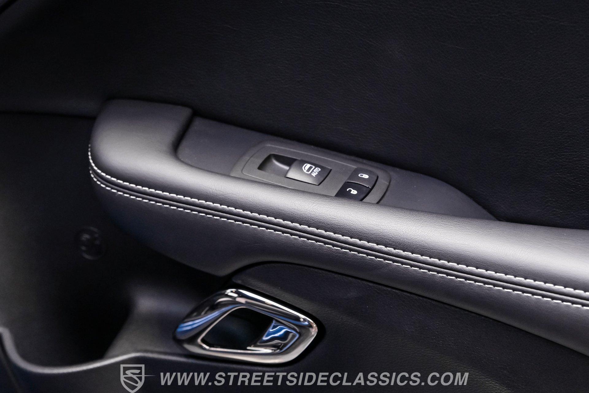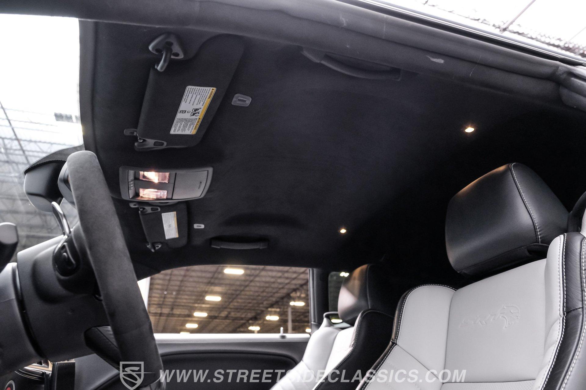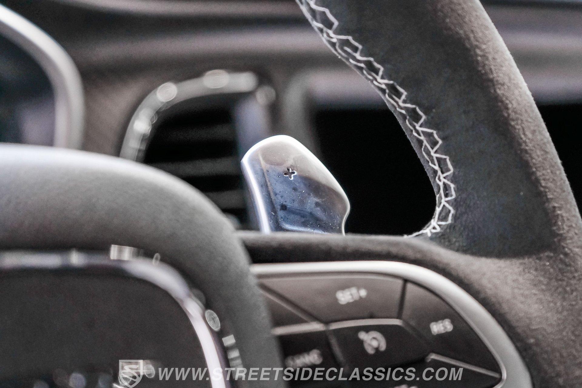 All these options are amazing, but the owner wanted even more, ordering Mopar Direct Connection dealer upgrades that include most significantly the Redeye Pre-Stage and Stage ll performance upgrades that consists of an engine that pumps out an incredible 840hp on pump gas (885hp on 100 octane) with a whopping 787-foot pounds of torque. The package also came with a Direct Connection 5'' Wifi tuner with hi-def touchscreen, 180-degree performance thermostat, 17 PSI boost, 3.17-inch Hellephant pully and a full Dodge warranty. Additional dealer items on this car include color matched valve covers, Mopar ABS control cover, Mopar valve shield and custom Hellcat Redeye logos in the engine bay. The suspension system was upgraded with an Eibach Pro lowering kit including front upper control arms, BMR adjustable rear camber arms, BMR rear upper control arms, Ferrada CM1 20x12 zero offset wheels in matte graphite grey with gloss black lip, 4-inch gloss black spike lugs and Michelin 335/30 ZR20 Pilot Sport tires. Other premium upgrades include Black Trackhawk quad exhaust tips, ZL1 front and rear tow strap hooks, custom Hellcat logo lift plugs, custom Hellcat Redeye rear facia logo, Lux tinted tail lights and side reflectors, custom billboard and racing stripes wrap by Precision Wraps, custom Hurst pistol grip shifter with billet, black and carbon fiber details and matching stainless footrest and E-brake pedal covers.