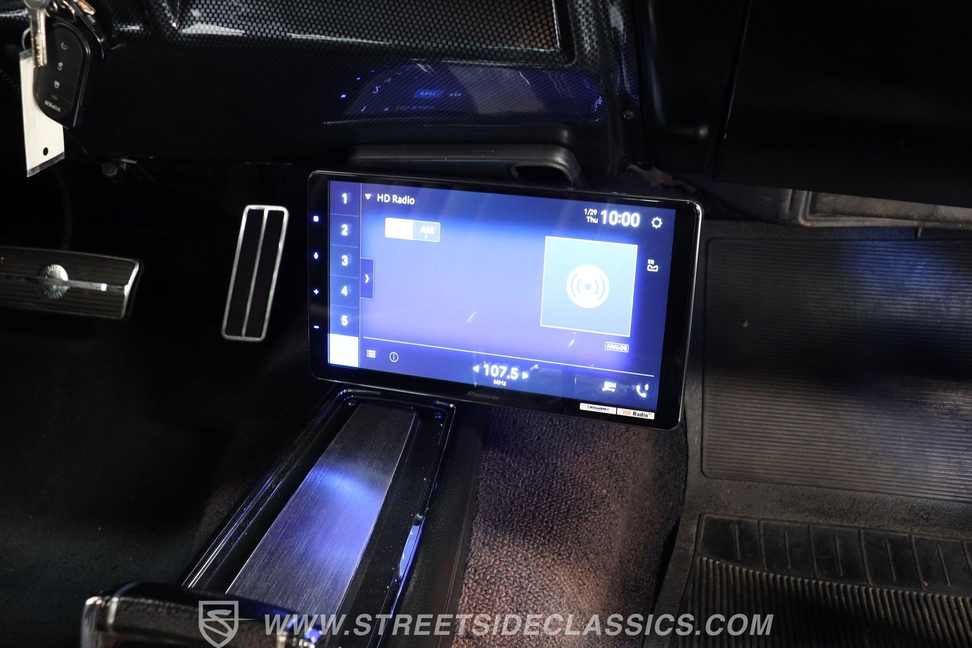 Step inside and you will find a cabin that balances vintage charm with select upgrades. The interior features factory-correct black bucket seats and an original-style center console, complemented by a modern 10.1'' Pioneer touchscreen multimedia system. New aftermarket gauges and fresh dash wiring give you all the information you need at a glance, while blue LED ambient lighting in the trunk adds a custom touch. The upgraded stereo, valued at over $6,000, ensures every journey comes with a premium soundtrack.
