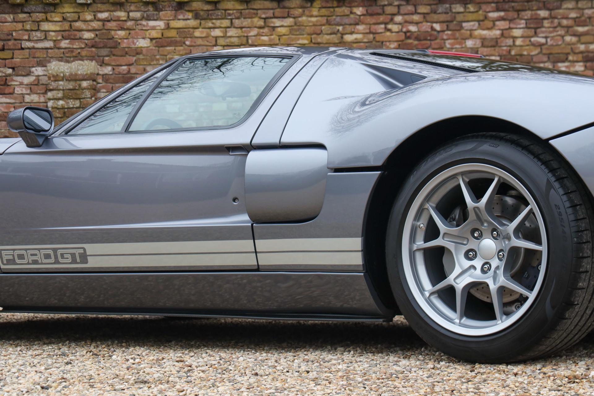 This particular example is from the 2006 model year and is finished in Tungsten Grey, a color of which factory records indicate only 541 cars were produced that year. It is a restrained shade that suits the lines of the GT perfectly, especially in combination with the silver painted racing stripes. The overall effect gives this now legendary Ford a presence that feels purposeful rather than flashy, exactly what many enthusiasts look for in this model.