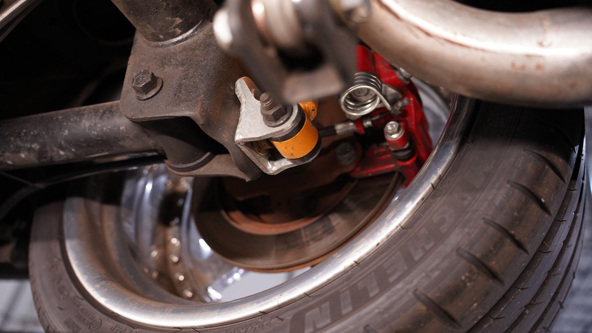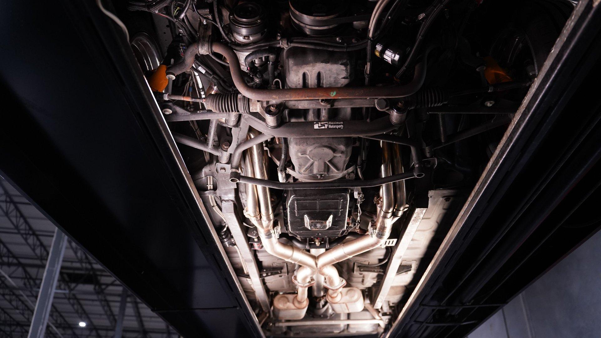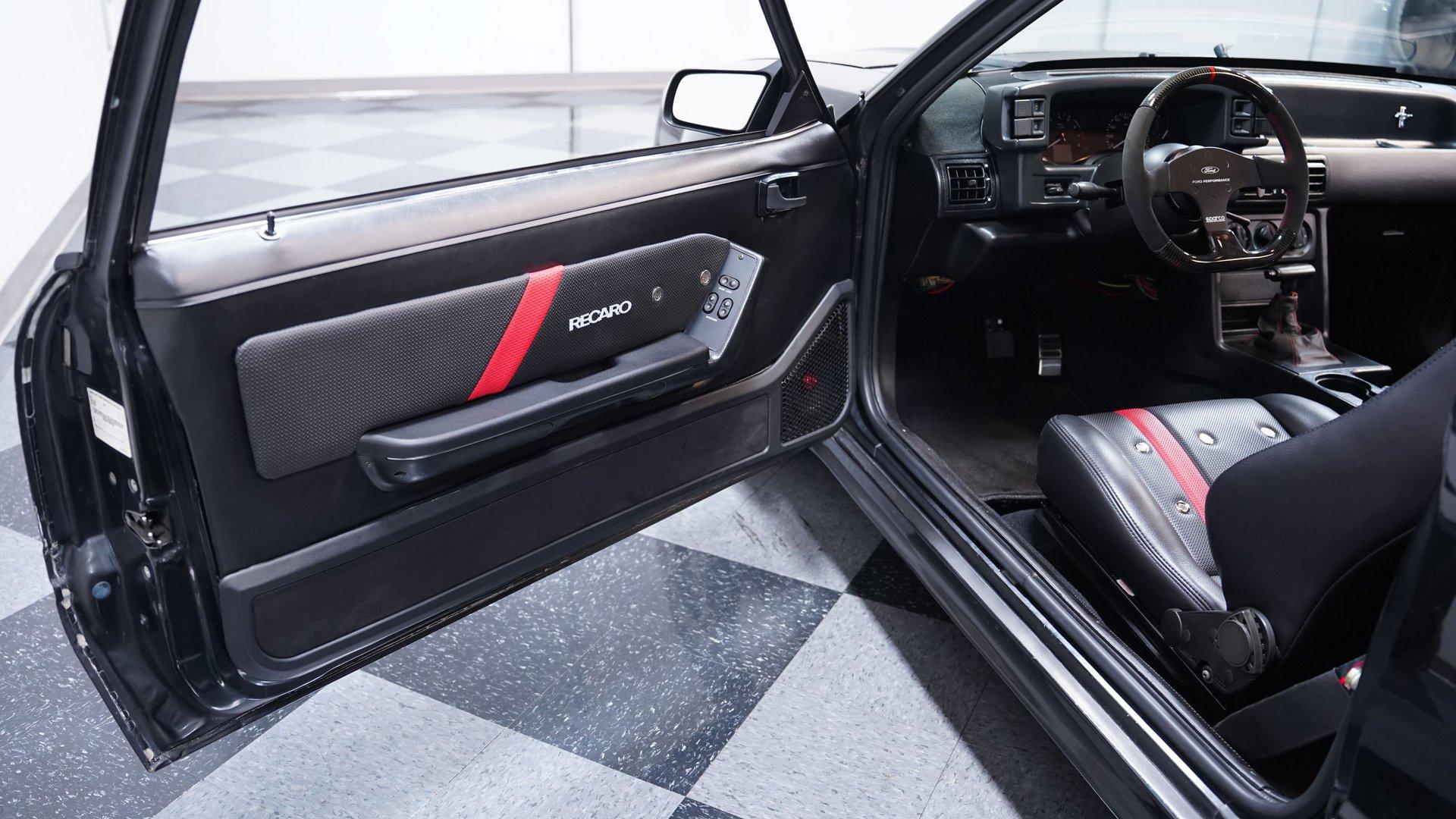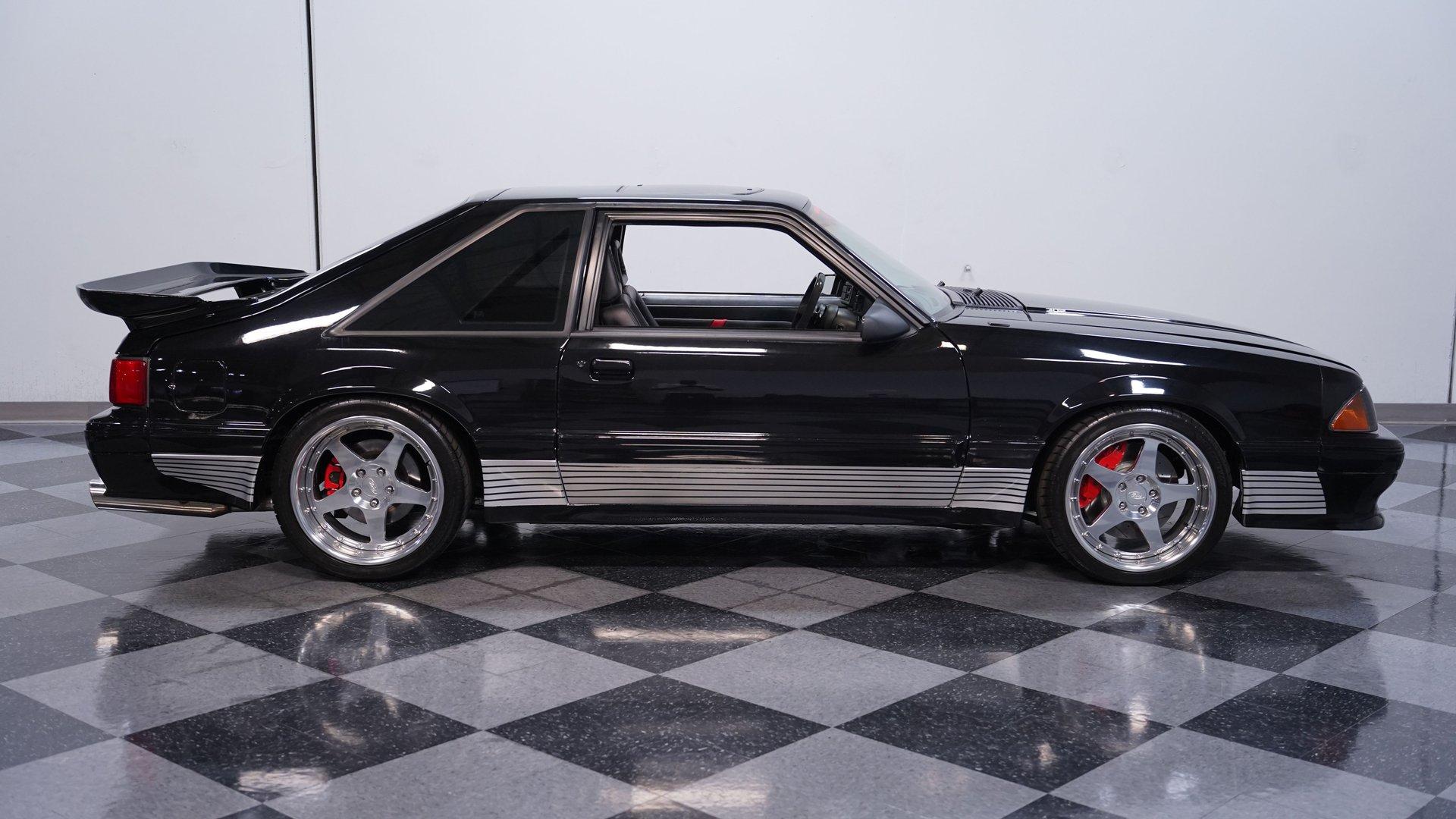 Under the hood, a Gen 1 5.0L Coyote V8 crate engine is the heart of this resto-mod, delivering an estimated 405 horsepower of naturally aspirated power. The JLT air intake, Kooks headers, and SVE aluminum radiator with dual electric fans keep everything running cool and strong. A 6-speed automatic transmission and Maximum Motorsports coilovers ensure the driving experience is both responsive and refined. Subframe connectors and a tubular K-member add rigidity, while the custom engine bay showcases top-tier craftsmanship.