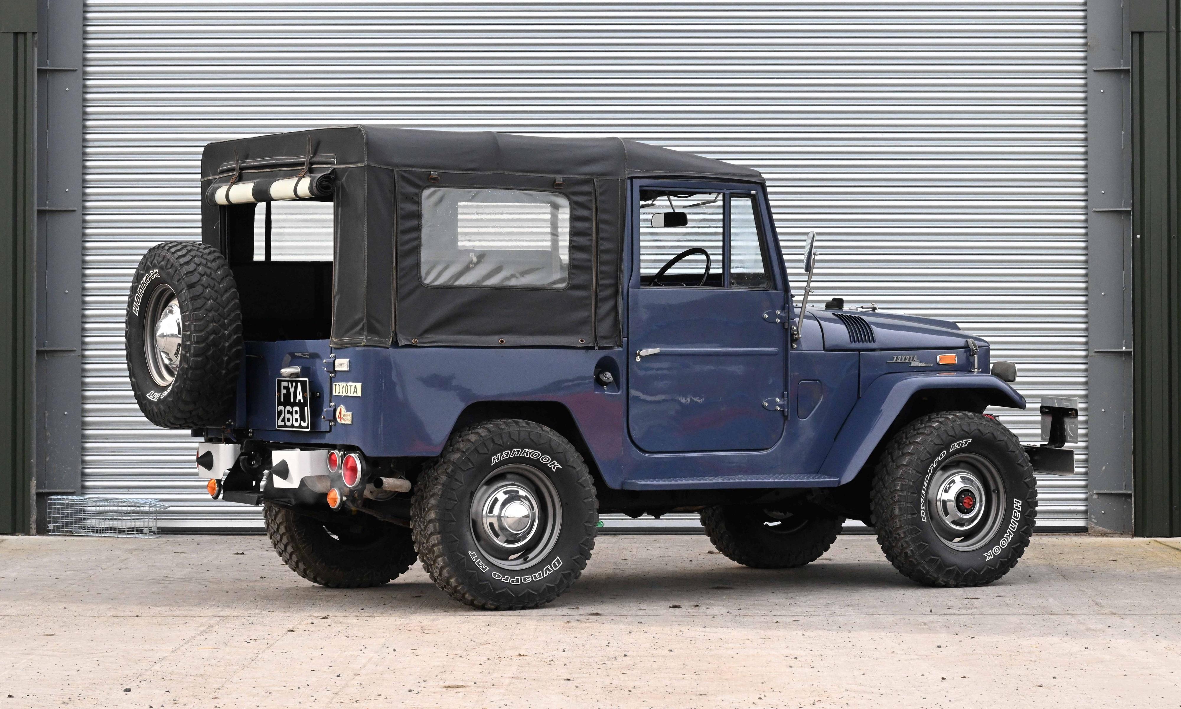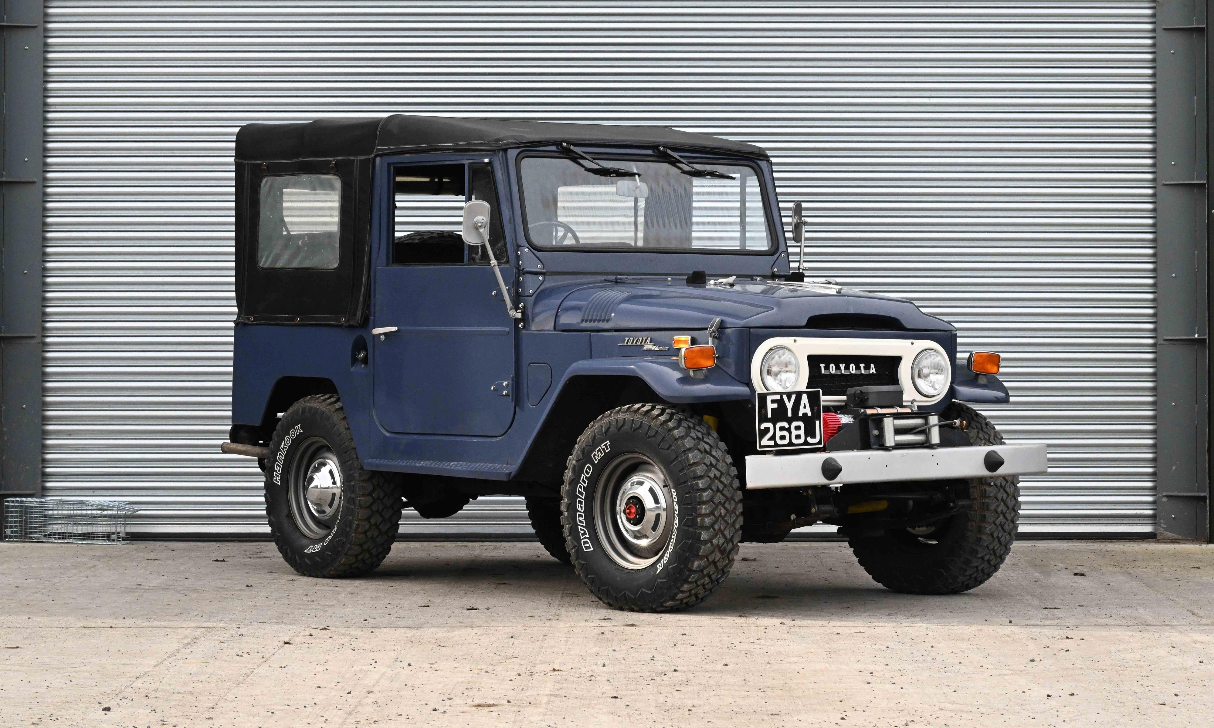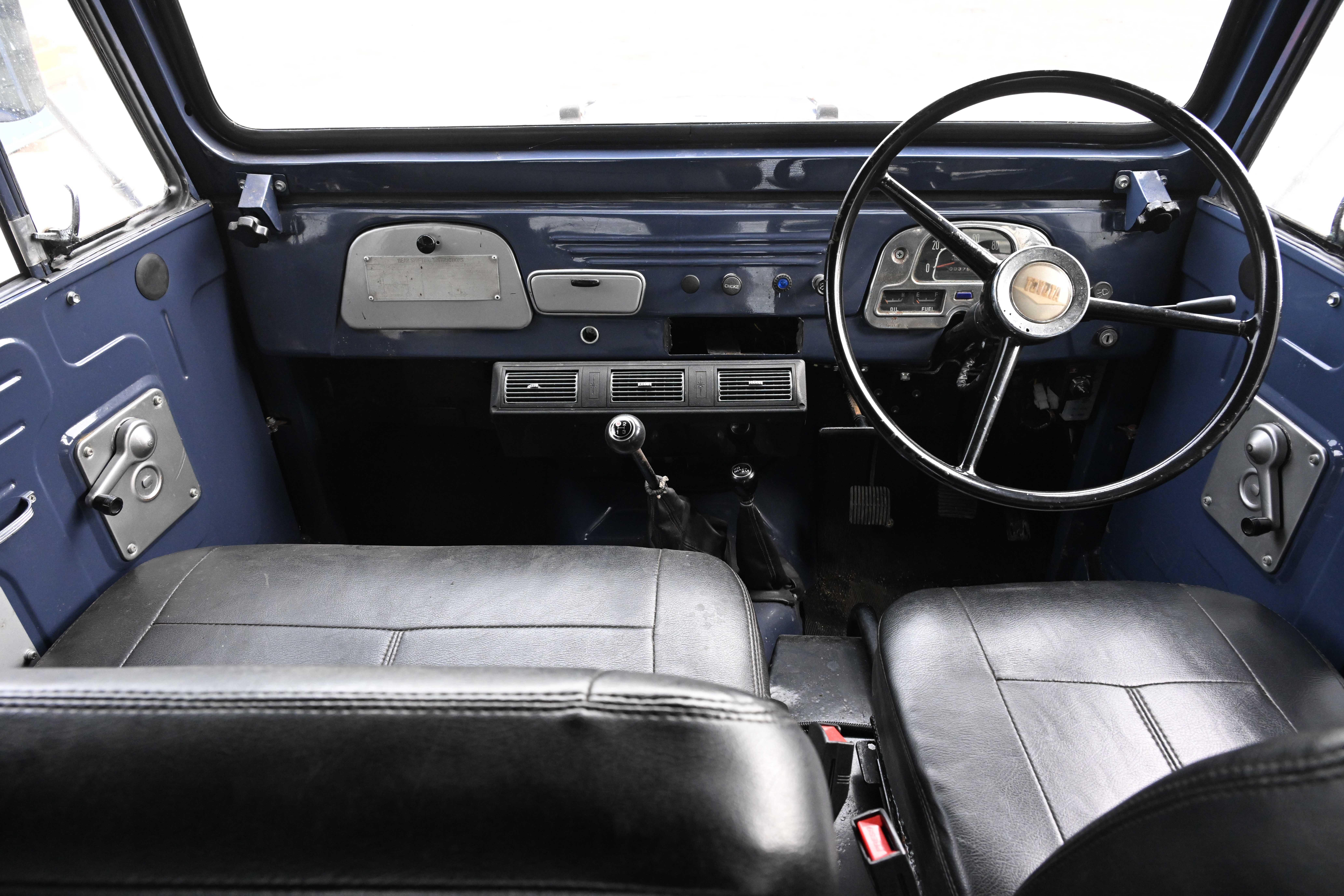 Presented in blue coachwork with black hood and trim this example first registered in 1970 this example was imported from Malaysia in 2023 fully restored but requiring fettling. Our client purchased the vehicle in 2024 having been looking for a Type B restored and decided to send it to specialists IR Cradock and Sons, Experts in Overland Expedition Vehicles who carried out a full shakedown and service including fitting an electric fuel primer. Research also showed that this example though fully restored has a build specification as it was produced from the factory, unusual for a restored FJ40. Increasingly popular as collectors' items and for those fond of early 4X4 such as FJ's and Land Rovers will find this charming Type B irresistible and in one of the iconic colourways for the FJ it will certainly stand out from a crowd. Consigned by Mathew Priddy