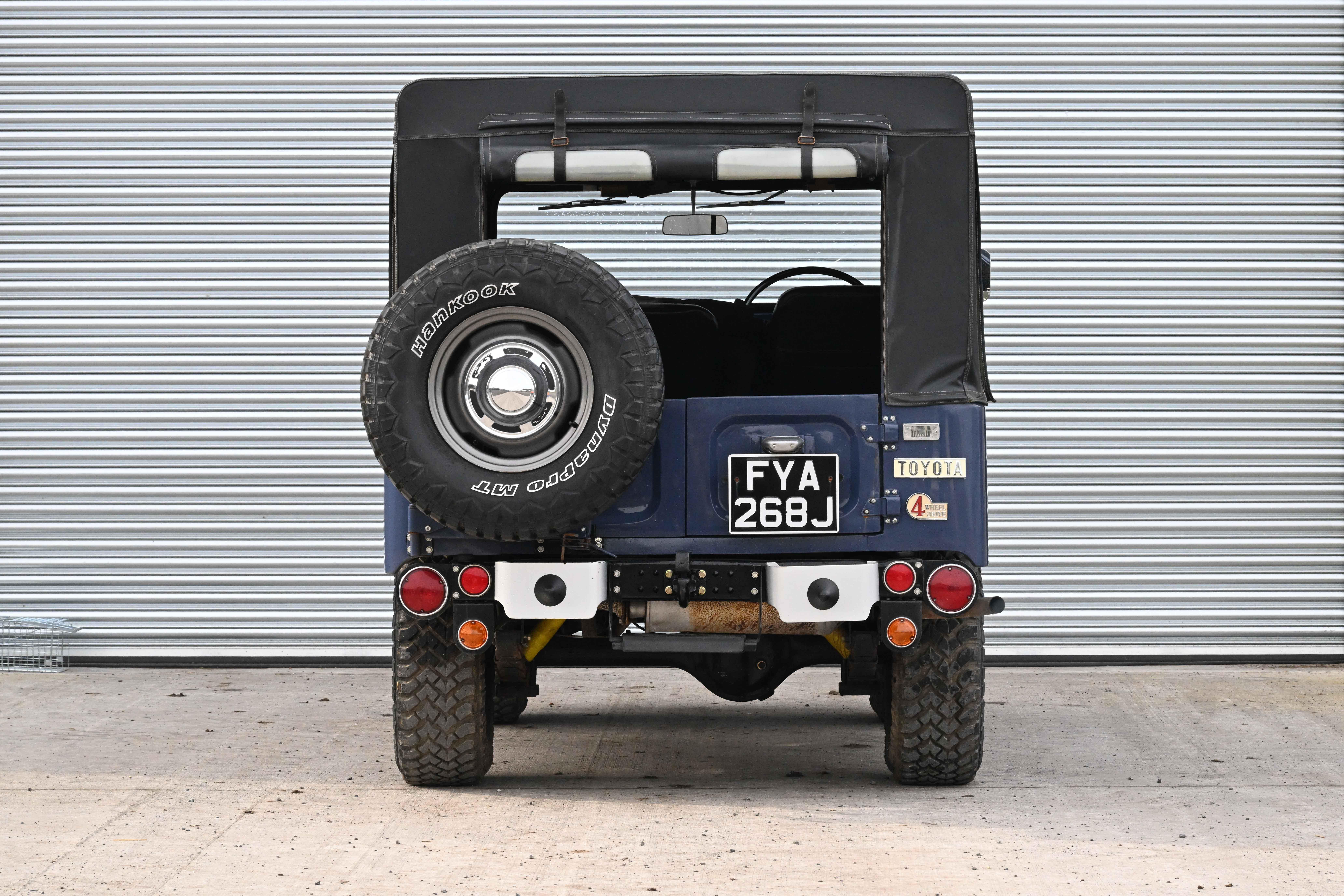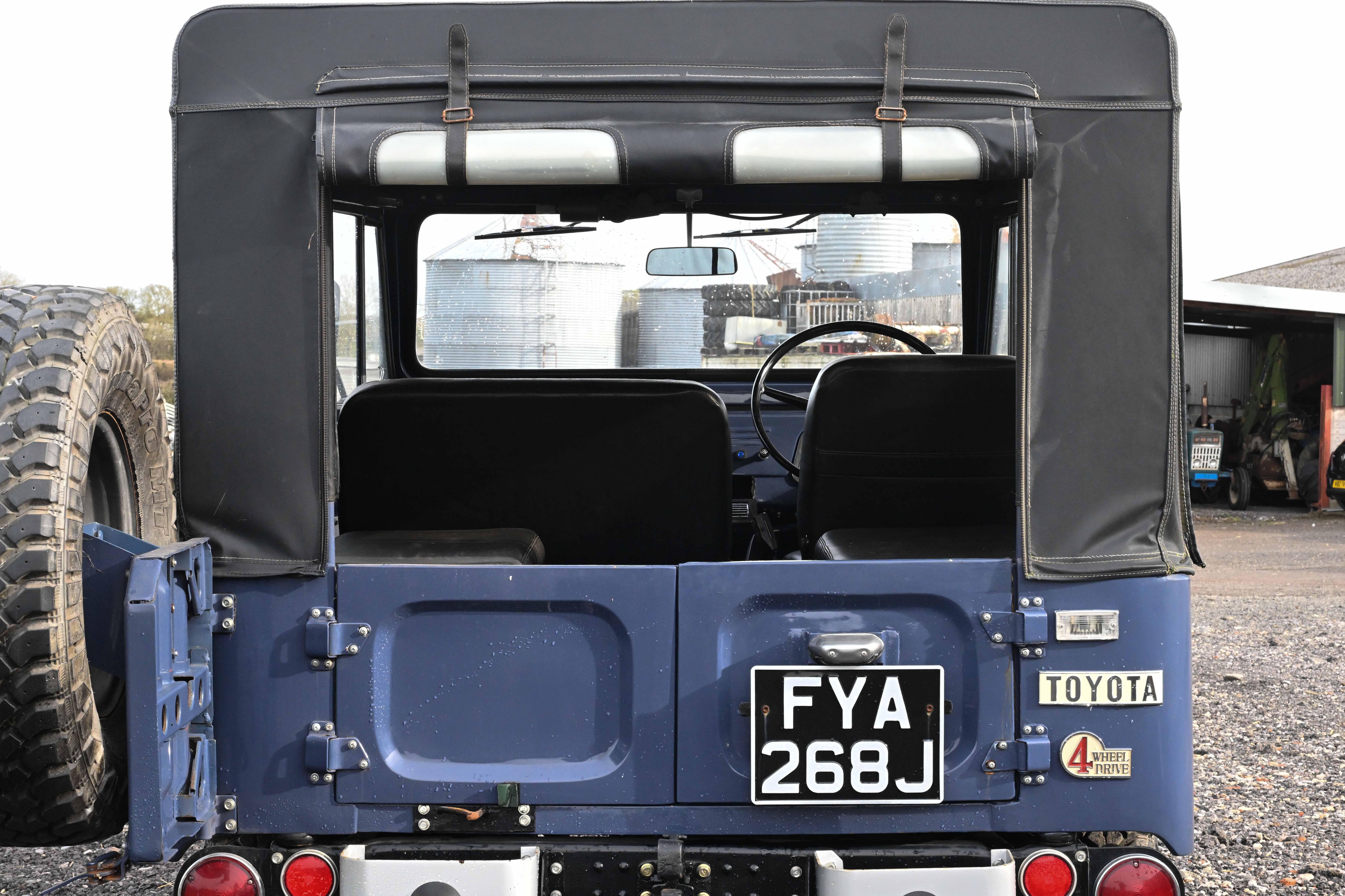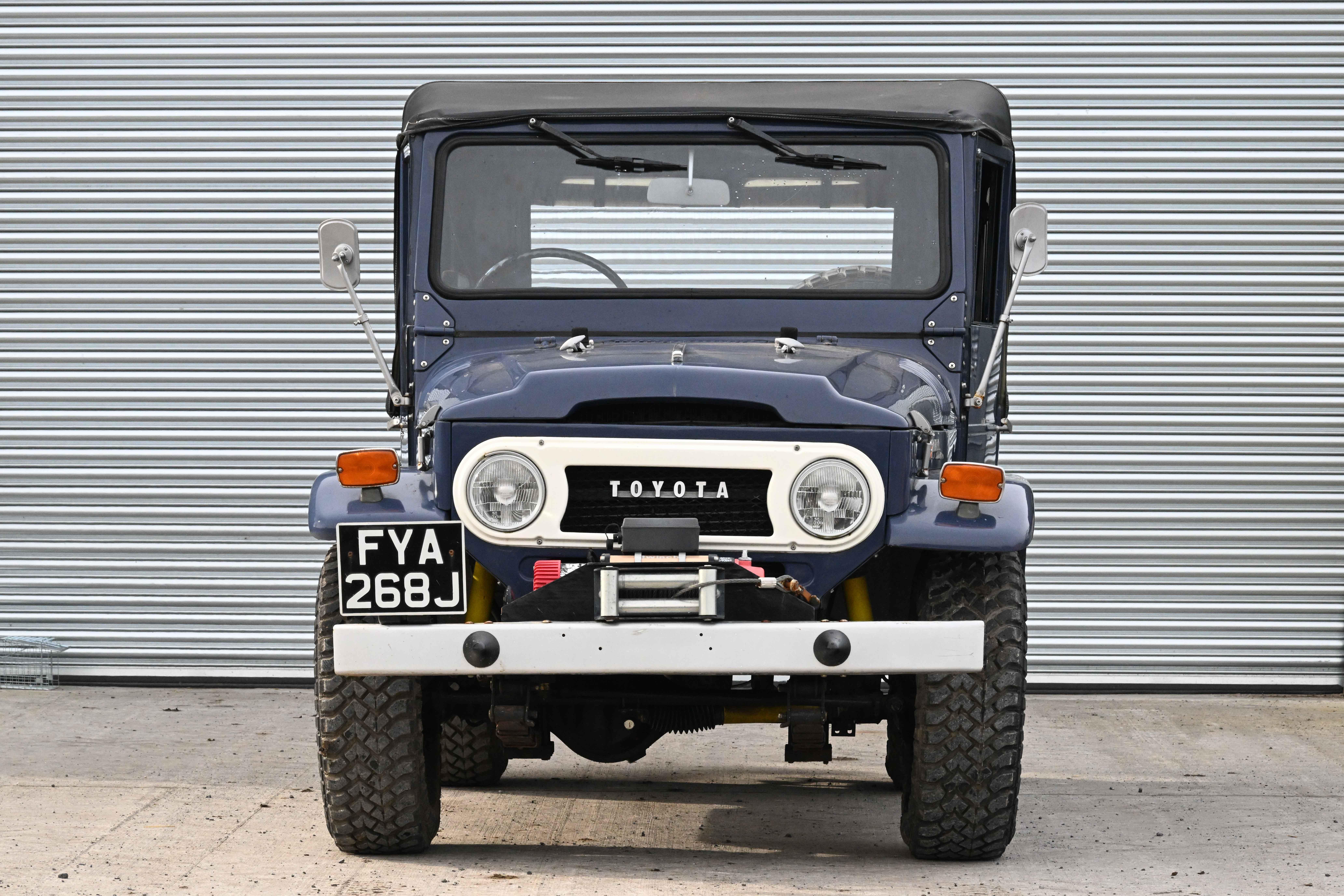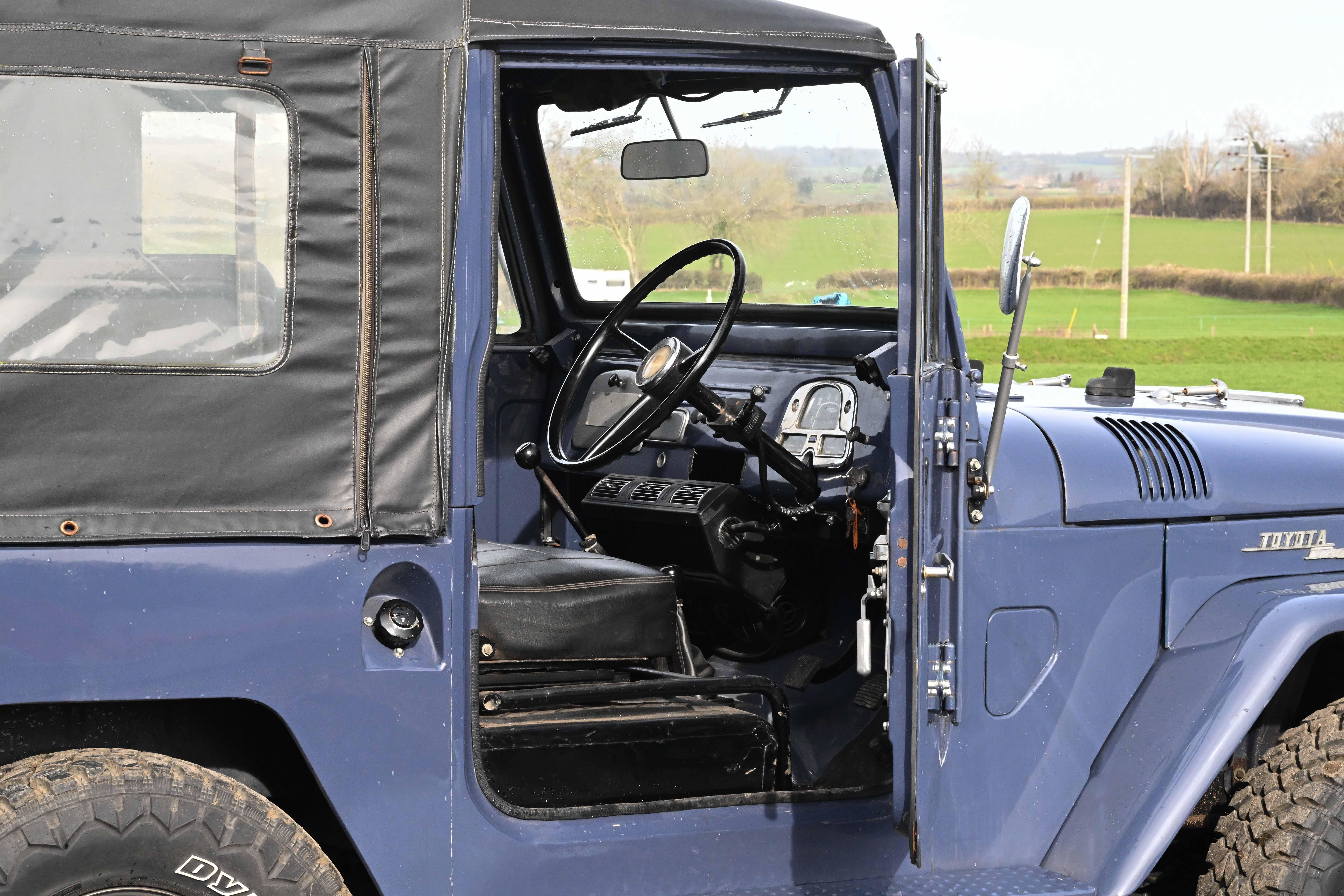 Presented in blue coachwork with black hood and trim this example first registered in 1970 this example was imported from Malaysia in 2023 fully restored but requiring fettling. Our client purchased the vehicle in 2024 having been looking for a Type B restored and decided to send it to specialists IR Cradock and Sons, Experts in Overland Expedition Vehicles who carried out a full shakedown and service including fitting an electric fuel primer. Research also showed that this example though fully restored has a build specification as it was produced from the factory, unusual for a restored FJ40. Increasingly popular as collectors' items and for those fond of early 4X4 such as FJ's and Land Rovers will find this charming Type B irresistible and in one of the iconic colourways for the FJ it will certainly stand out from a crowd. Consigned by Mathew Priddy