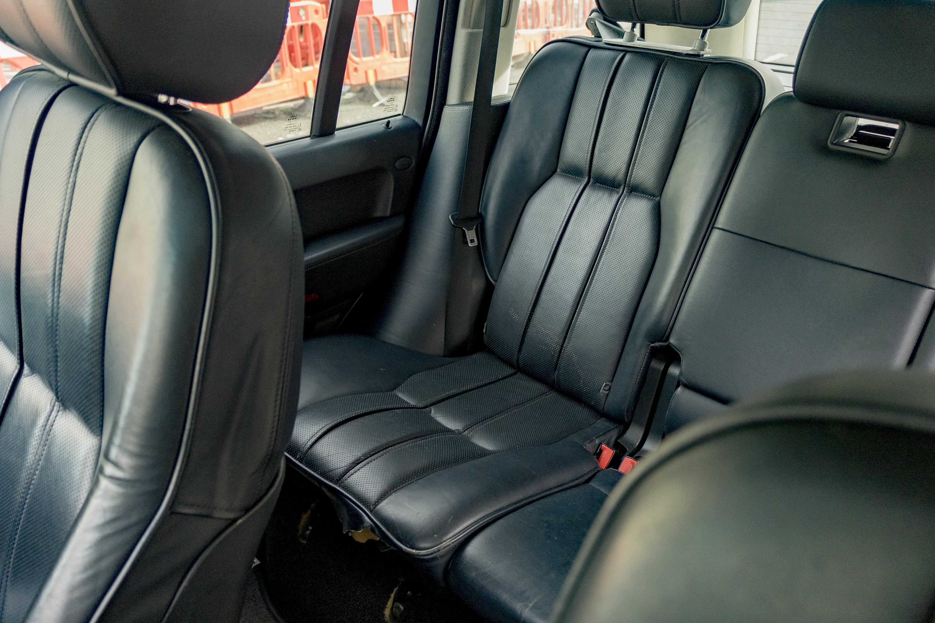 The vehicle is offered with a history file including the UK V5 registration document, original books and manuals, a stamped service book, and supporting invoices. Documented maintenance includes recent works by Range Rover specialists in February 2026. A new suspension compressor in 2021 (£622), a new battery and lead in 2020 (£310), a new starter motor in 2019 (£465), and a rear brake overhaul in 2018 (£457). The original invoice for its purchase from Overfinch in 2007 is also present, showing the seven-seat upgrade.
