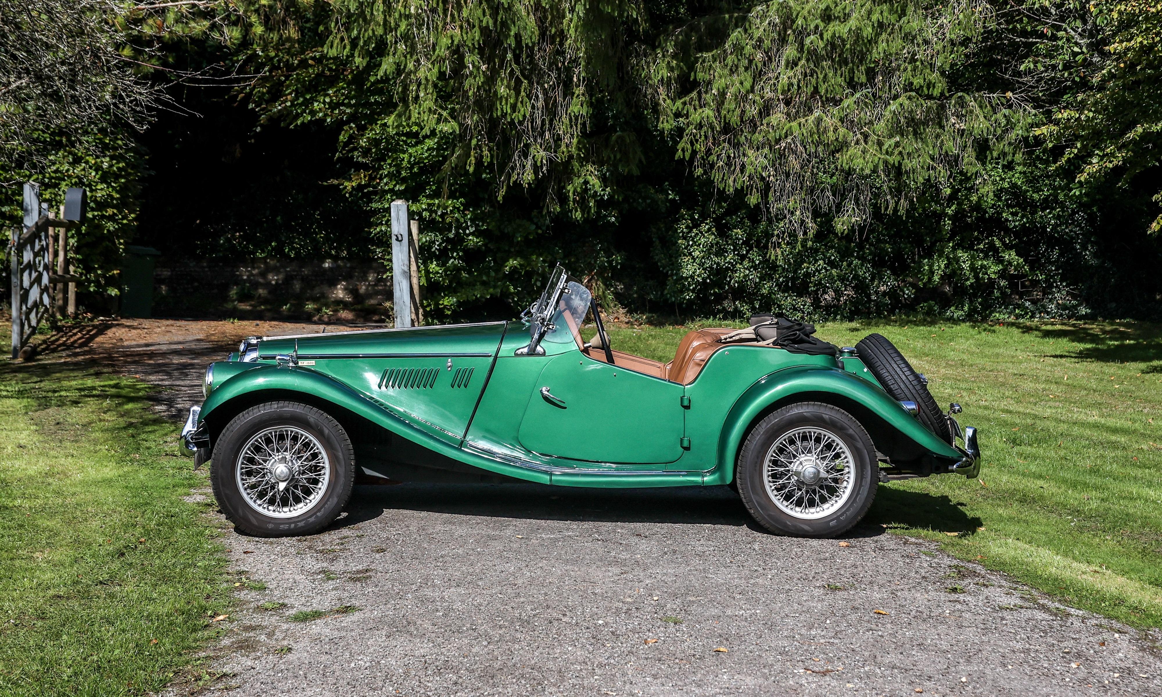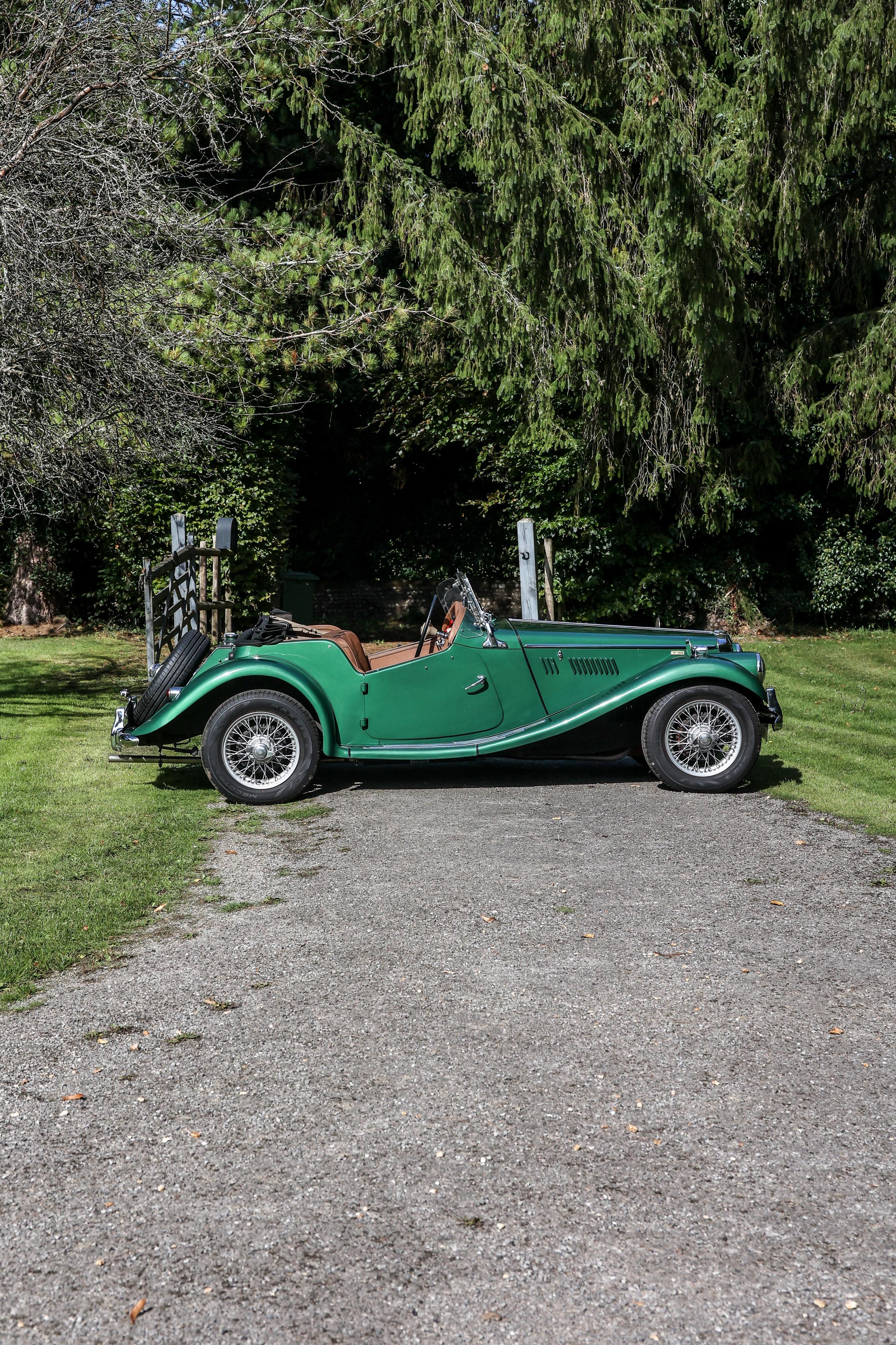 This wonderful looking example is a rare 1500cc TF model producing 60bhp with less than 3,500 manufactured. It was registered new in 1955 to California, USA and was the subject of a ground up restoration in 2016 and later shipped to the UK in 2019 and dry stored before being registered in 2024. The current and only private owner since import has cherished this example with it forming part of his private collection. Various works have been professionally completed by Martin Cawte of Classic MG Services in 2024/2025 including carrying out a full service and re-tune circa 30 miles ago, fitment of a new control box, rotor arm, condenser, points and sparkplugs. New brake cylinders and hoses and new shoes all round, replacement regulator and ammeter, restoration of the dynamo, top up of front shock absorbers, a new battery and fan belt, new speedometer cable, new wheels with new splines, rebalance of all five wire wheels and new tyres of correct specification. Other works completed include a new outlet pipe seal supplied and fitted to petrol tank, new water pump, and a new stainless-steel exhaust. A new carpet set was also fitted. All gauges are working as they should, and the chromework is in good order throughout; the TF also includes its new top-quality hood and side windows. The MG has covered less than 500 miles since the 2016 restoration and is in very good condition.