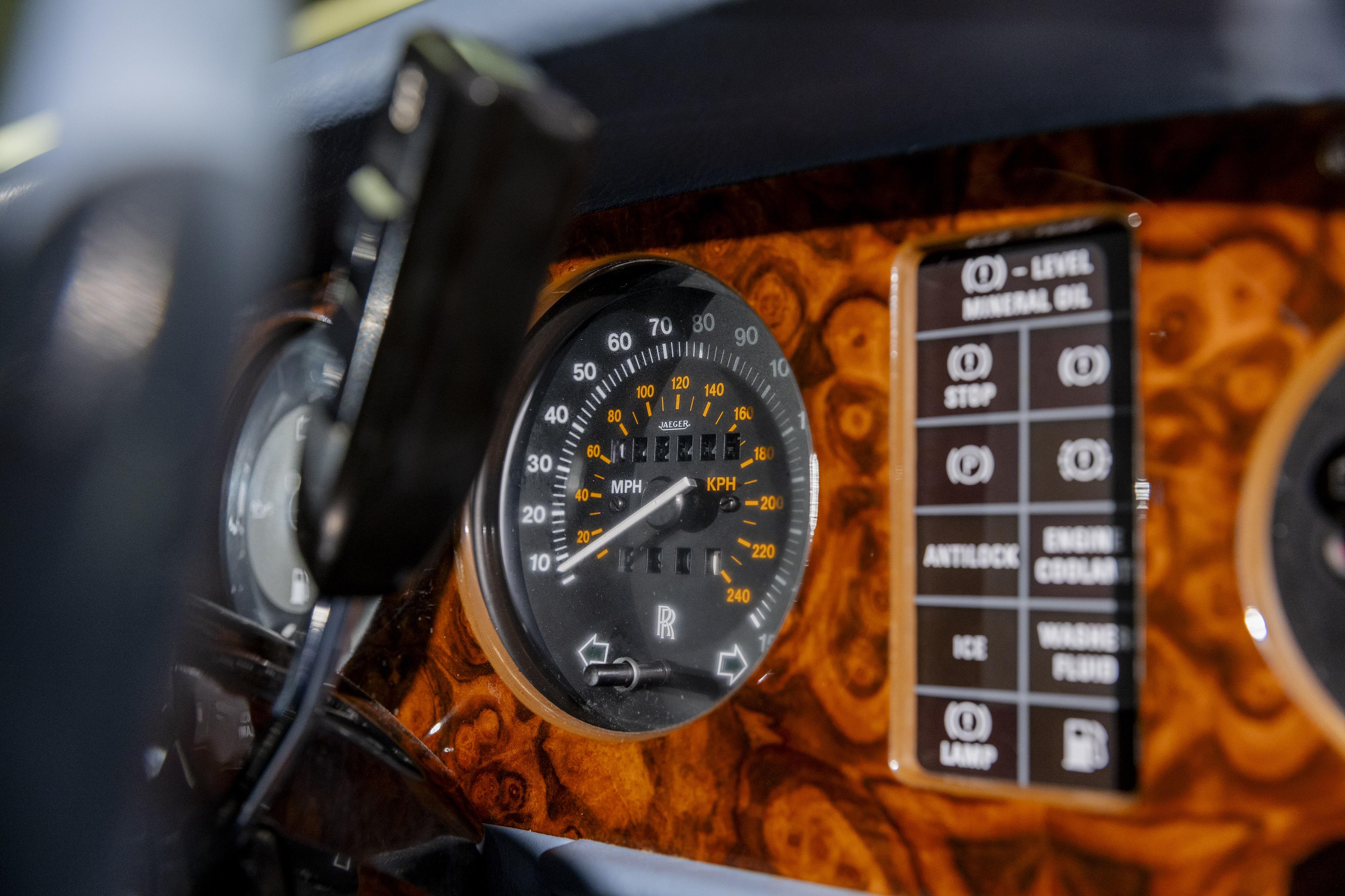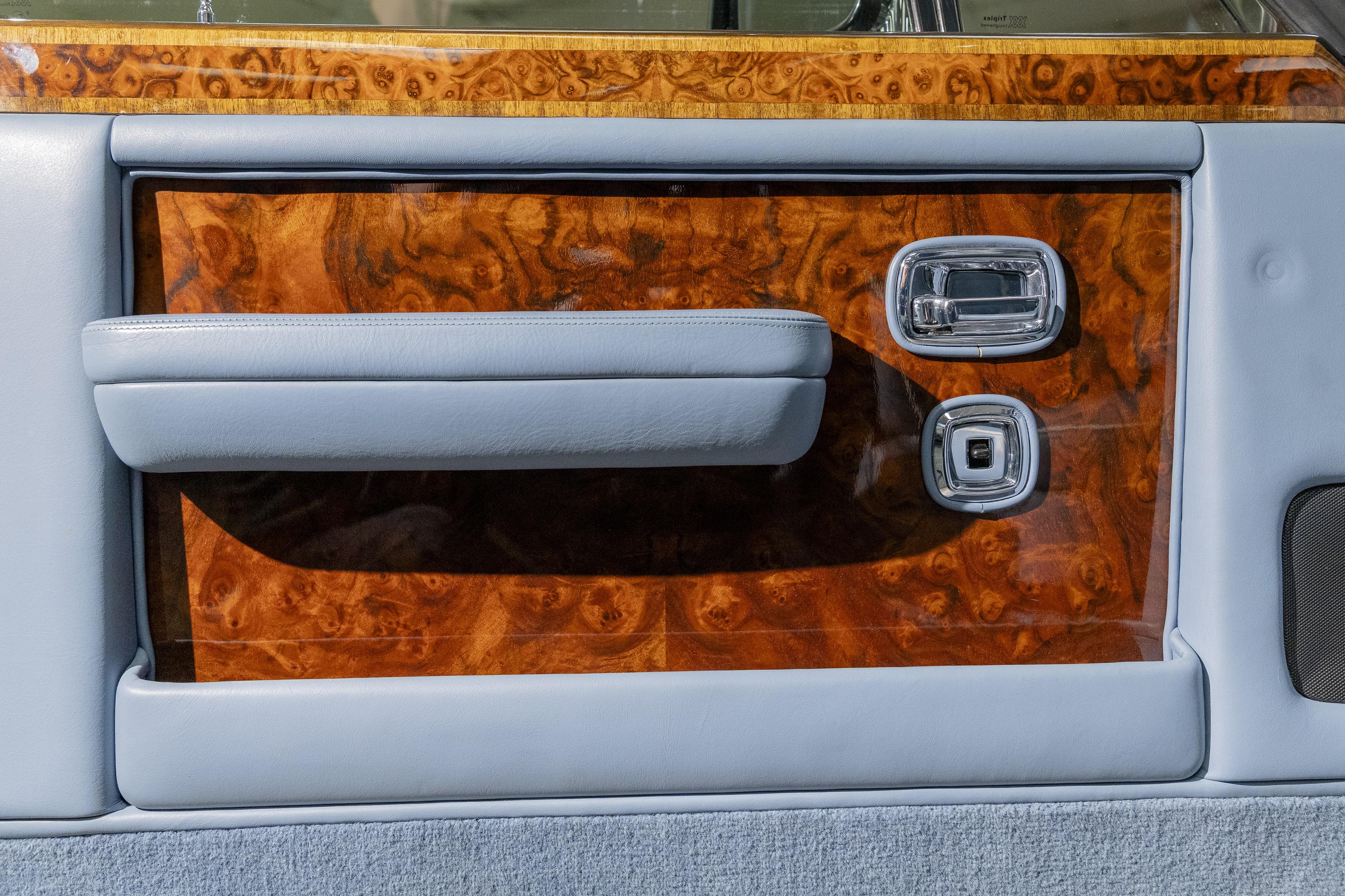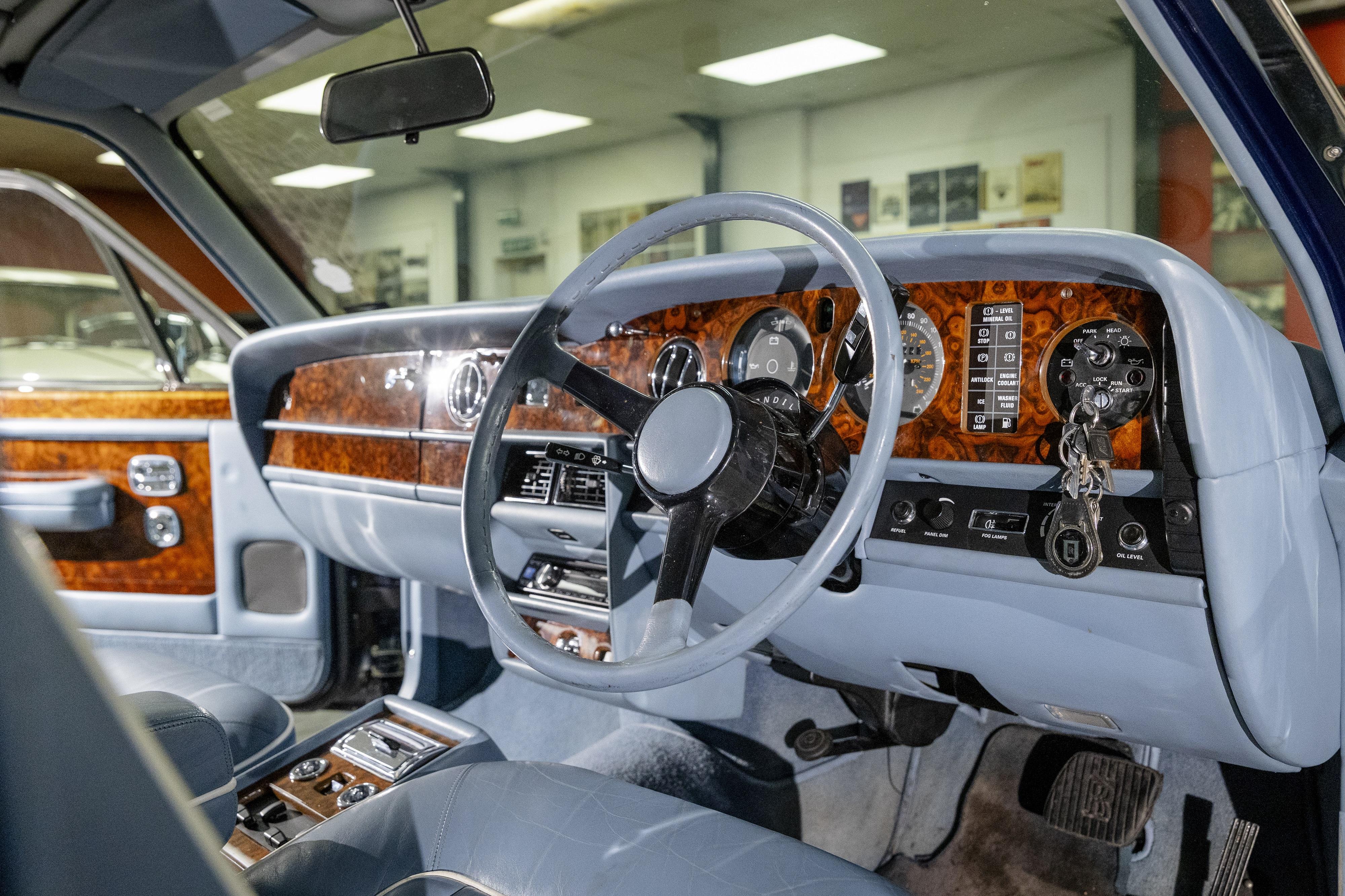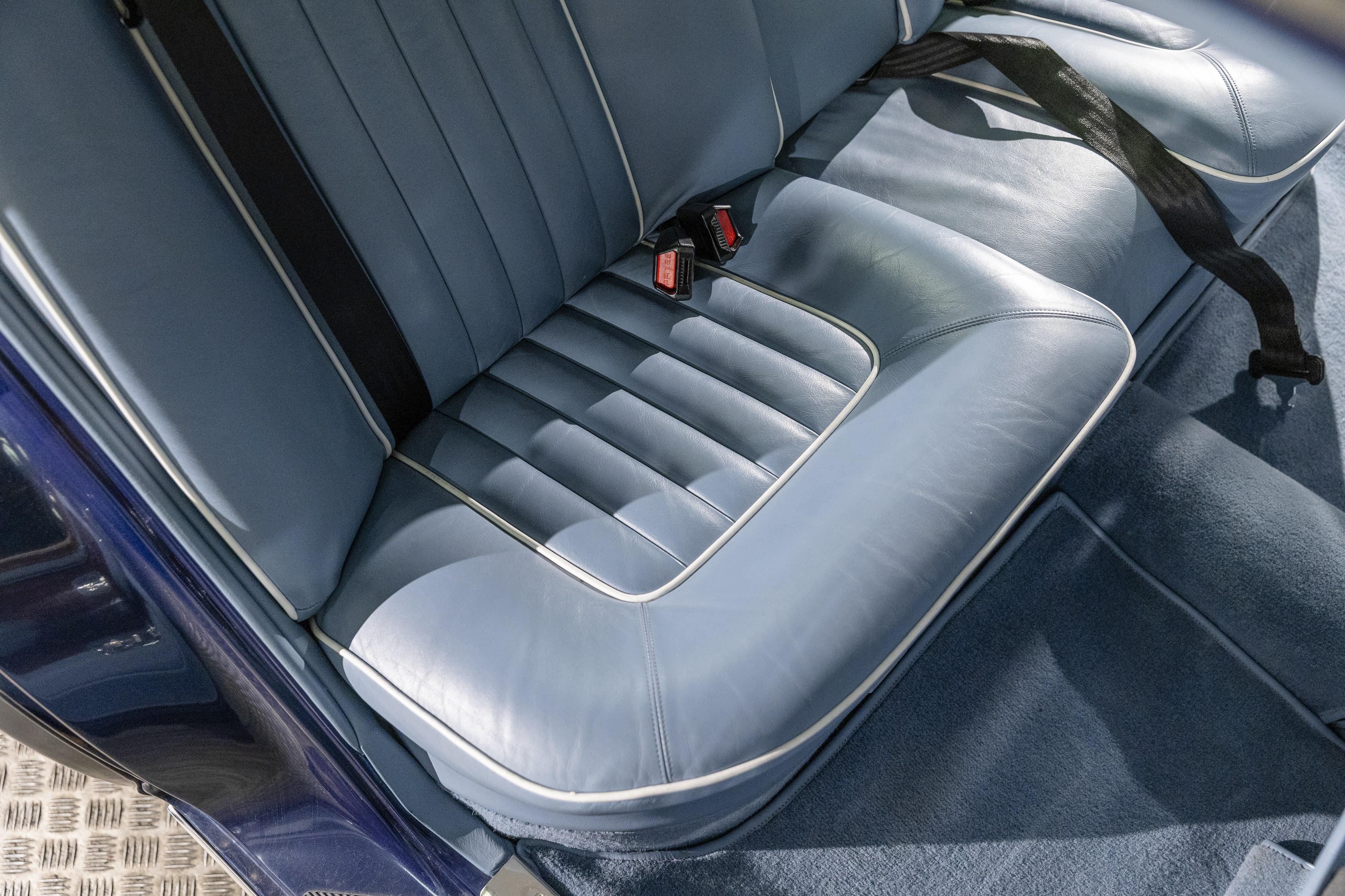 This immaculate 1989 example has been owned by our vendor for over 35 years, and is presented in Royal Blue metallic, over light blue leather seats with white piping. He purchased it from Jack Barclay in 1990 with only 3,000 miles on the clock, and today the mileage is still low, at just over 40,000. Our vendor has continued to keep his beloved Silver Spirit well maintained, with regular services and a current MoT test certificate. The original Rolls-Royce service book is available for inspection, with more recent annual service invoices, as the service book is full. Since 2023 he has spent a four-figure sum on maintenance, with particular attention to the radiator and rear gas spheres. The interior presents very well, with walnut facia added to the doors and dash, and walnut trays added to the front seatbacks.
